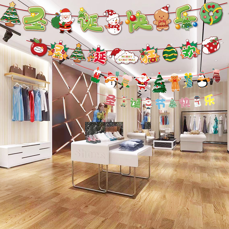 圣诞节装饰用品拉旗商场吊旗酒店铺布置圣诞拉花挂饰气氛布置
