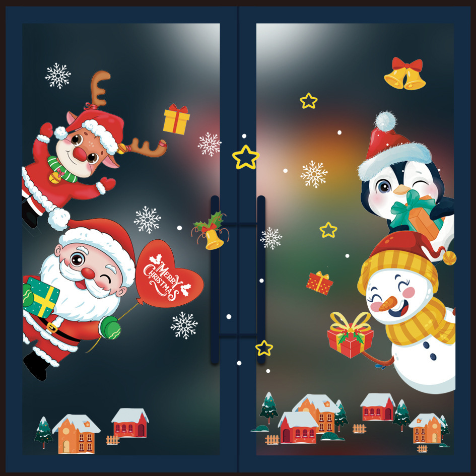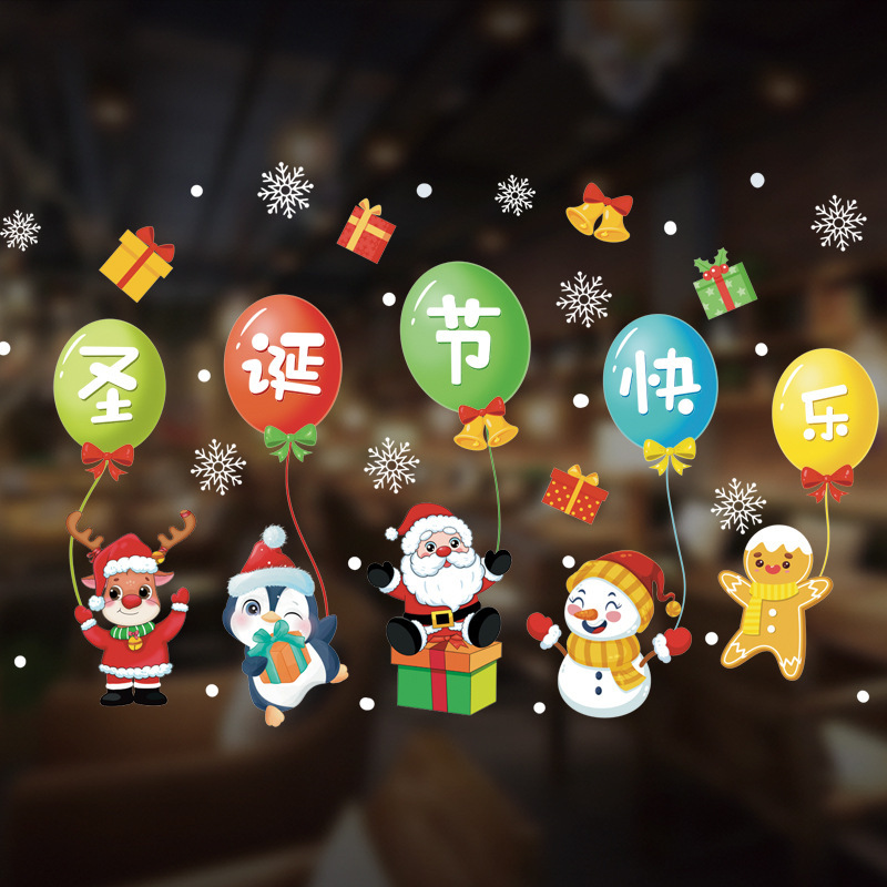 2025年新款圣诞静电贴橱窗玻璃贴圣诞老人雪人圣诞贴纸氛围布置