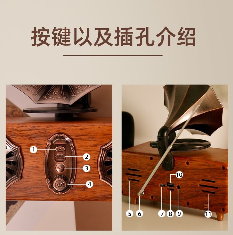 | [phonograph retro audio] bluetooth/radio/card/wired(【留声机复古音响】蓝牙/收音机/插卡/有线) | USD $45.25 | 9999992 piece available |