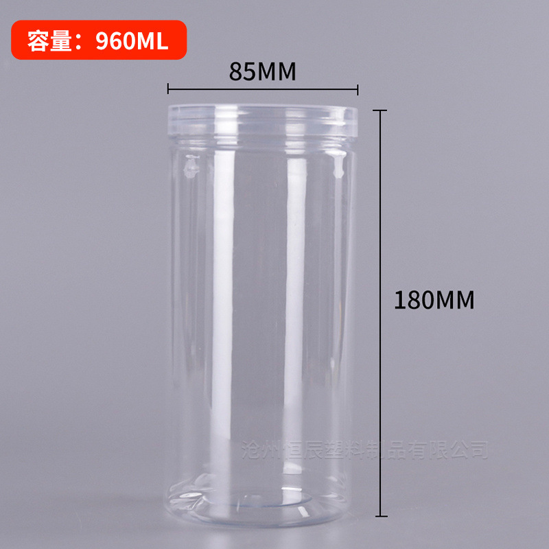 85口塑料罐透明茶叶罐糖果包装罐 PET花茶零食广口瓶圆形密封罐