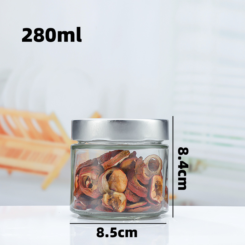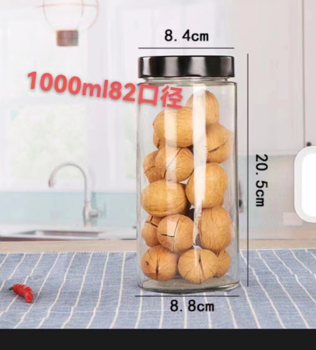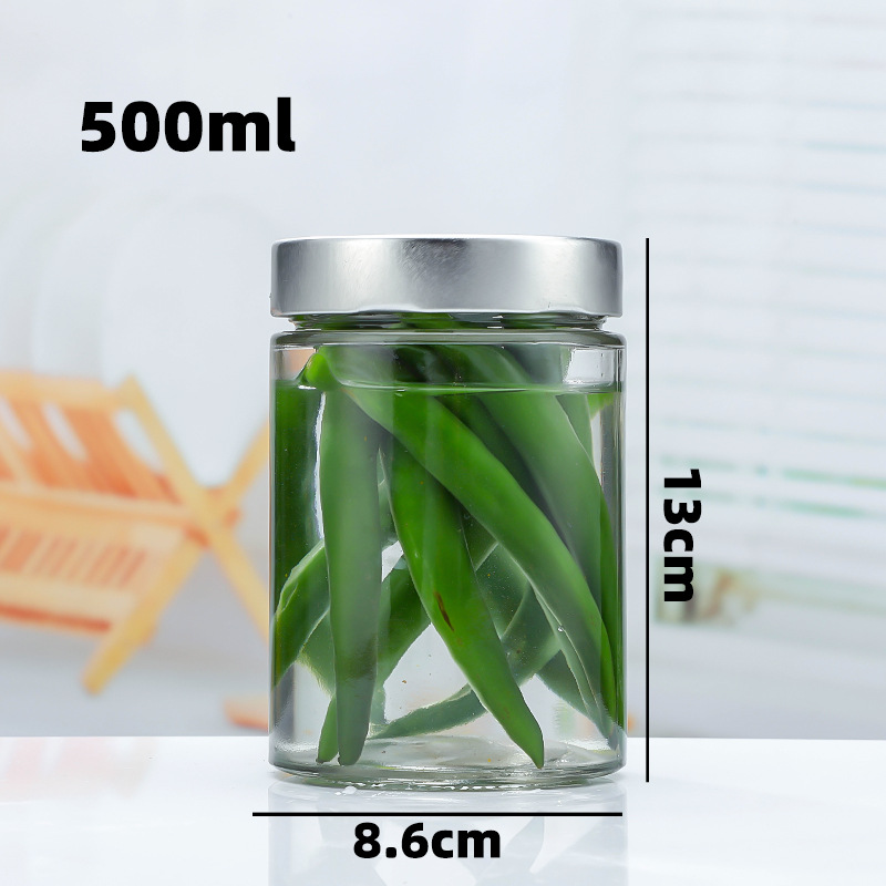 高盖直筒酱菜瓶蜂蜜瓶果酱辣椒酱瓶罐头瓶带盖家用玻璃密封储物罐