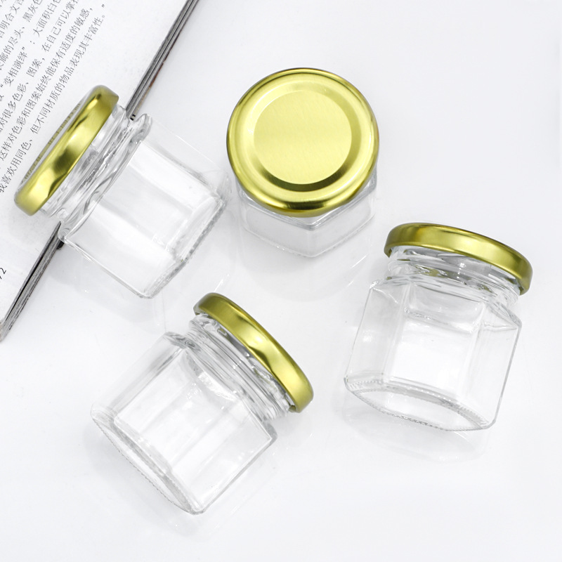 亚马逊玻璃密封罐套装小号蜂蜜瓶燕窝果酱分装瓶45六棱25喜蜜瓶