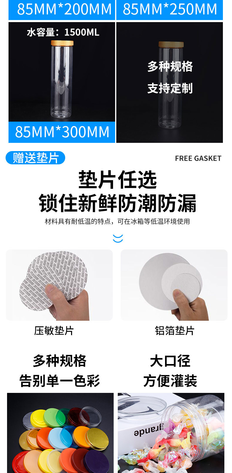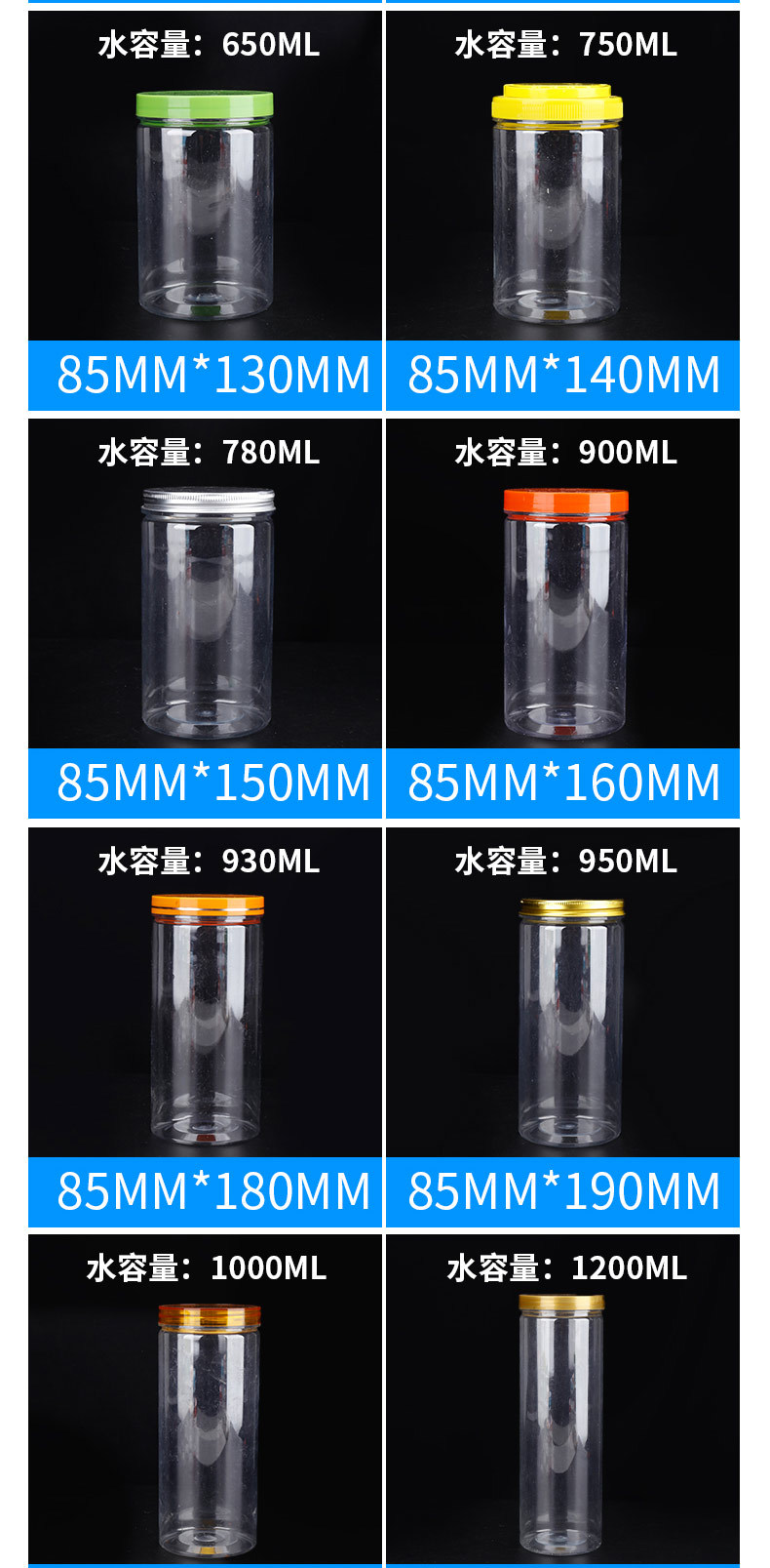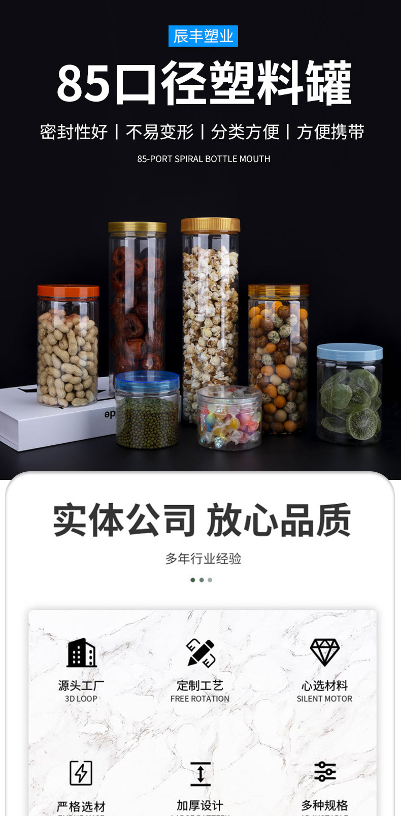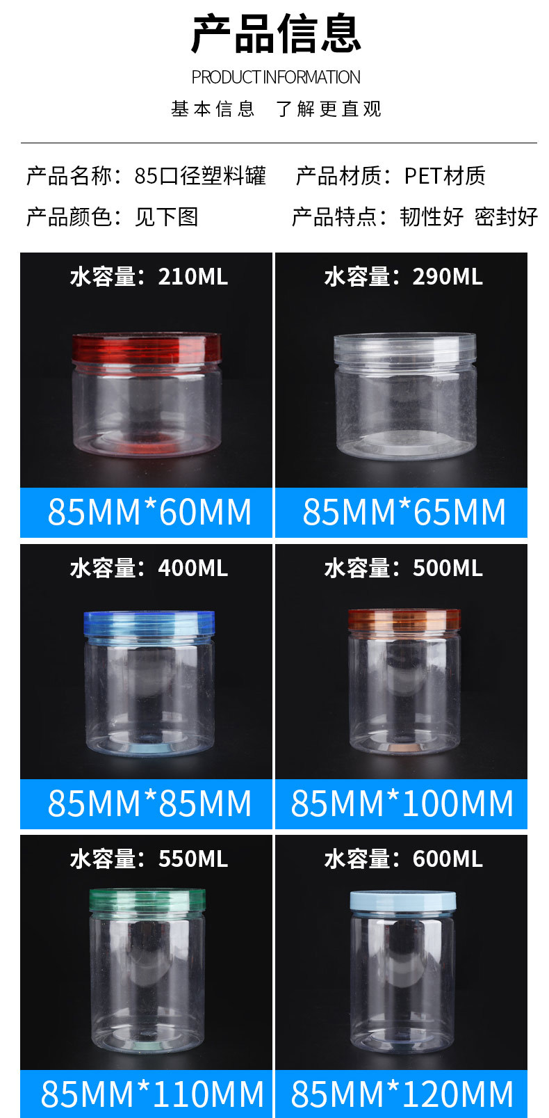 85*65透明塑料罐400g克坚果罐85口密封罐子带垫片花茶瓶零食罐