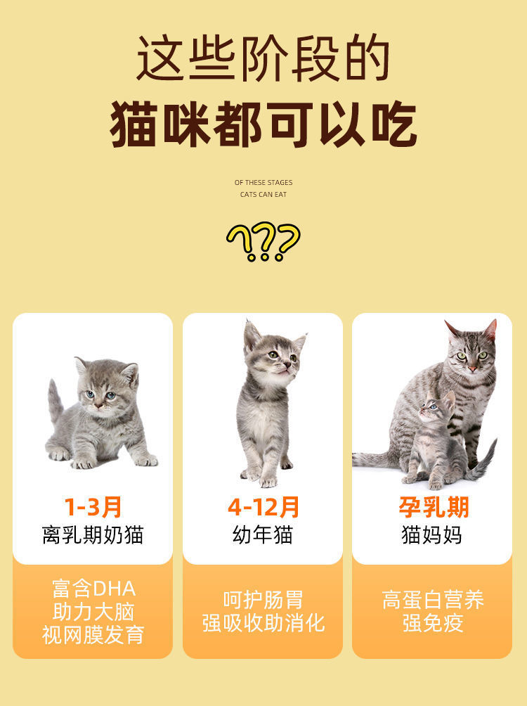 | 2 segments [4-december age consumption] plus five cat strips(2段【4-12月龄食用】加猫条五支) | USD $17.28 | 15500 piece available |