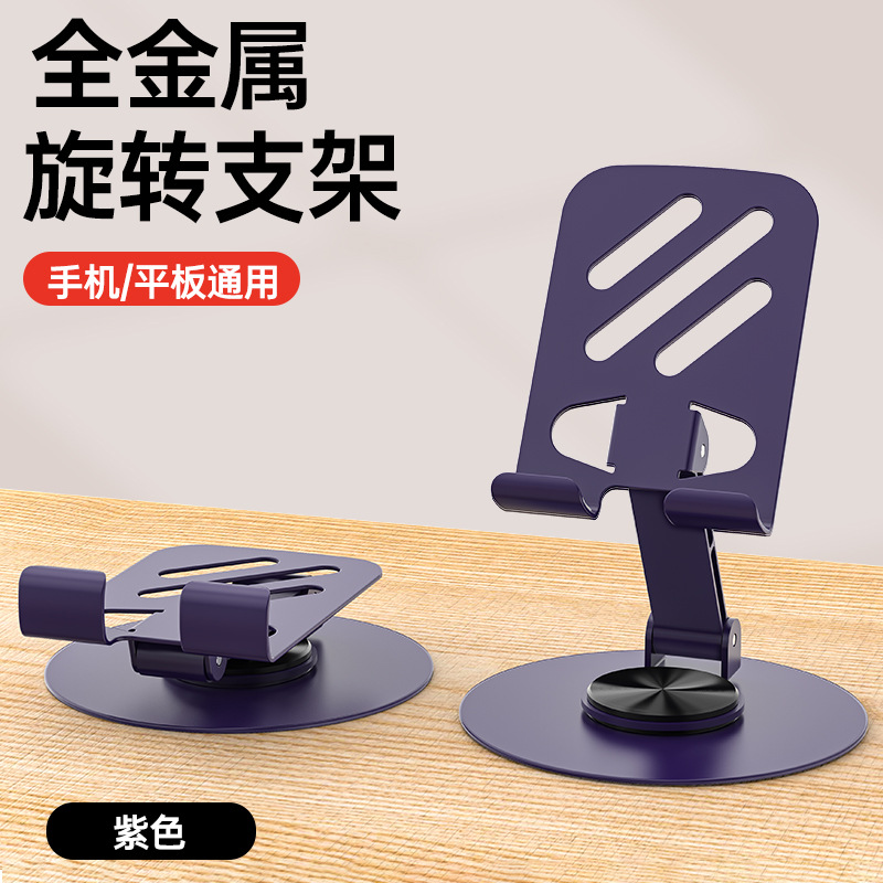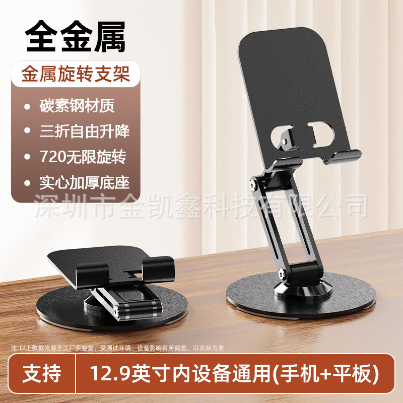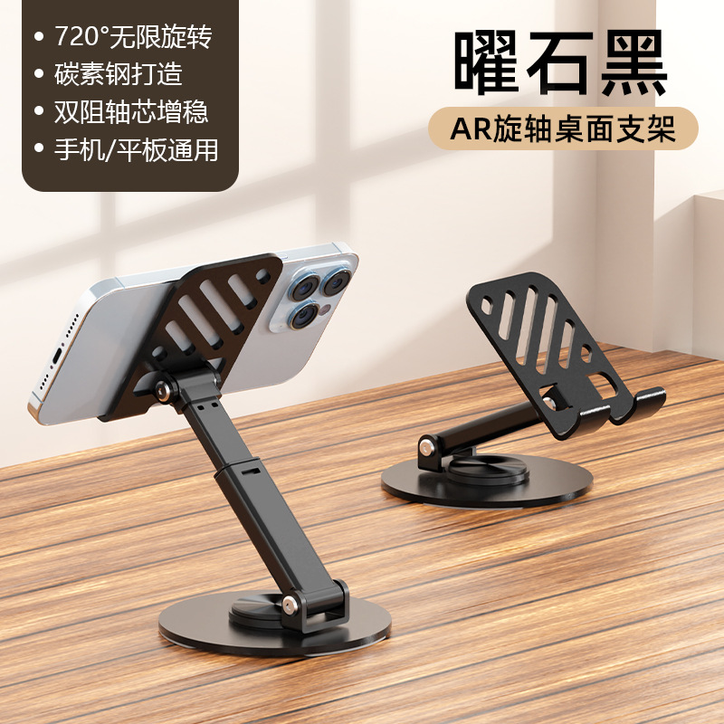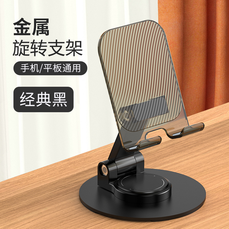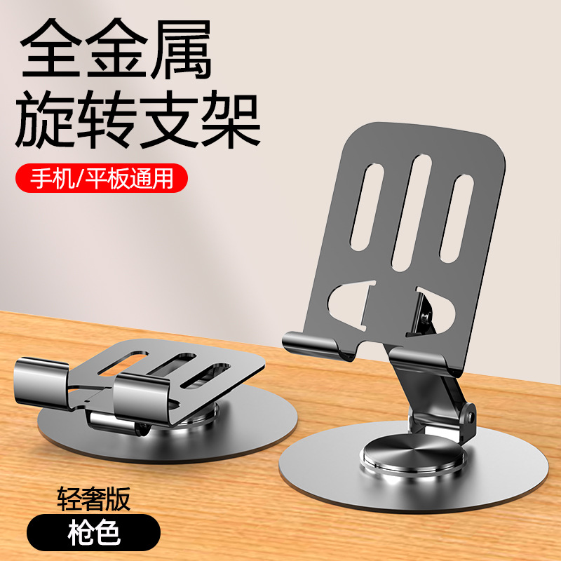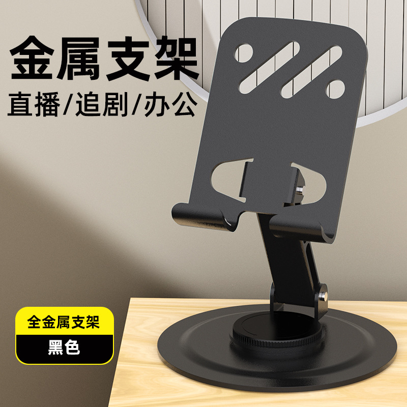新款金属手机支架旋转可折叠懒人碳钢合金手机架桌面平板直播支架