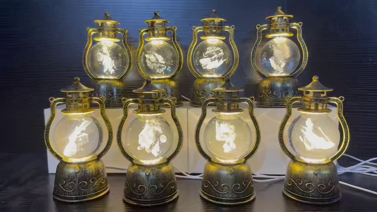 3D内雕水晶发光玻璃led复古小油灯手提夜灯