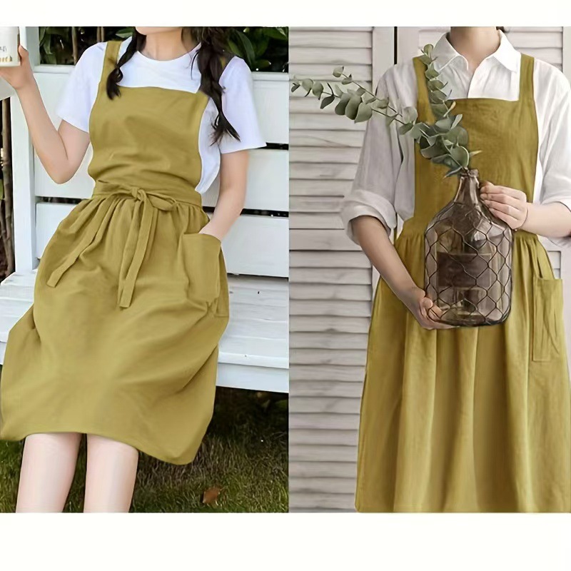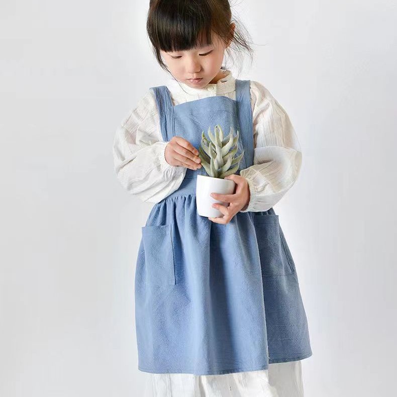 文艺纯棉学院围裙女种花新款长袖罩衣做饭家用日系上班工作服围腰