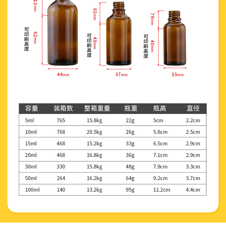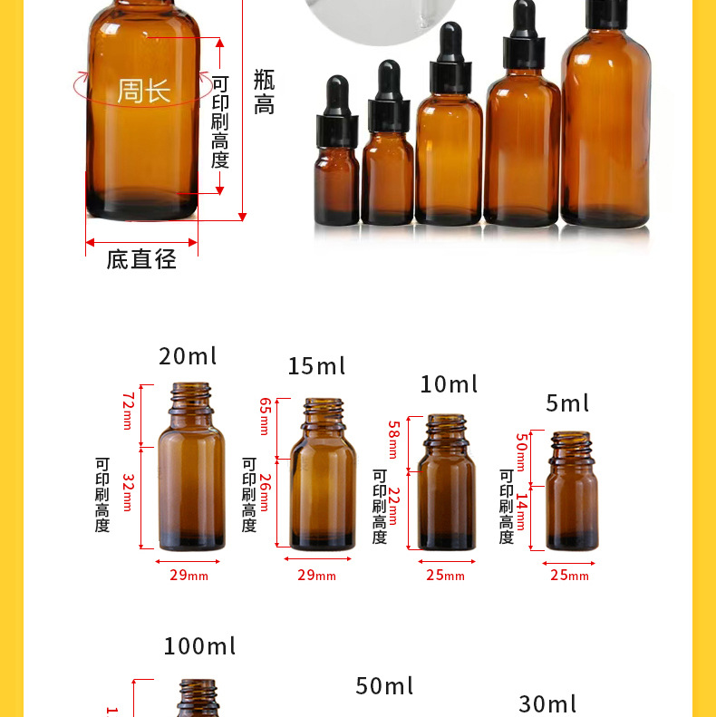 茶色玻璃精油瓶100ml精油瓶子裸瓶包装棕色香薰滴管精油瓶分装