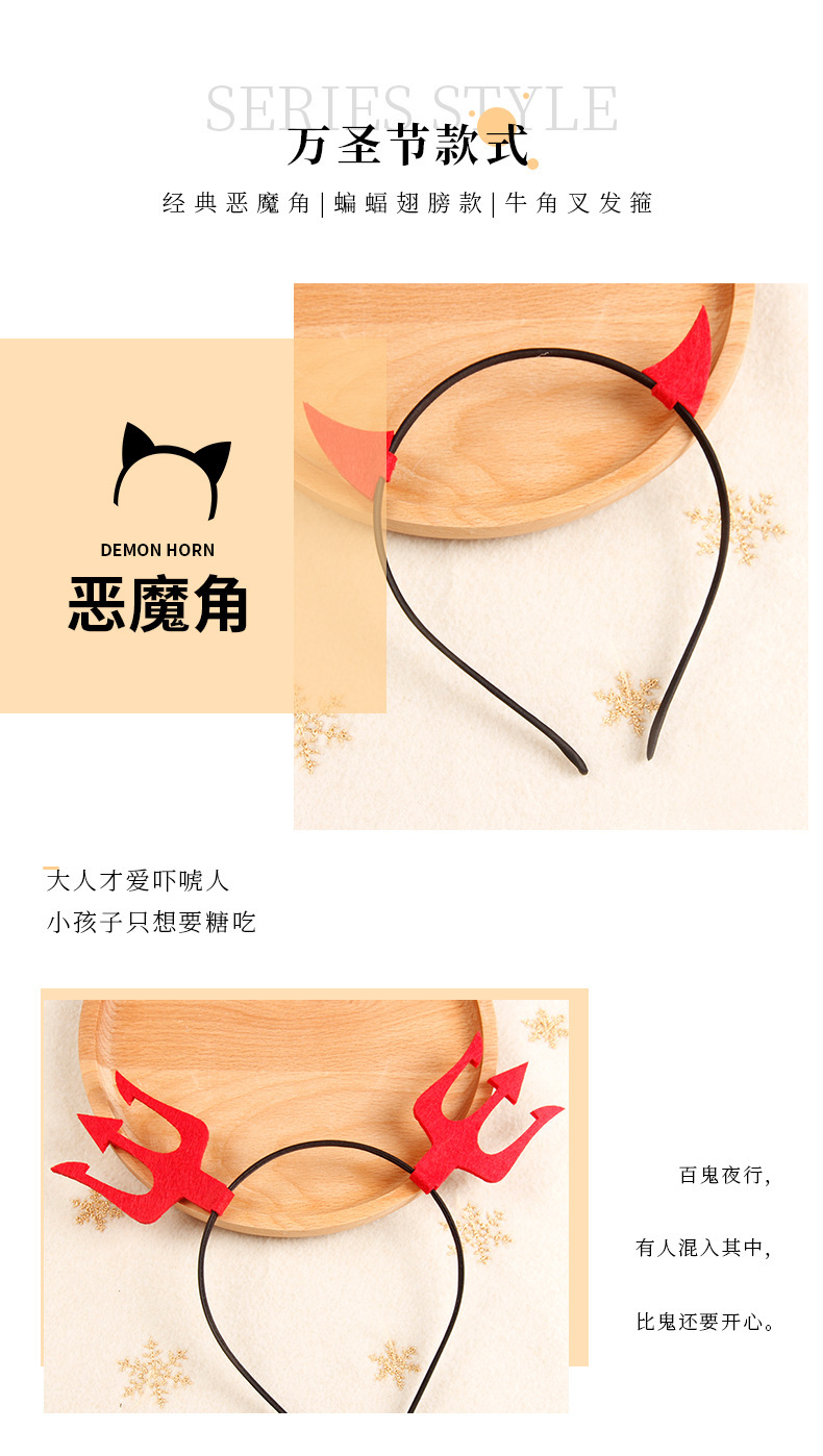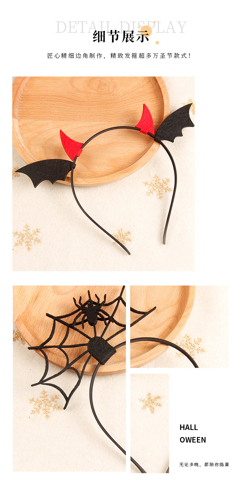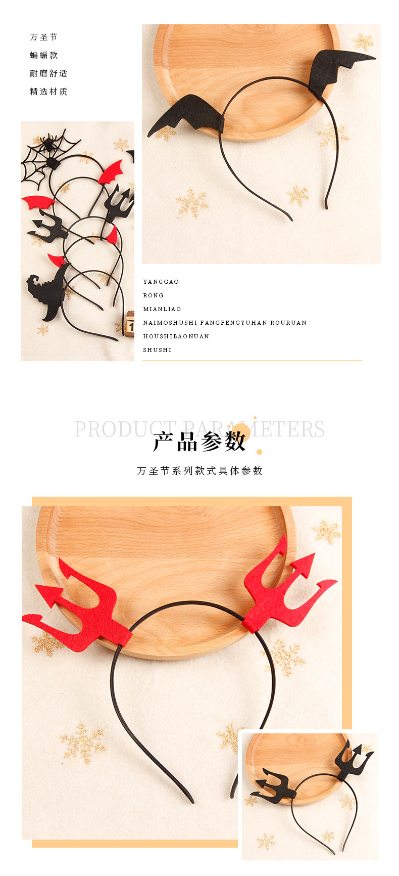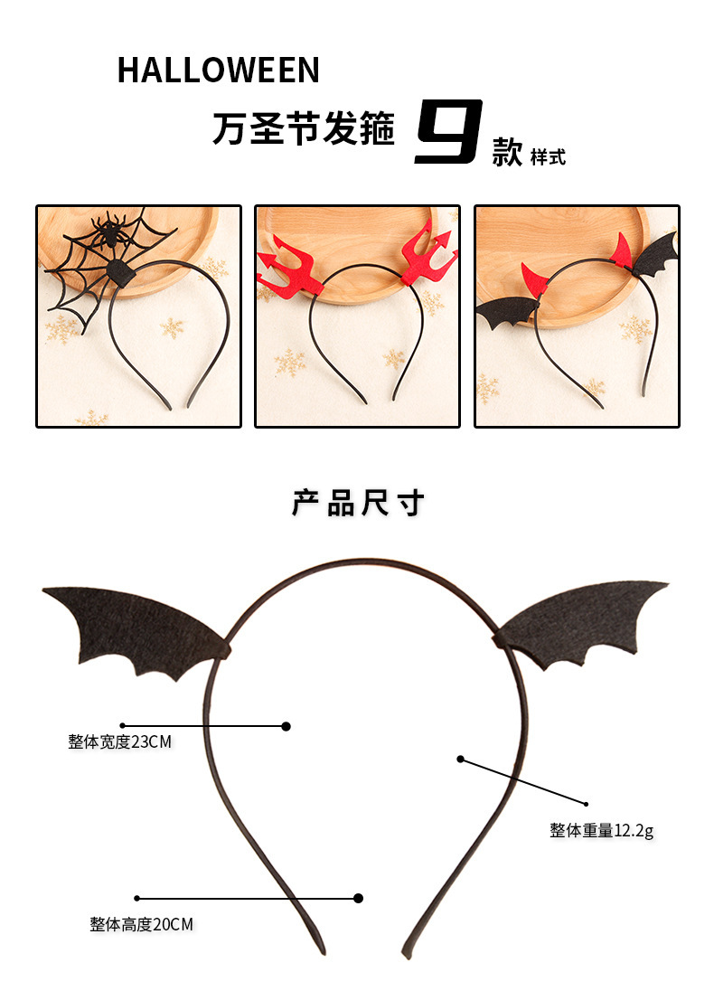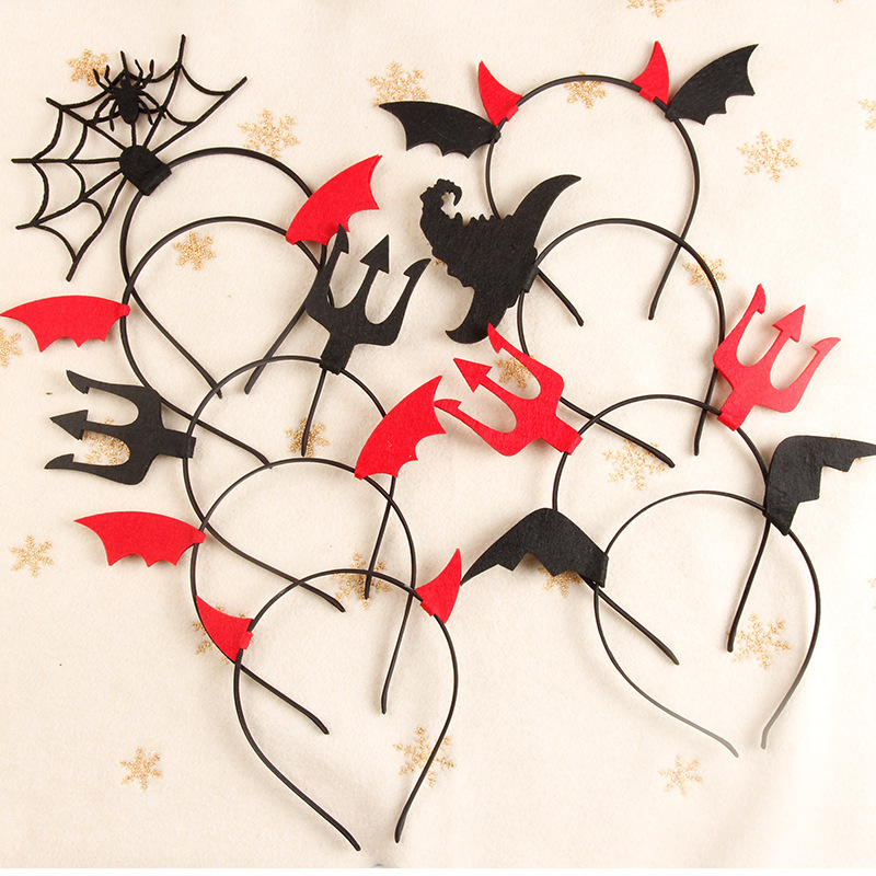 万圣节毛毡布发箍蝙蝠翅膀巫帽蛛网鱼叉发饰现货批发