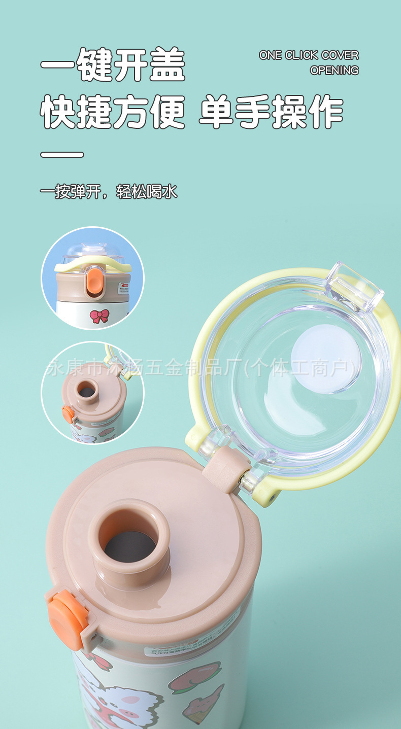 新款跨境拉布布卡通手提3D打印不锈钢创意户外便携双饮弹跳保温杯