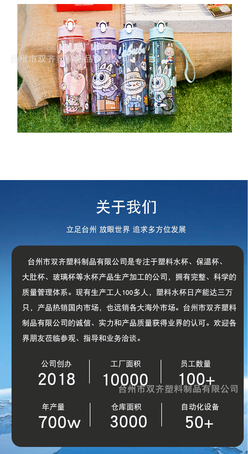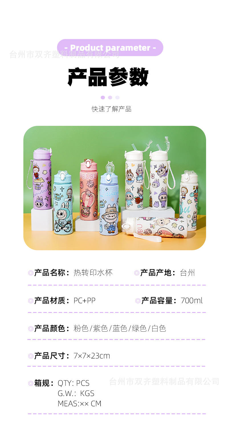 外贸爆款labubu可爱儿童吸管水杯高颜值学生带提绳拉布布卡通水杯
