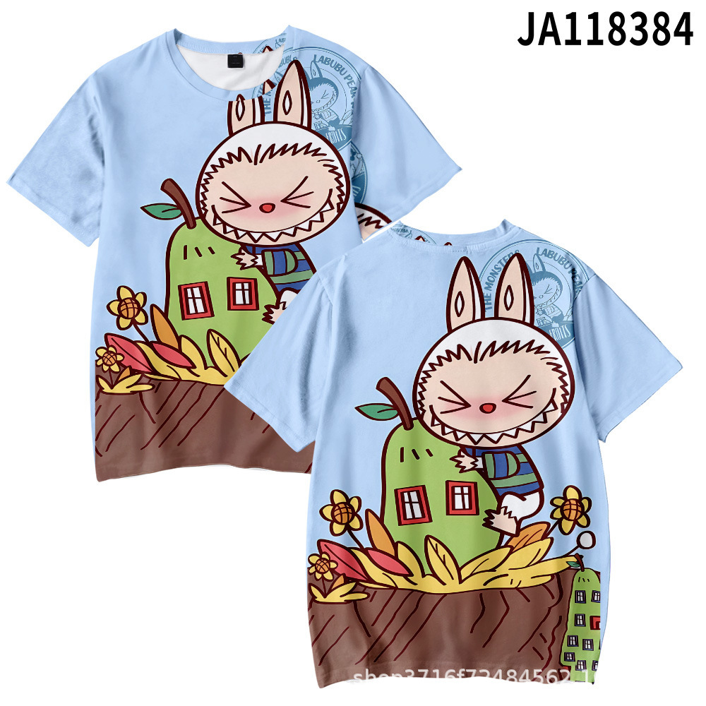 2024跨境新款Labubu拉布布夏季潮宽松时尚T-shirt男女短袖短T恤