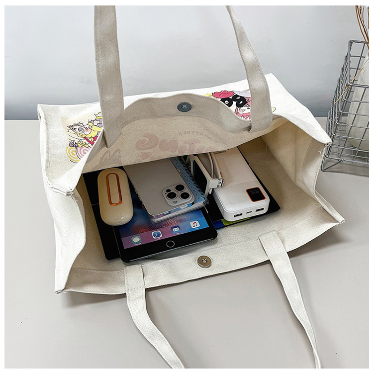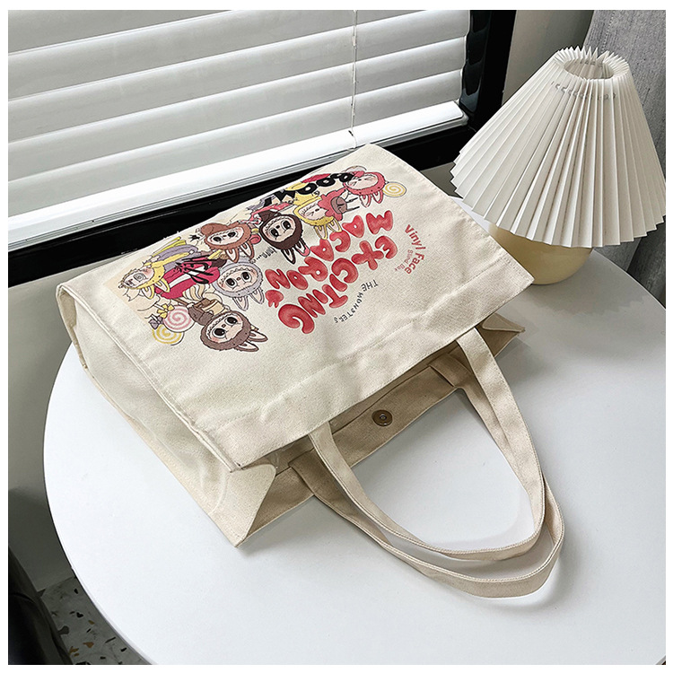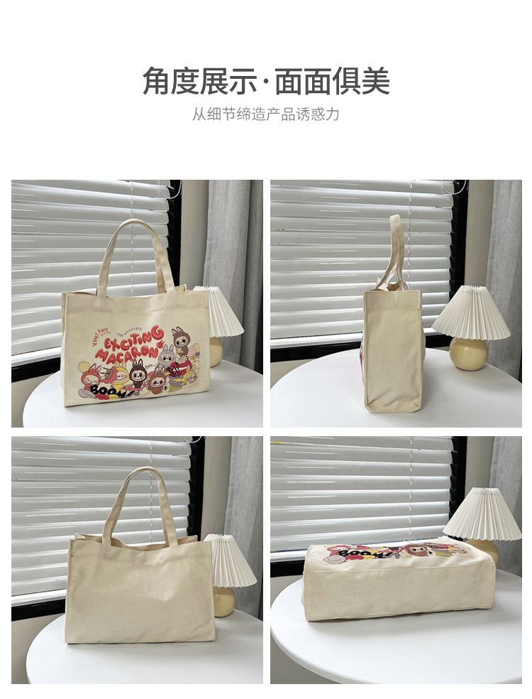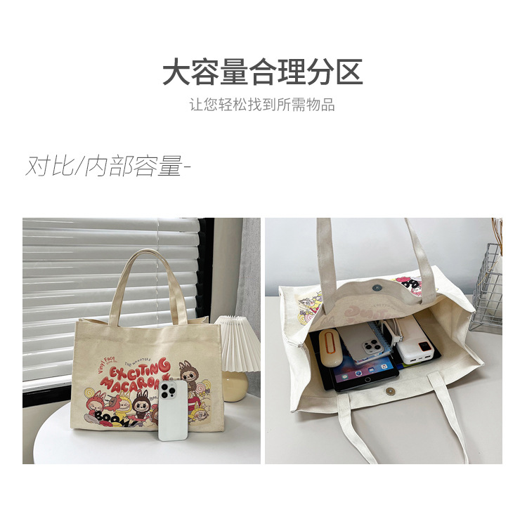 2024新款帆布手提包女士大容量单肩包潮流字母印花labubu托特包