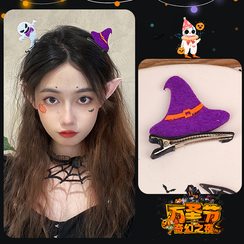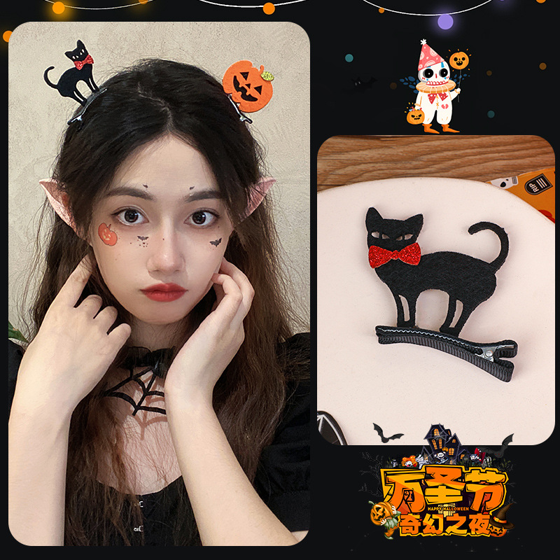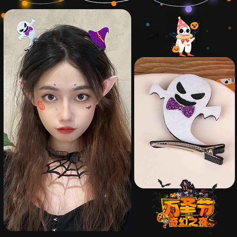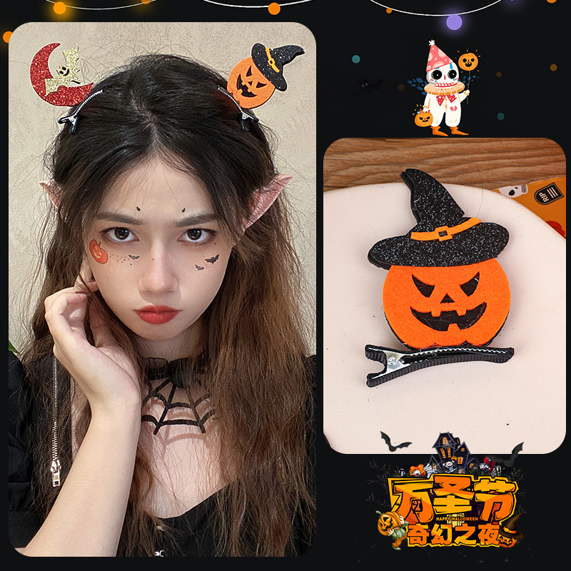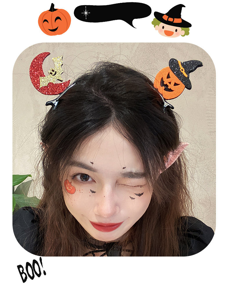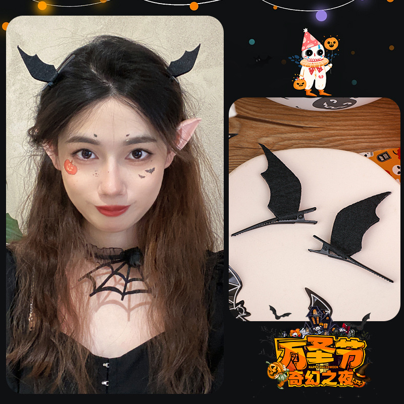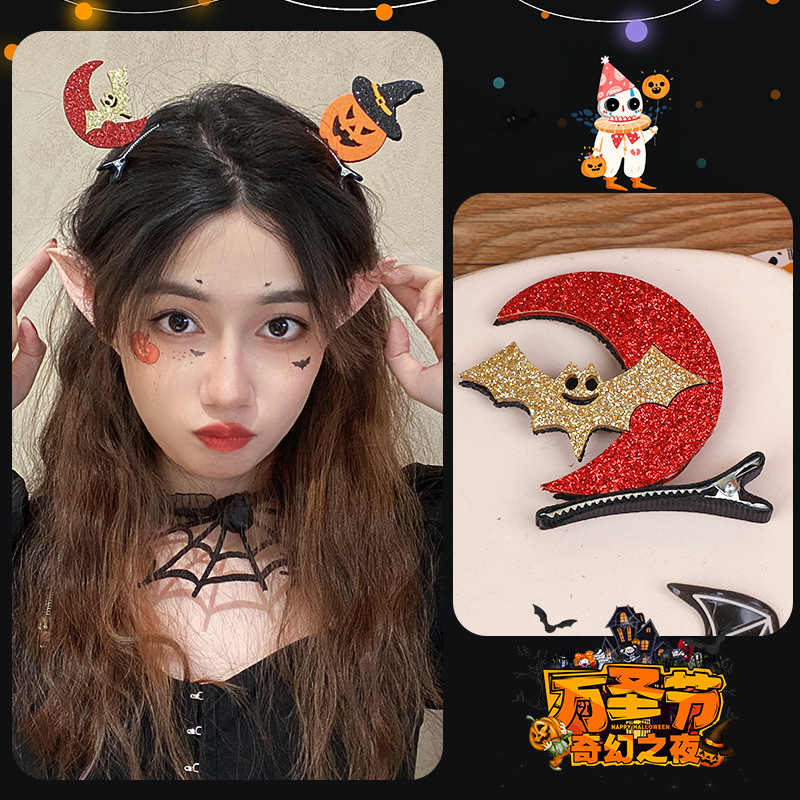 儿童万圣节发夹恶魔发夹饰品鸭嘴夹发卡搞怪表演发饰派对装饰拍照