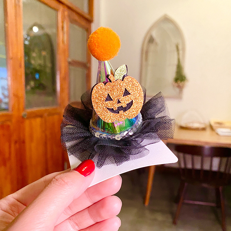 万圣节装扮儿童立体发夹鬼节装饰蝙蝠幽灵巫师帽南瓜发饰