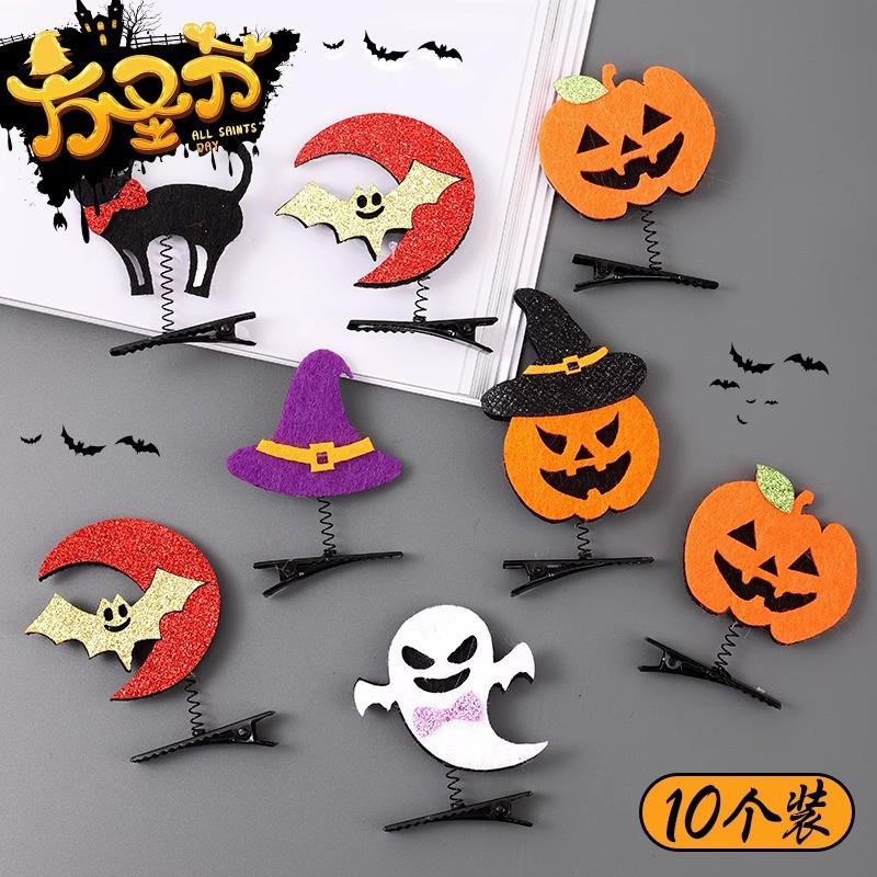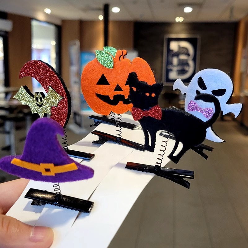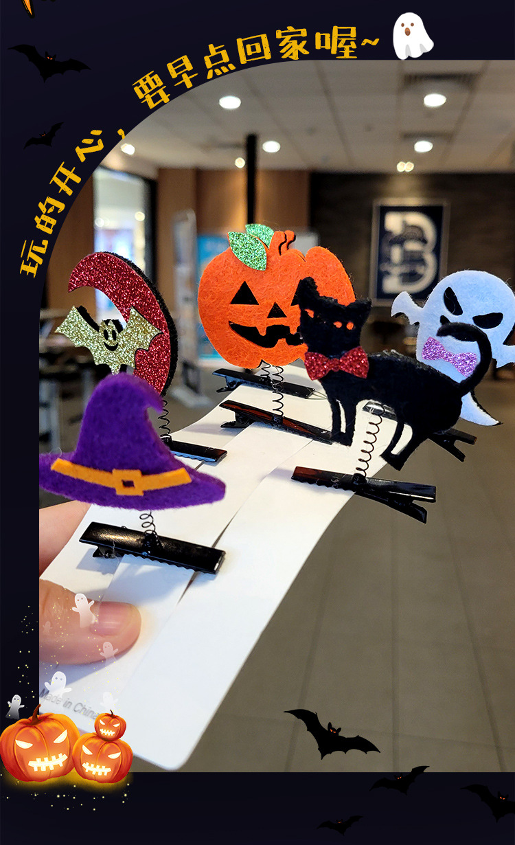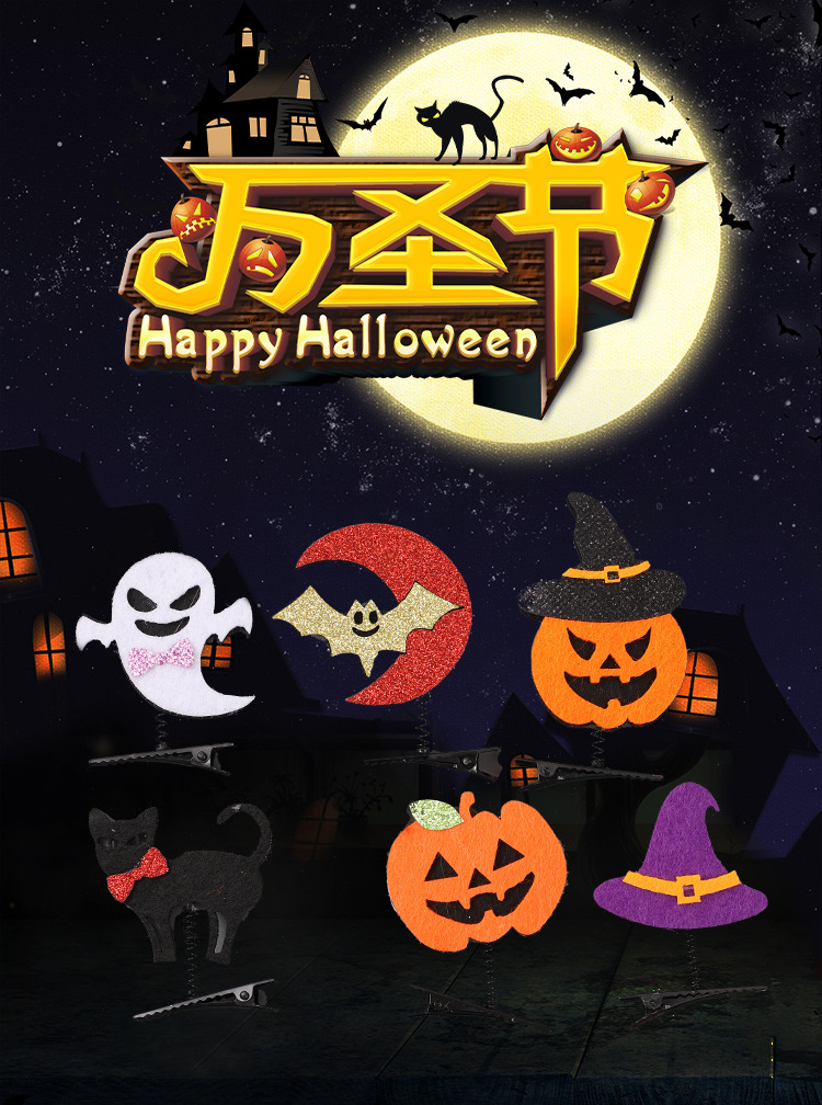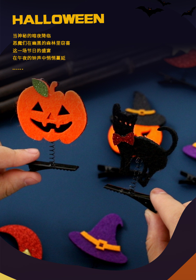 万圣节发箍南瓜怪弹簧头箍黑蜘蛛女巫帽发夹蝙蝠顶夹节日装扮头饰