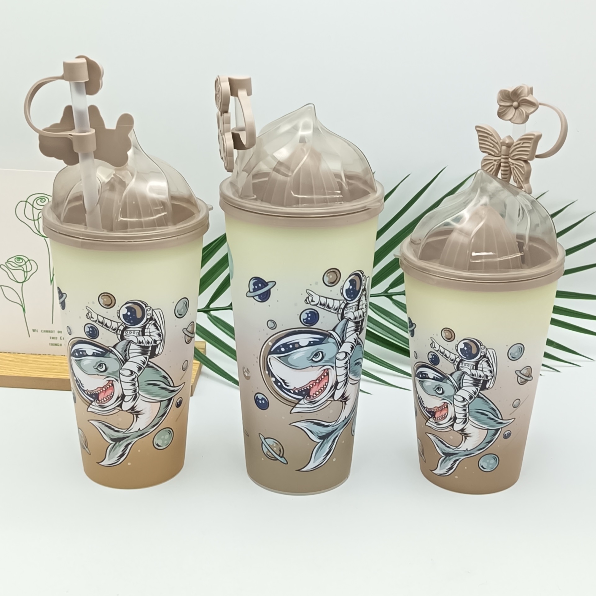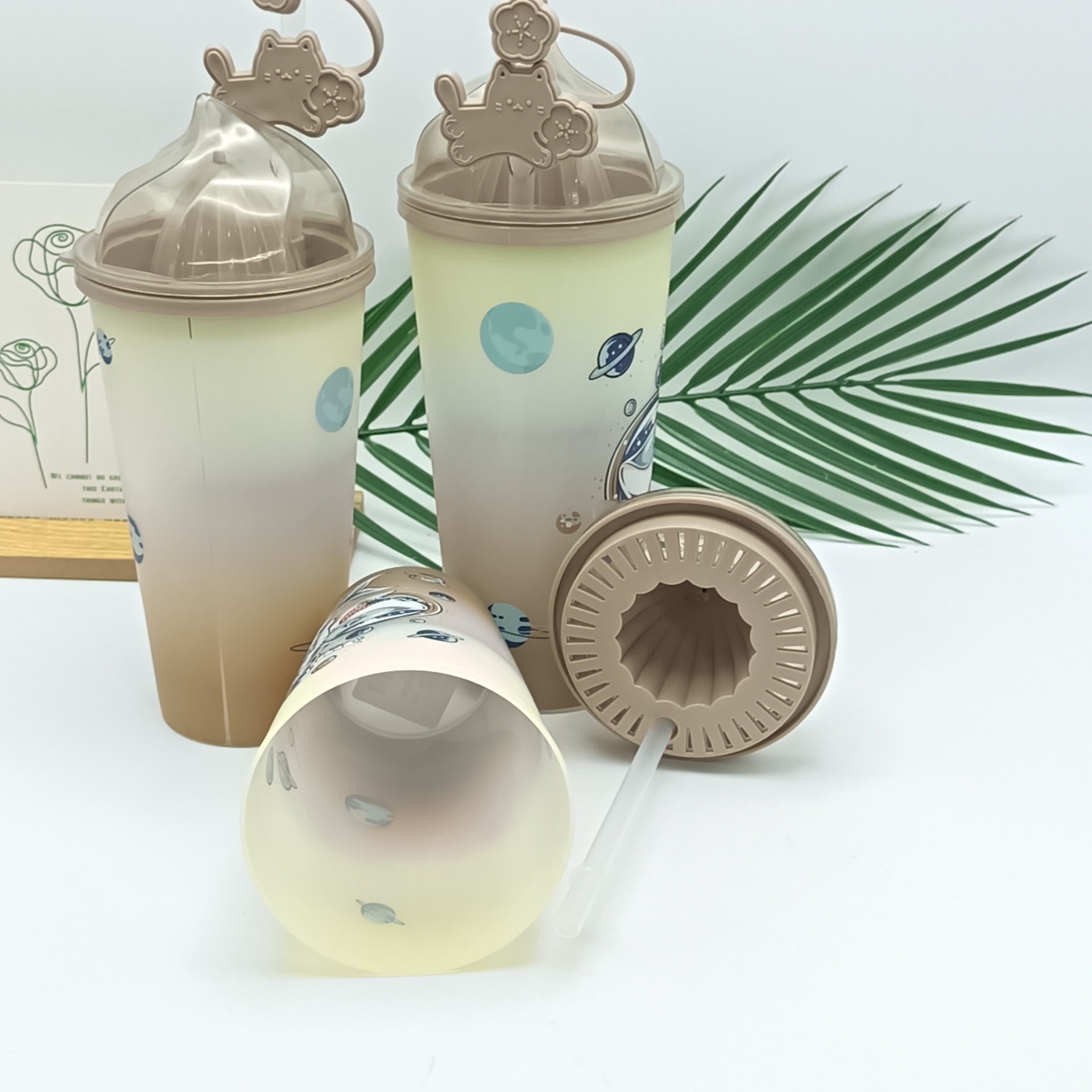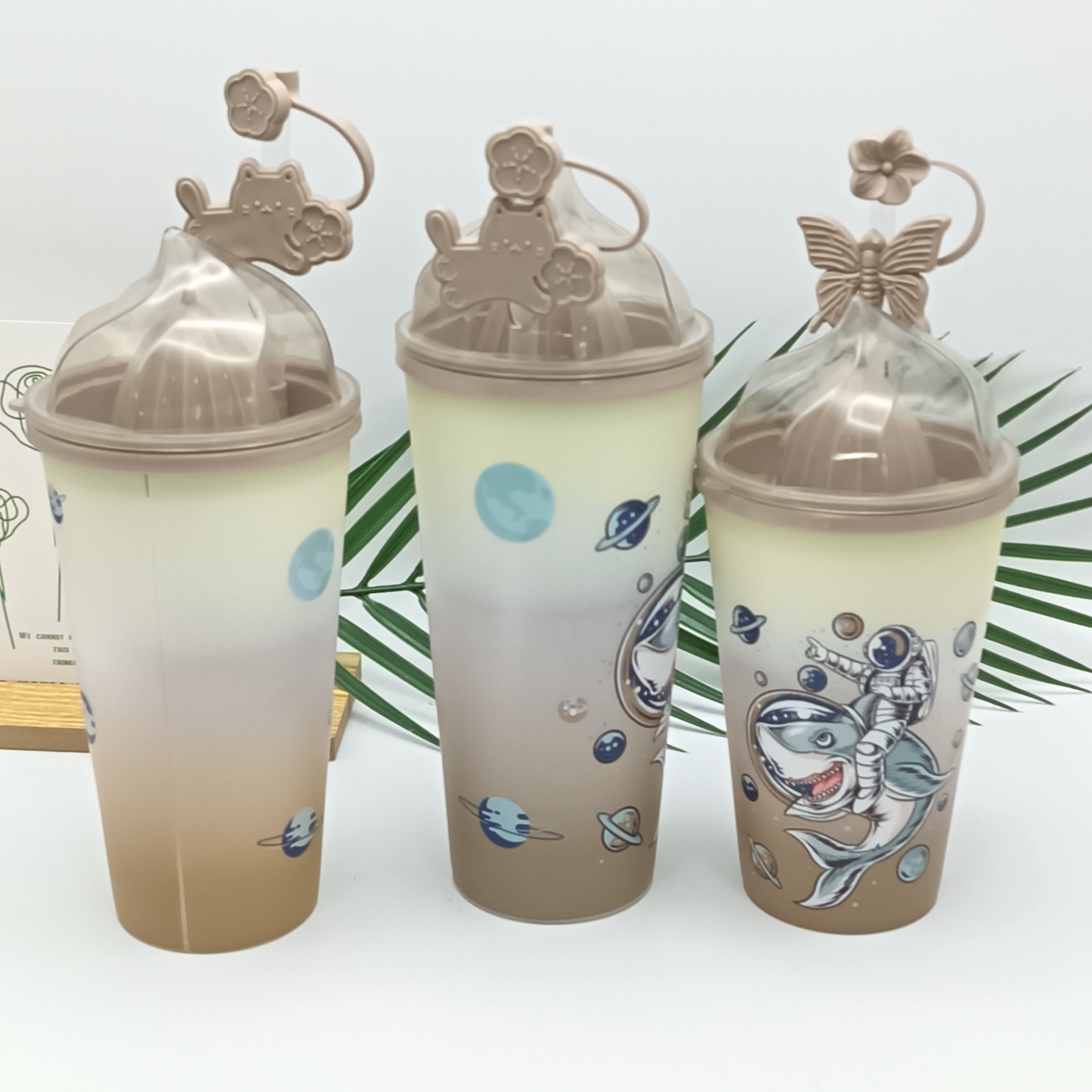 哑光渐变吸管杯学生高颜值ins风创意大容量彩色吸管杯加防尘帽