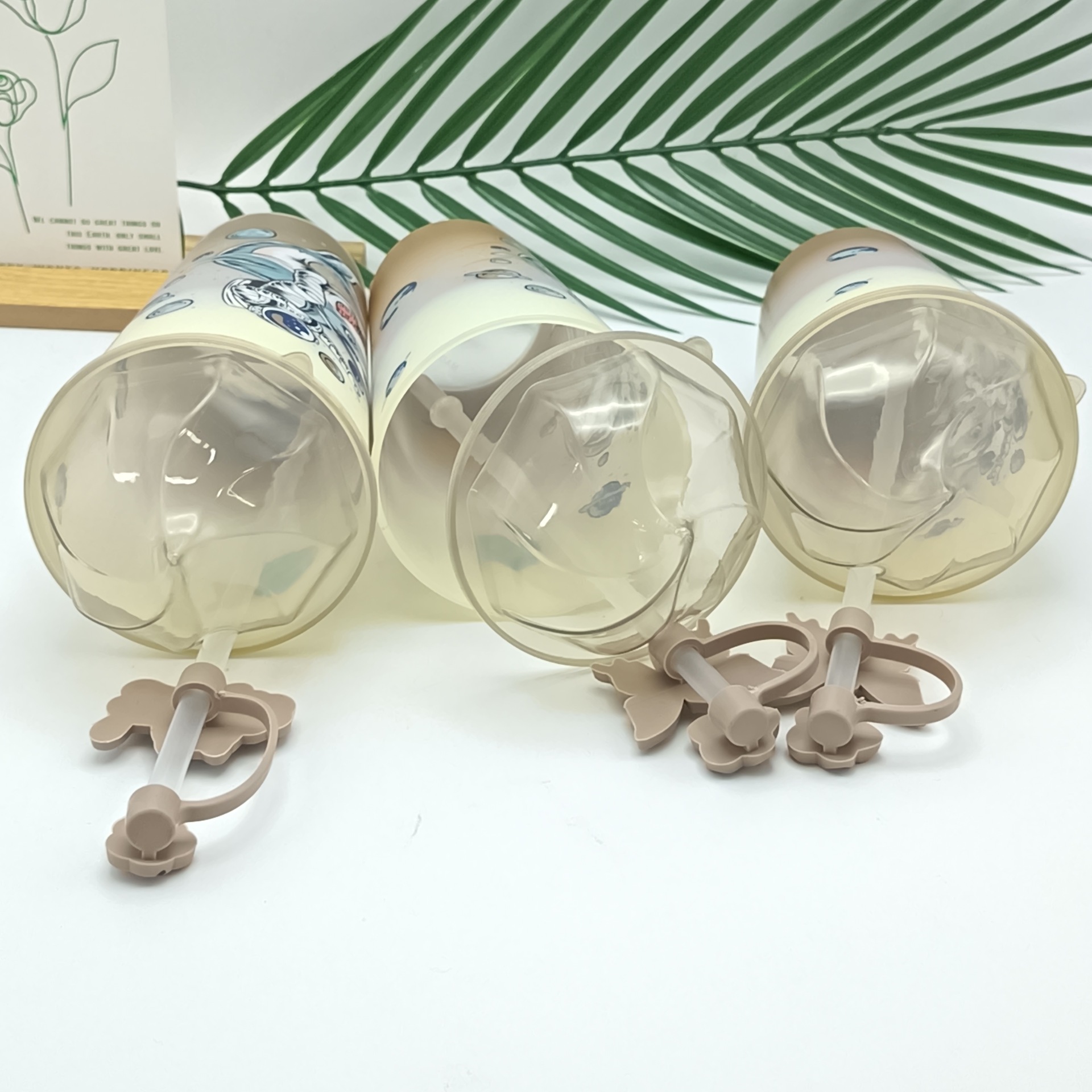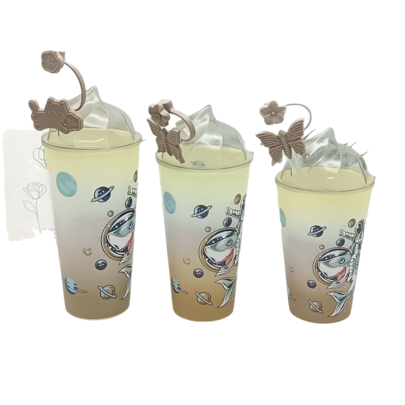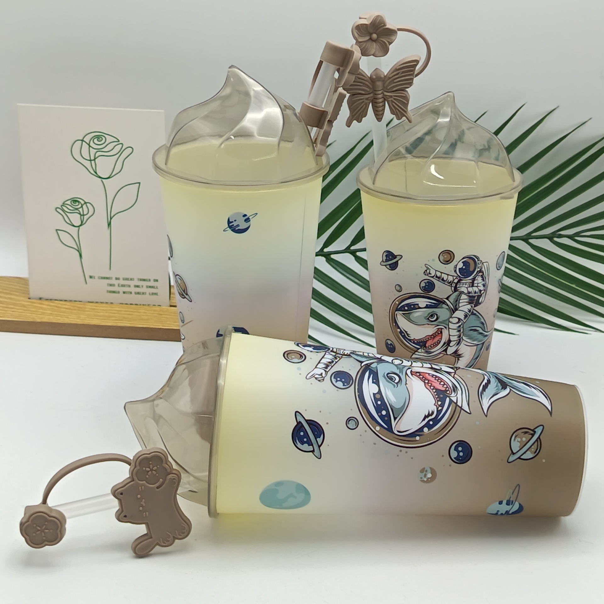 哑光渐变吸管杯学生高颜值ins风创意大容量彩色吸管杯加防尘帽