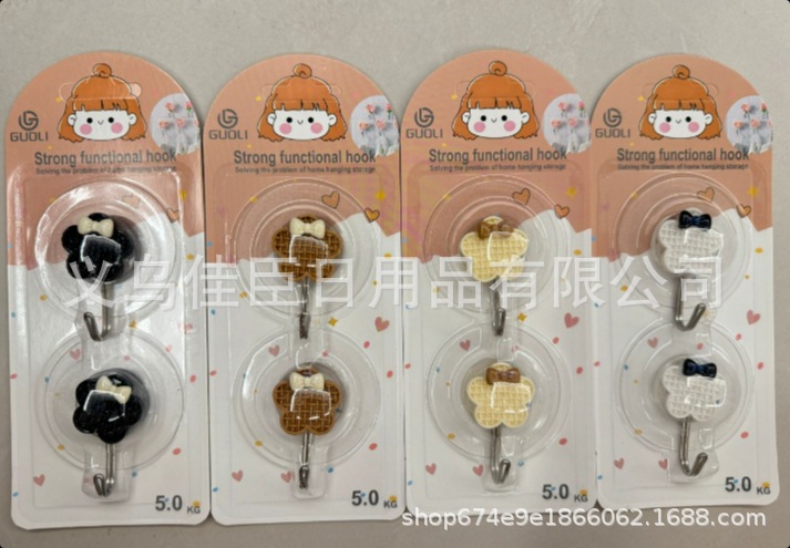 亚马逊热销款网格饼干花朵蝴蝶结造型粘钩创意款挂钩无痕钩强力钩