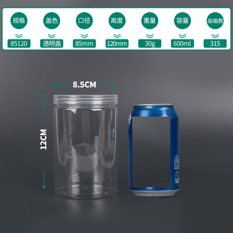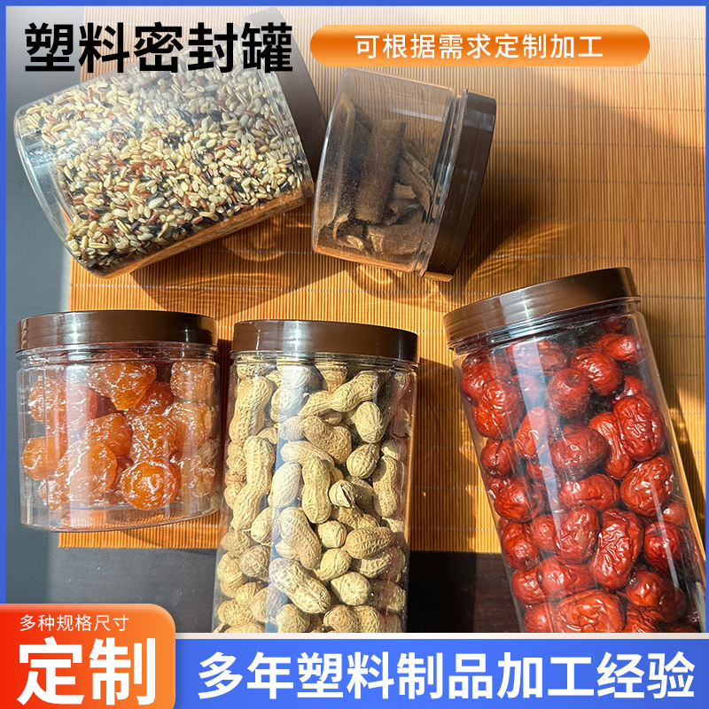 透明加厚铝盖pet储物罐圆形坚果瓶子包装罐密封塑料罐广口瓶
