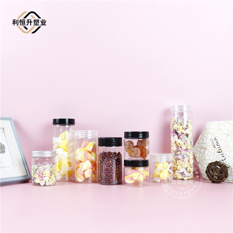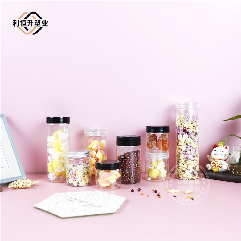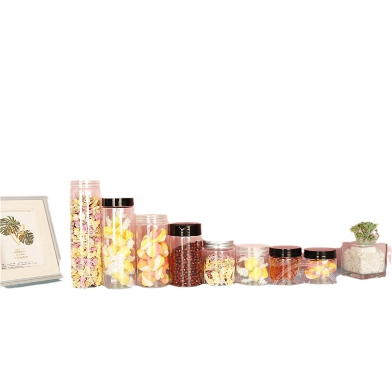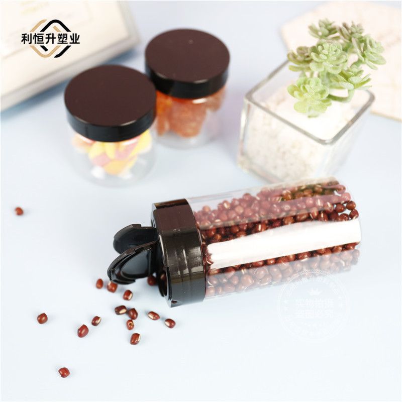 厂家发货55口径塑料密封罐圆形带盖密封瓶 透明瓶厨房粉状储物罐