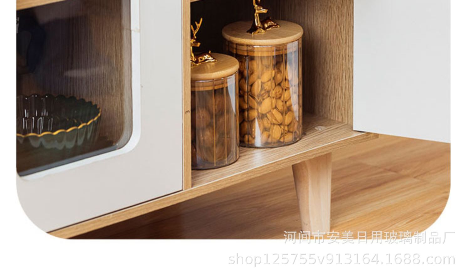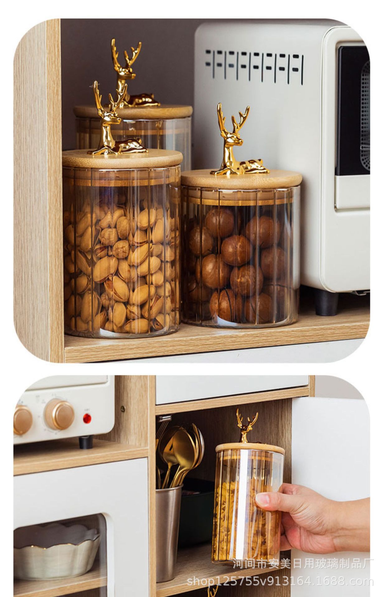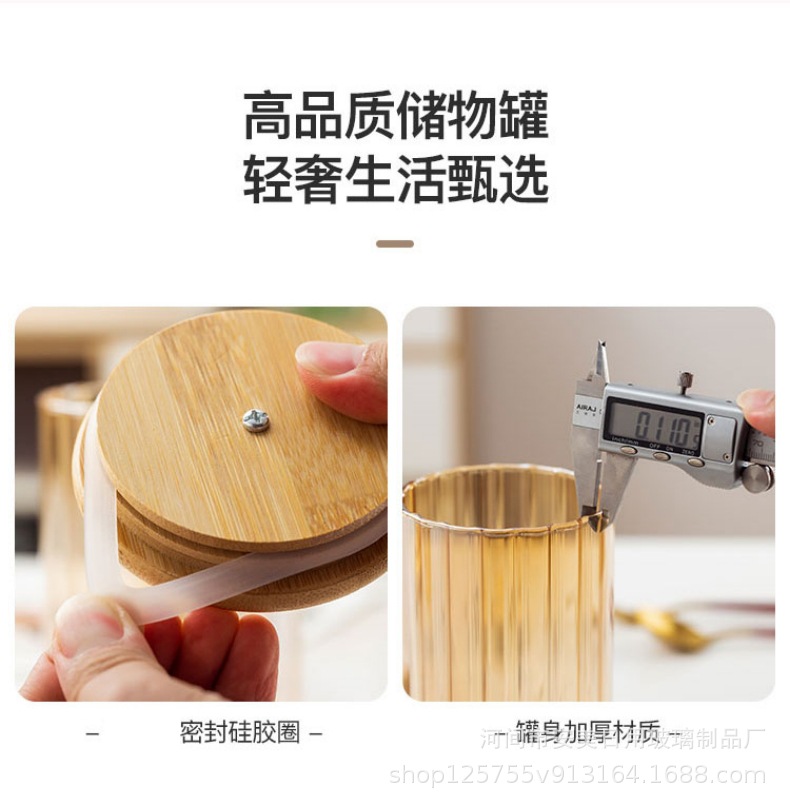 玻璃储物罐跨境小麋鹿收纳罐竖纹琥珀色高硼硅茶叶罐竹盖密封罐