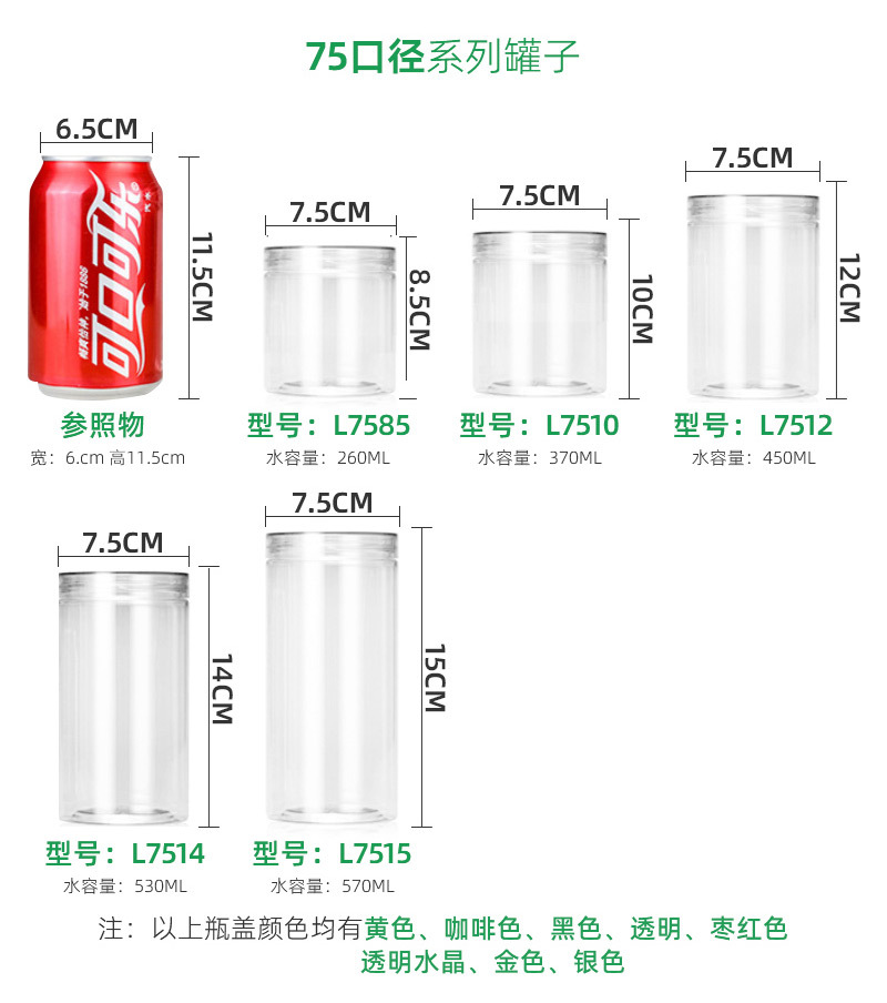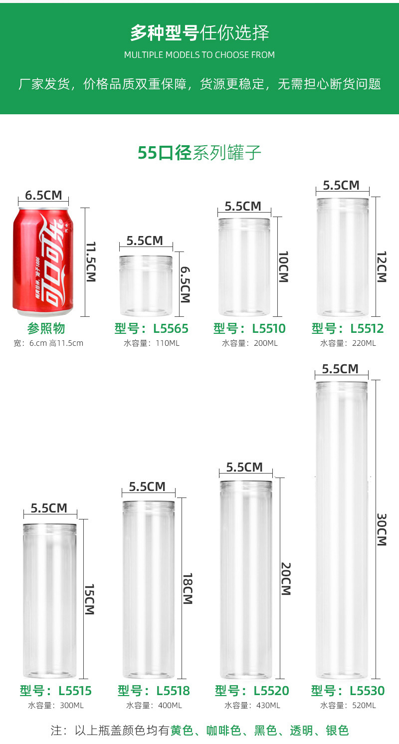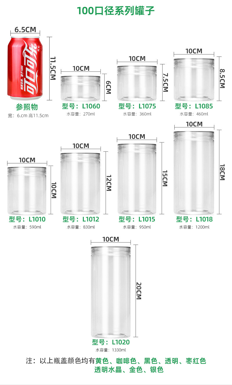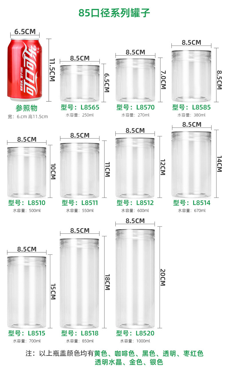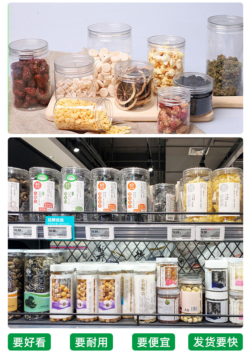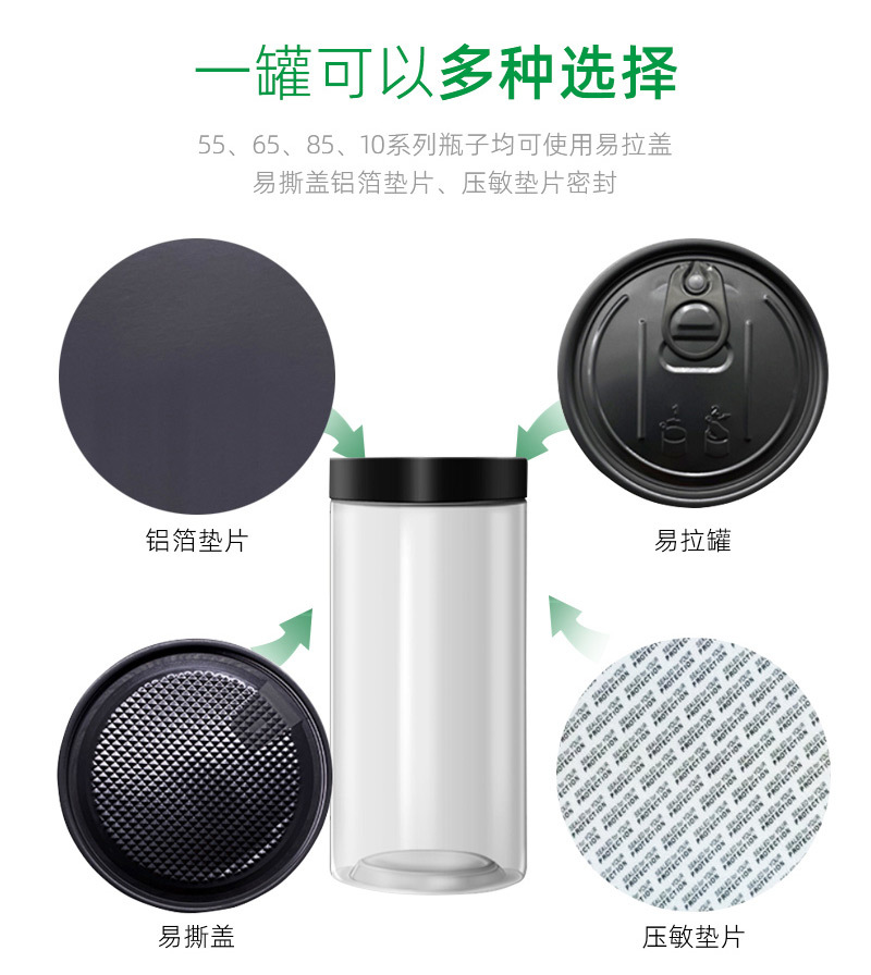 85系列 塑料食品罐 pet铝盖密封罐 圆形食品包装罐 透明储物瓶