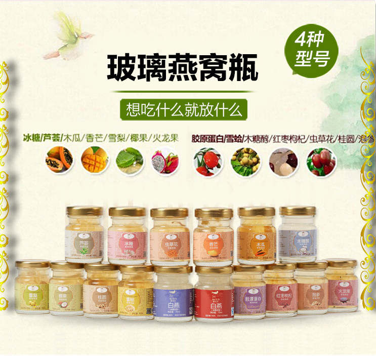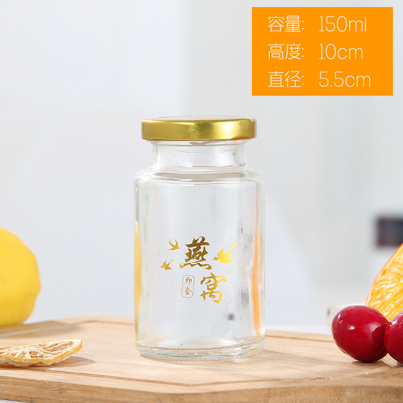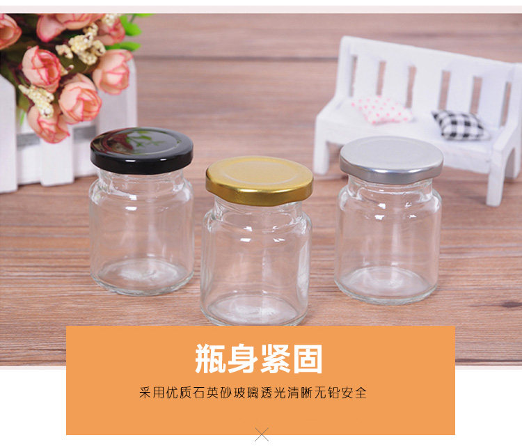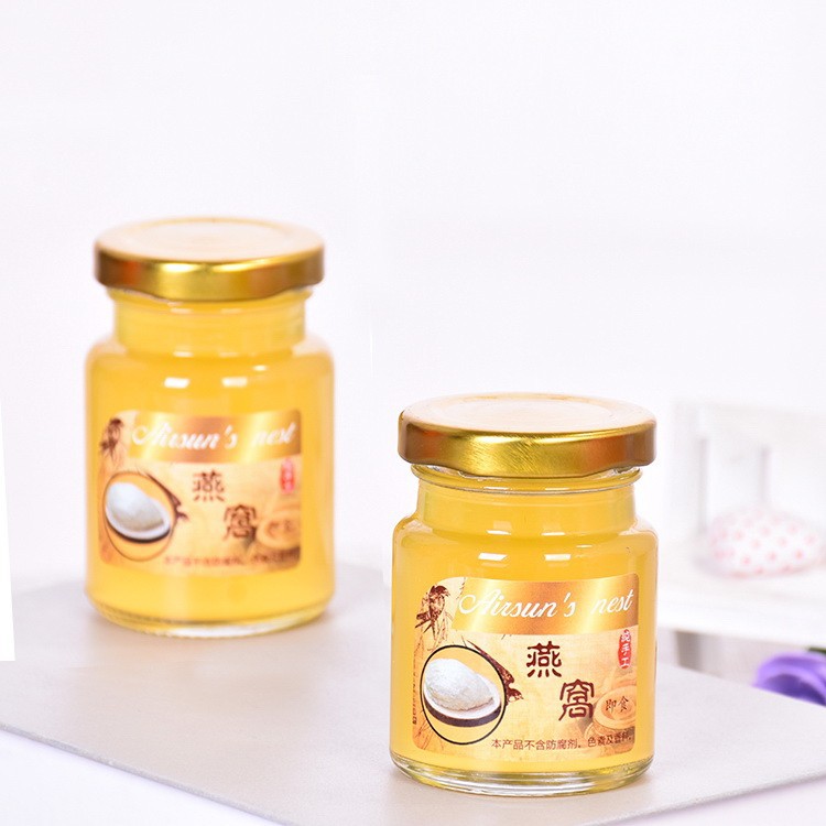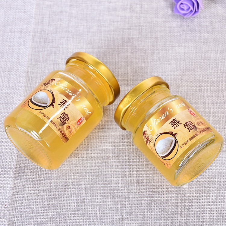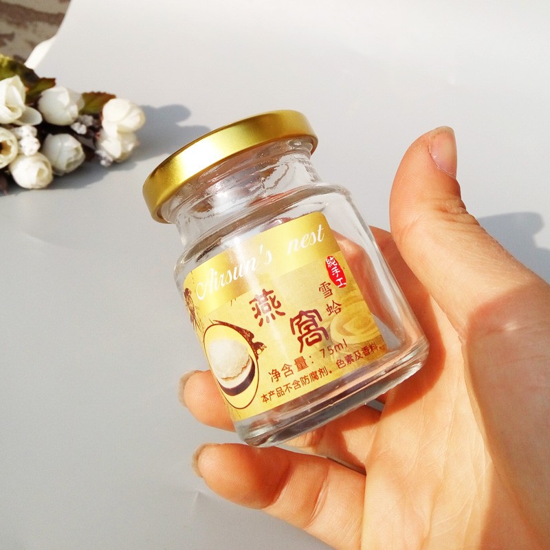 厂家直销75ml鲜炖即食燕窝瓶果酱瓶圆形铁盖透明玻璃燕窝瓶制作