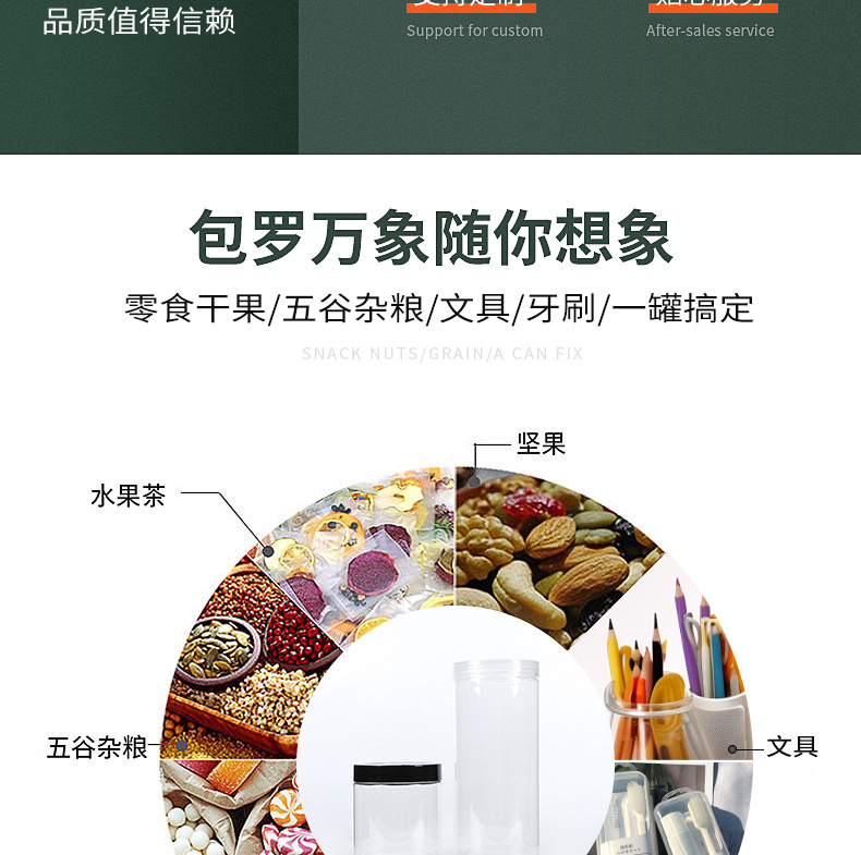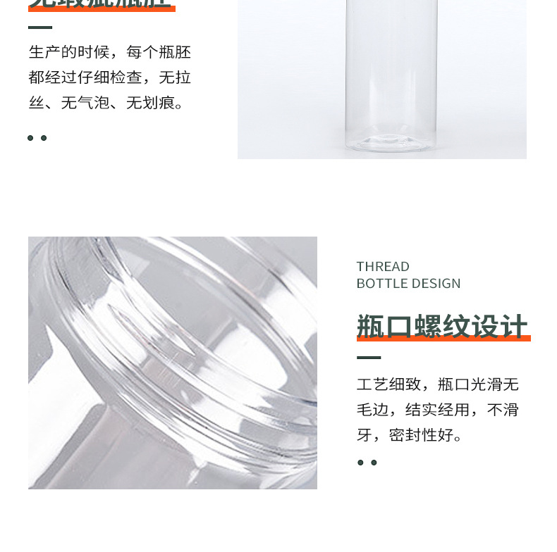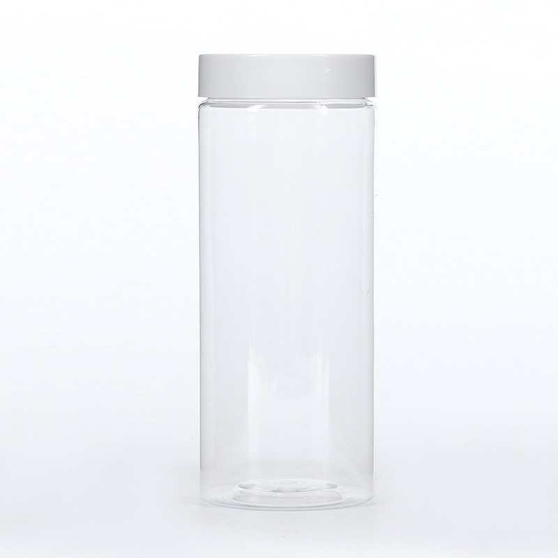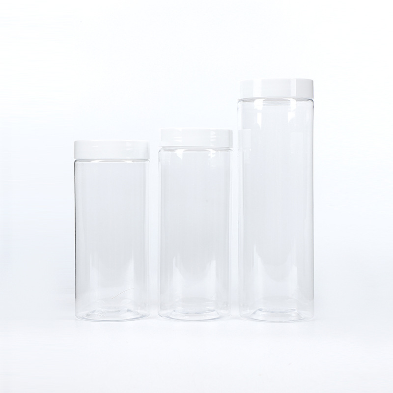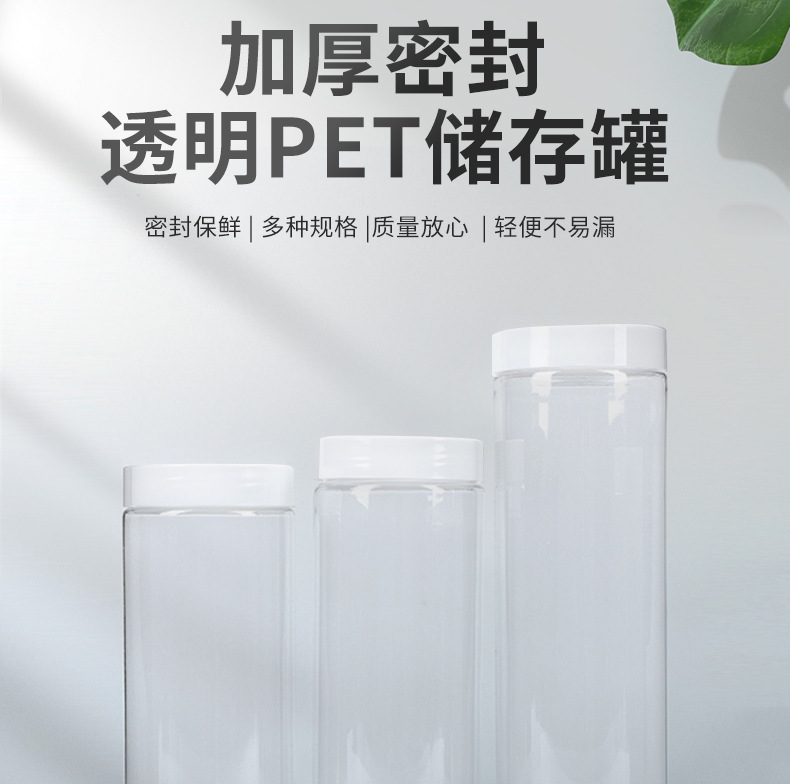 供应65口径透明塑料罐 广口螺纹口PET密封罐坚果零食罐透明包装罐