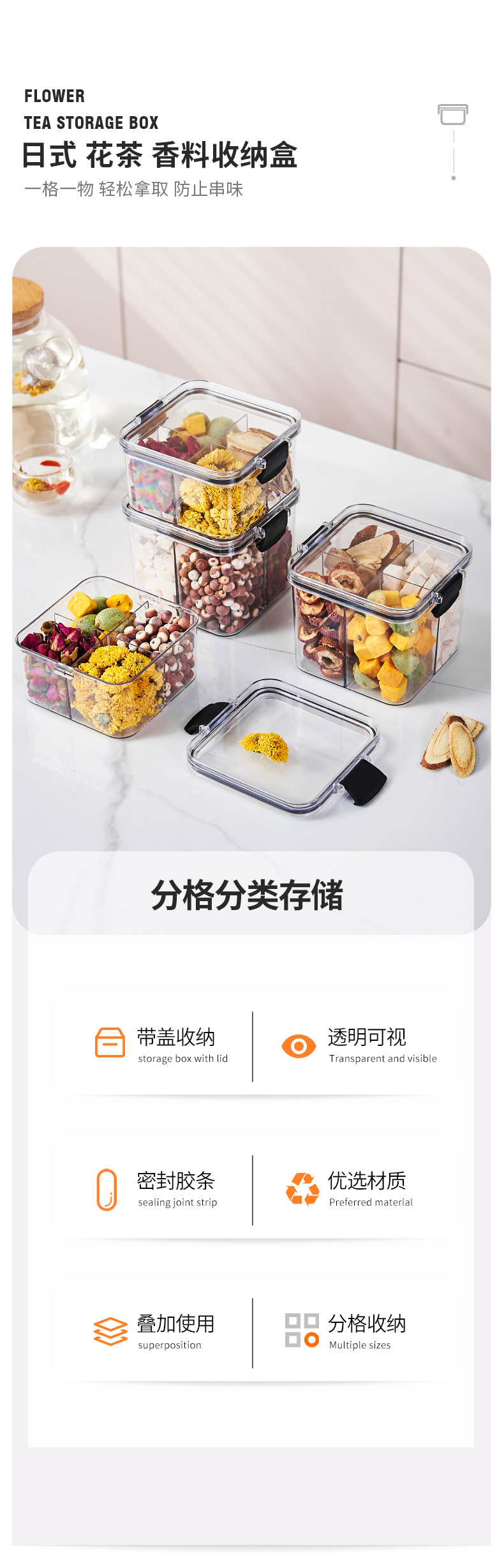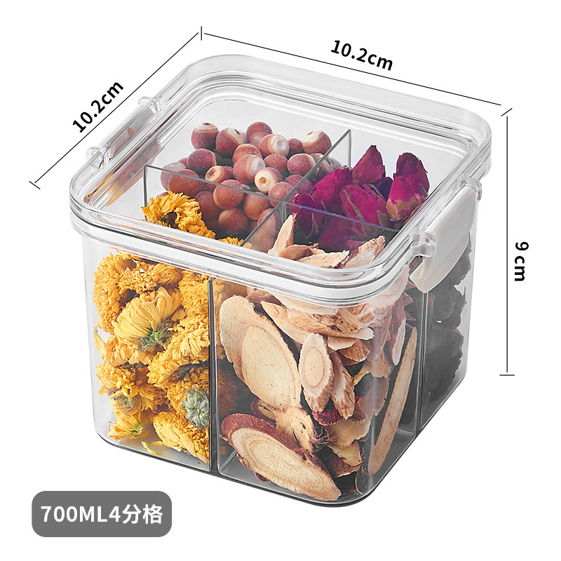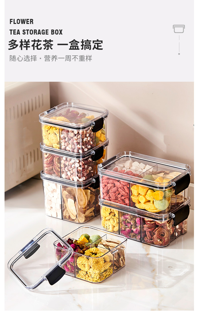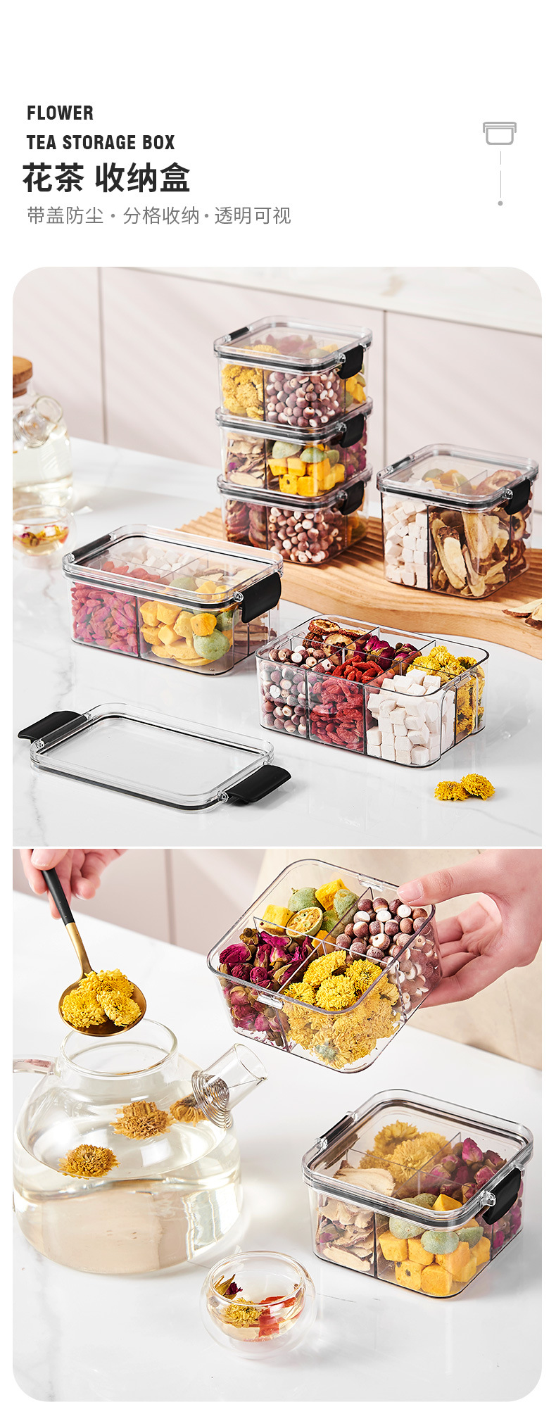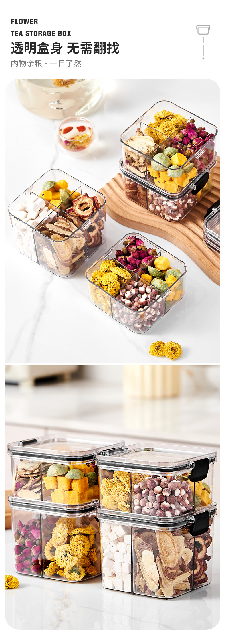 分格密封罐花茶收纳盒食品级杂粮罐储物罐干货方形透明收纳罐带盖