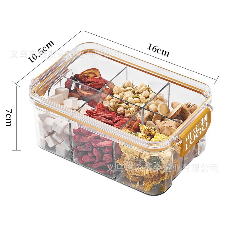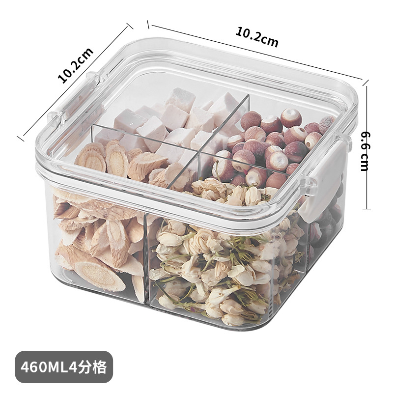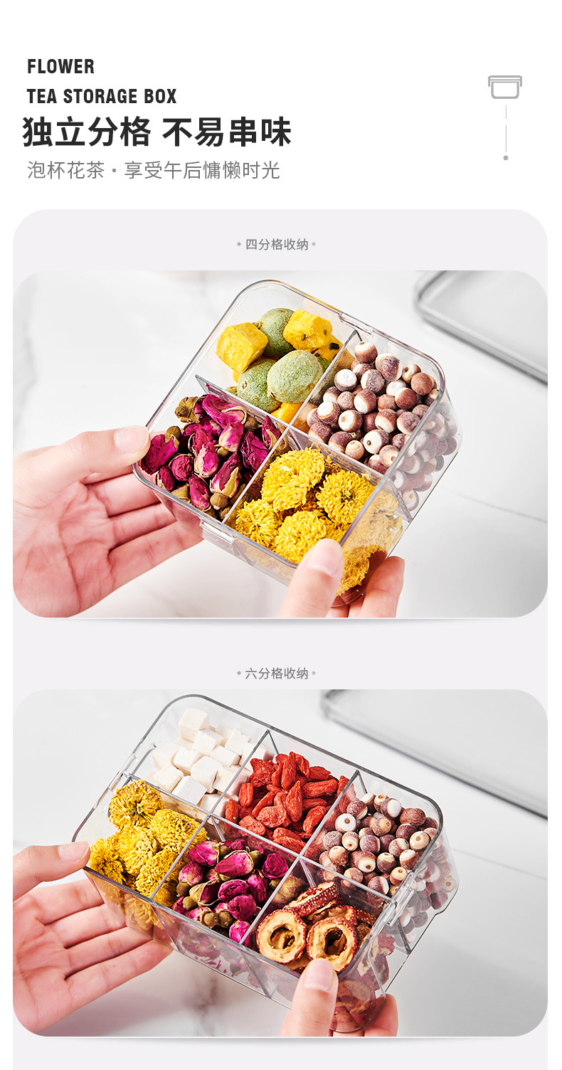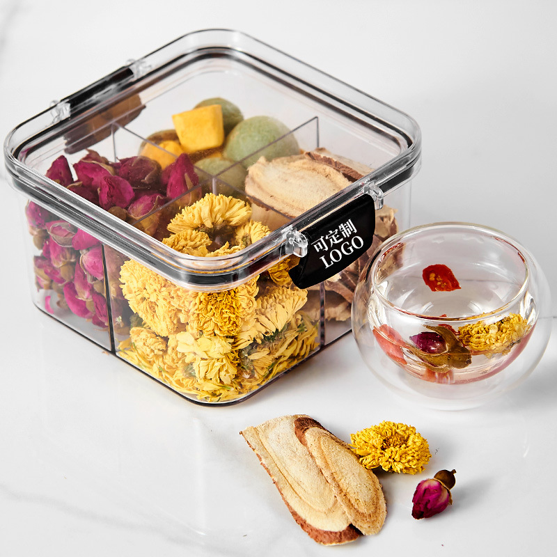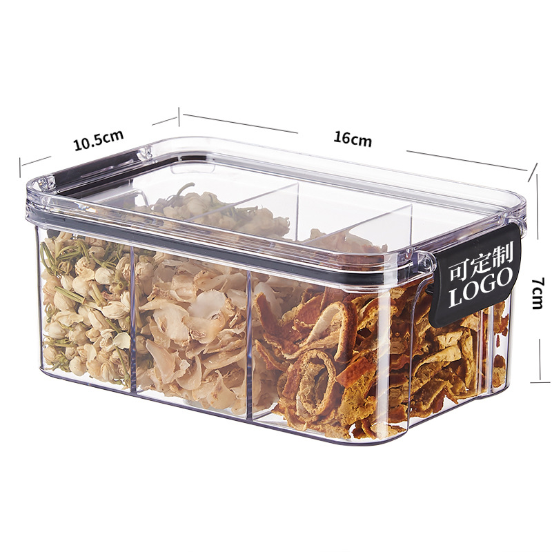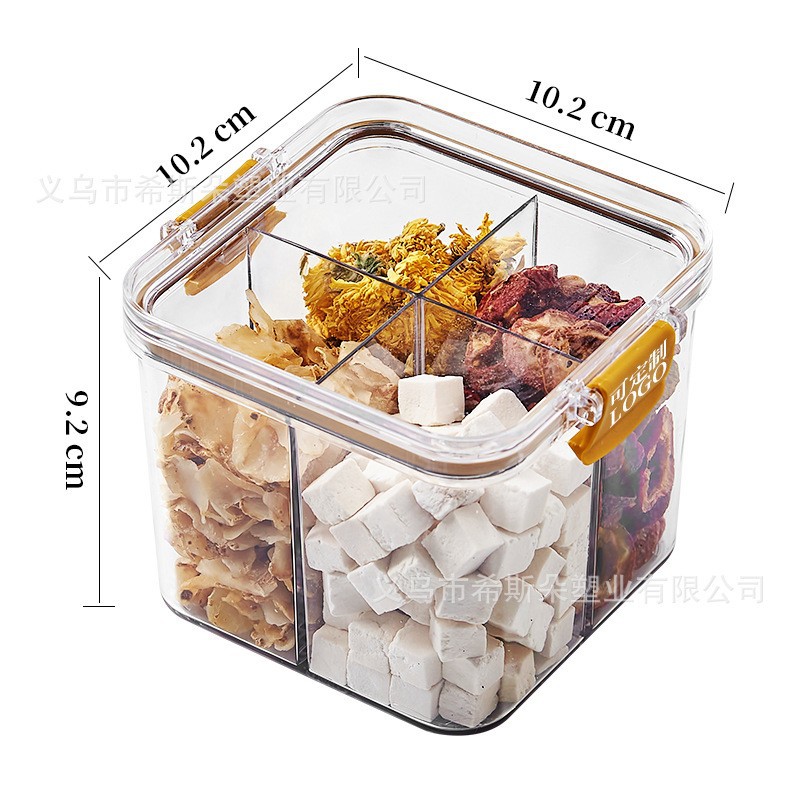 分格密封罐花茶收纳盒食品级杂粮罐储物罐干货方形透明收纳罐带盖
