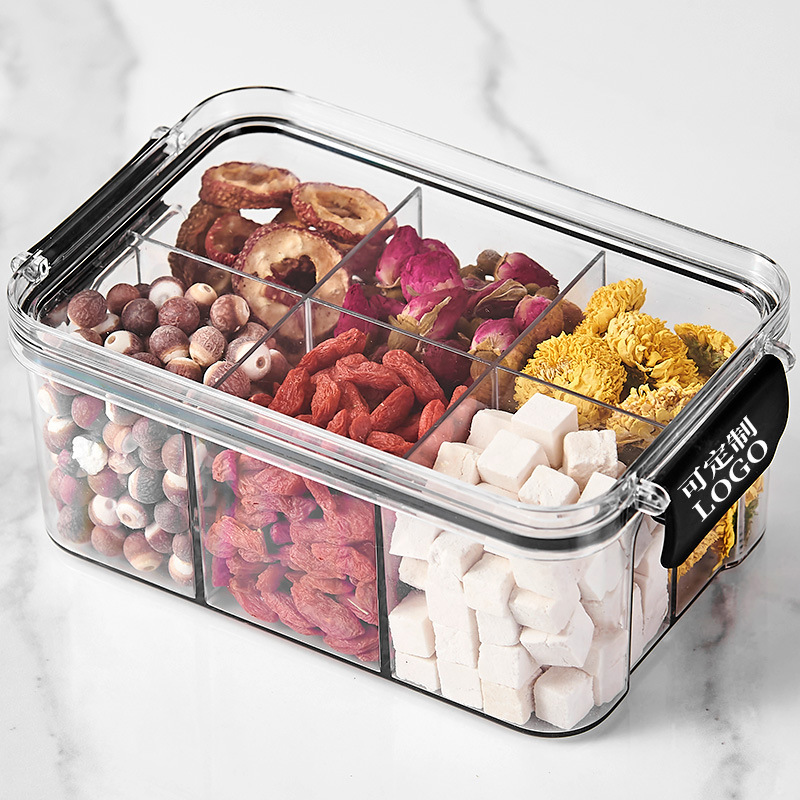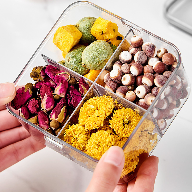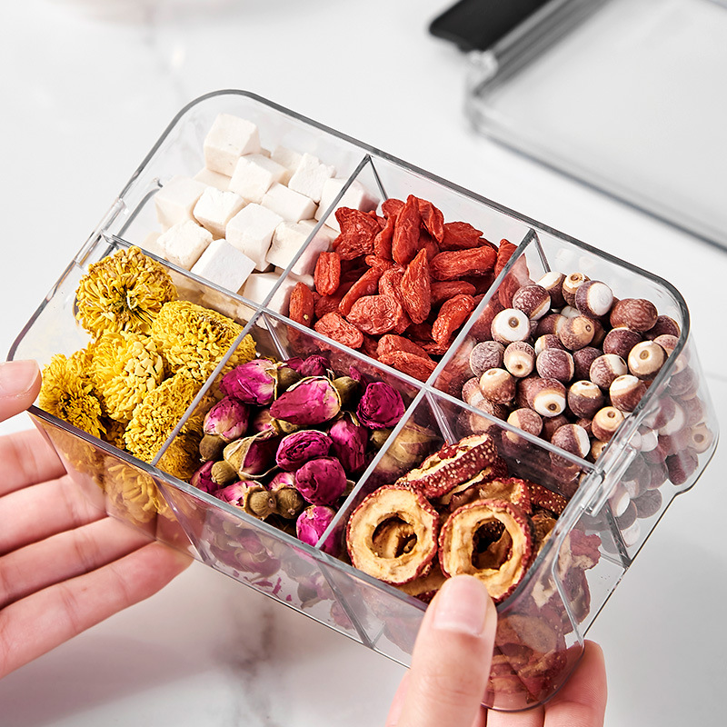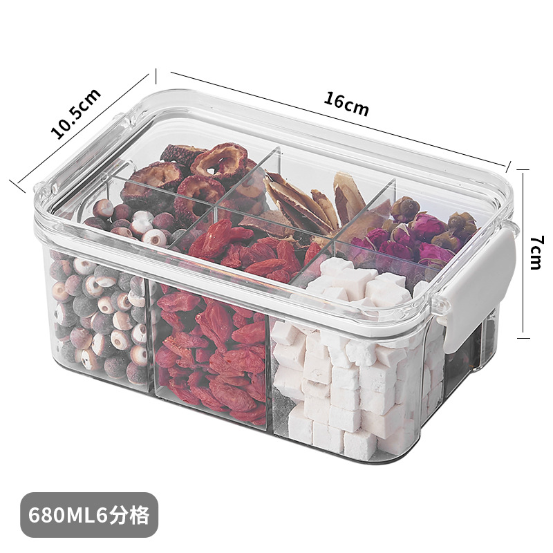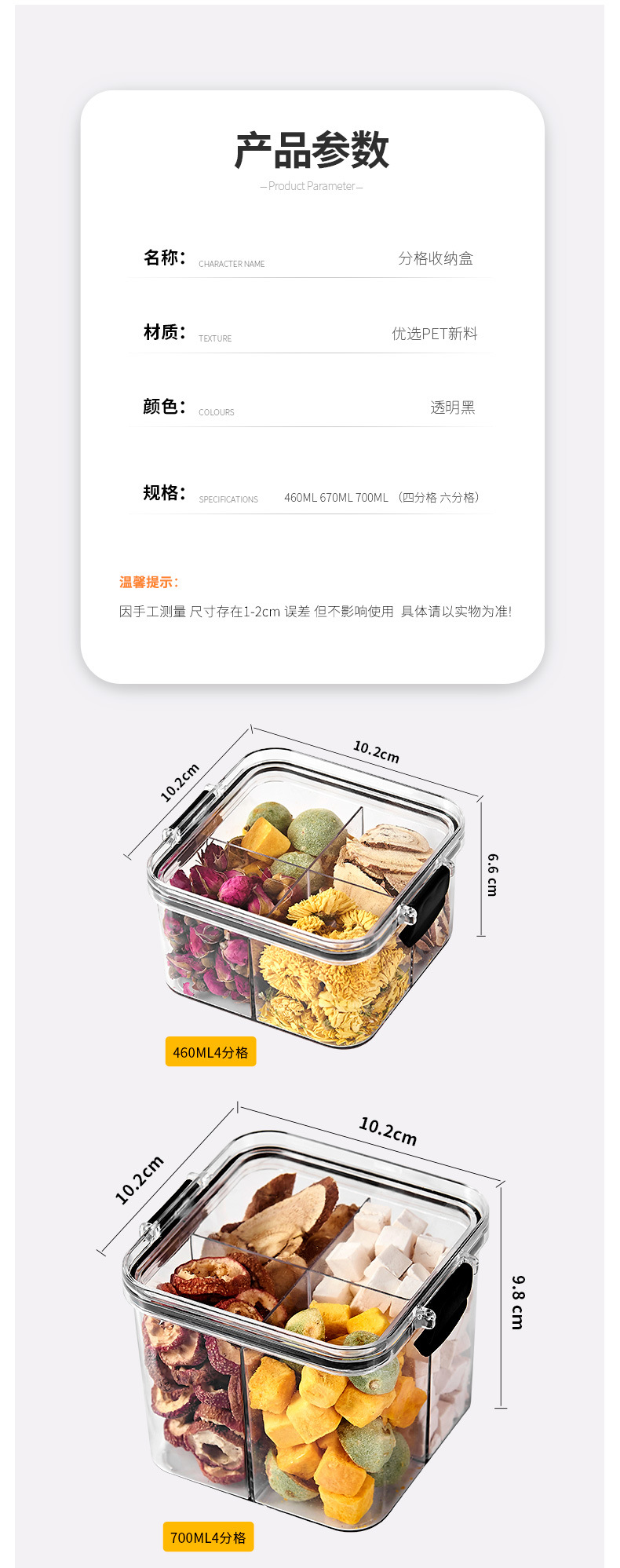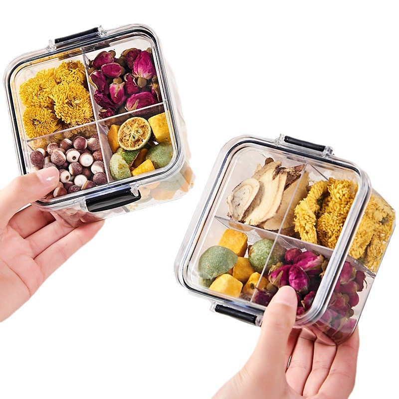 分格密封罐花茶收纳盒食品级杂粮罐储物罐干货方形透明收纳罐带盖