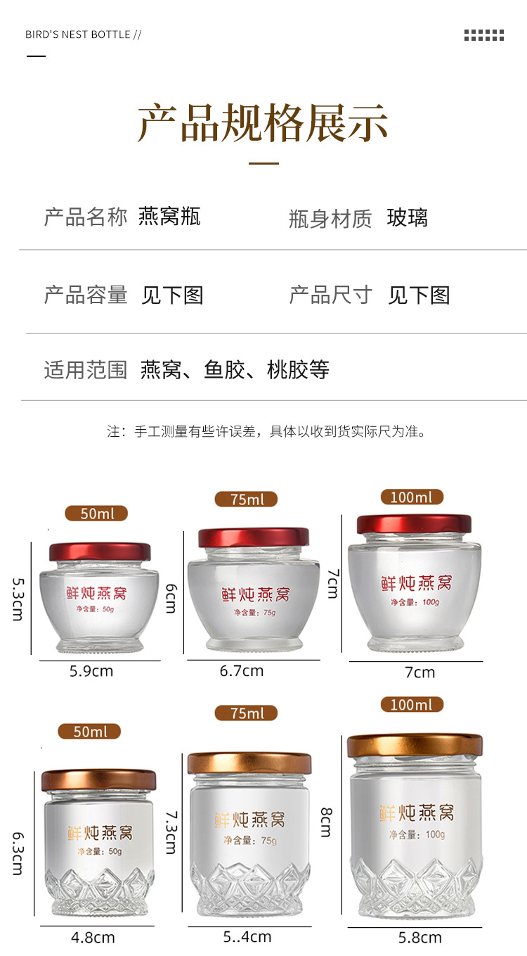 即食燕窝分装瓶鲜炖燕窝瓶食品级耐高温密封瓶可蒸煮鱼胶奶冻
