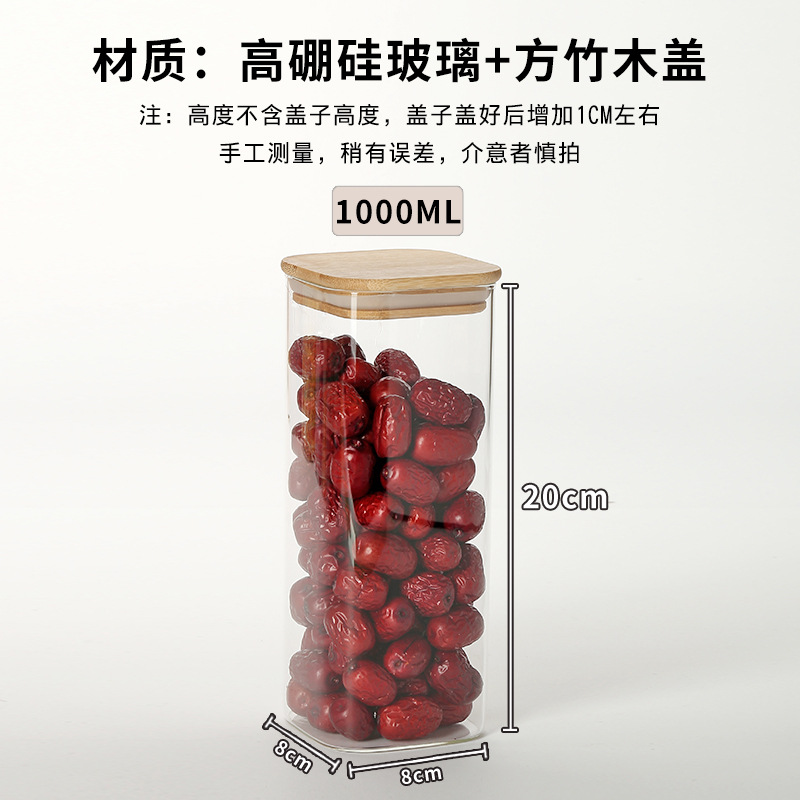 密封罐透明玻璃罐方形玻璃收纳罐厨房储物神器五谷杂粮花茶储存罐