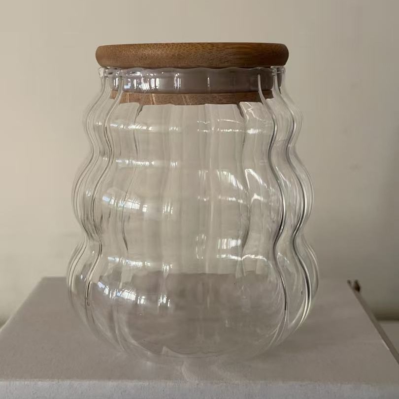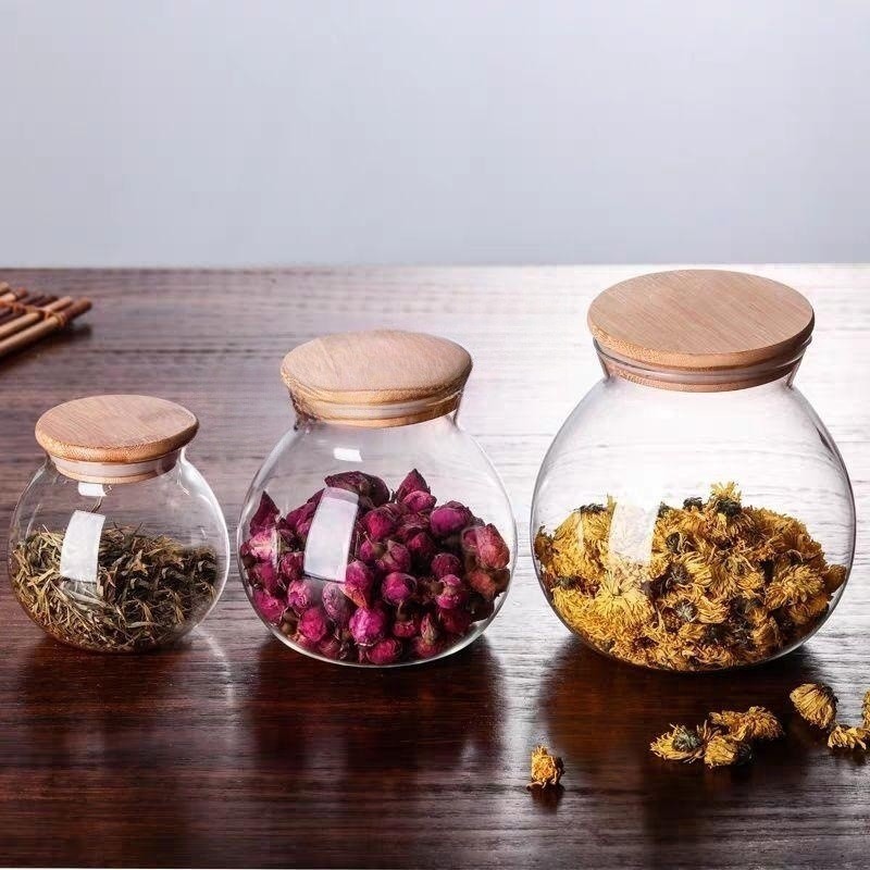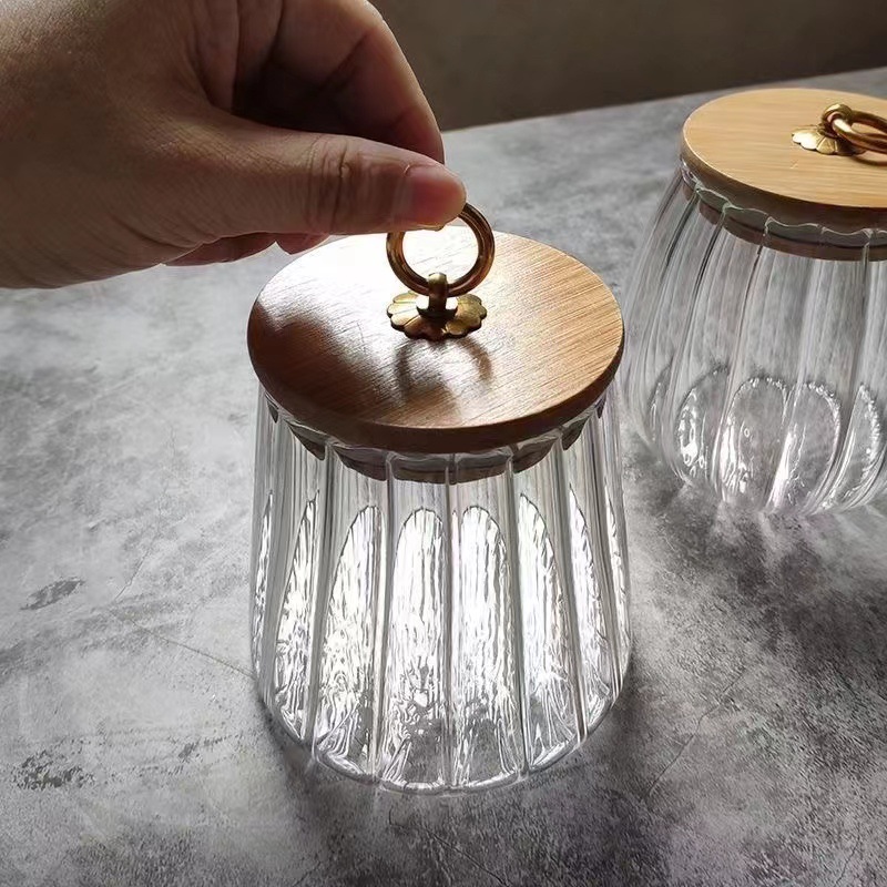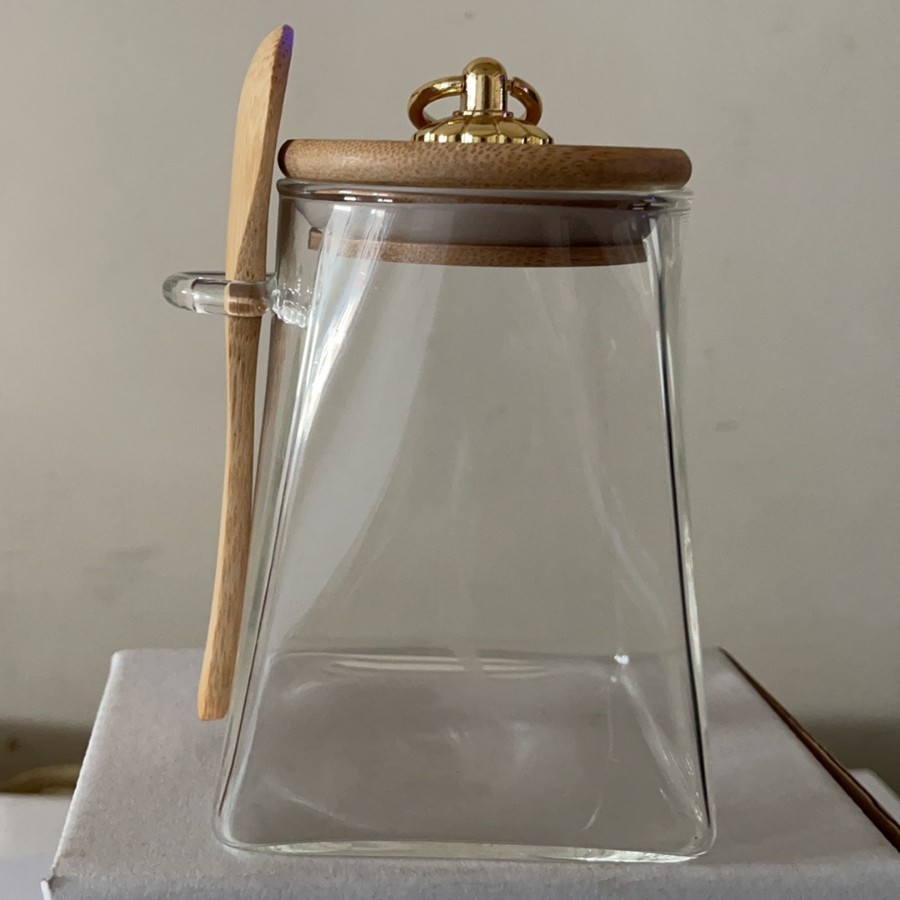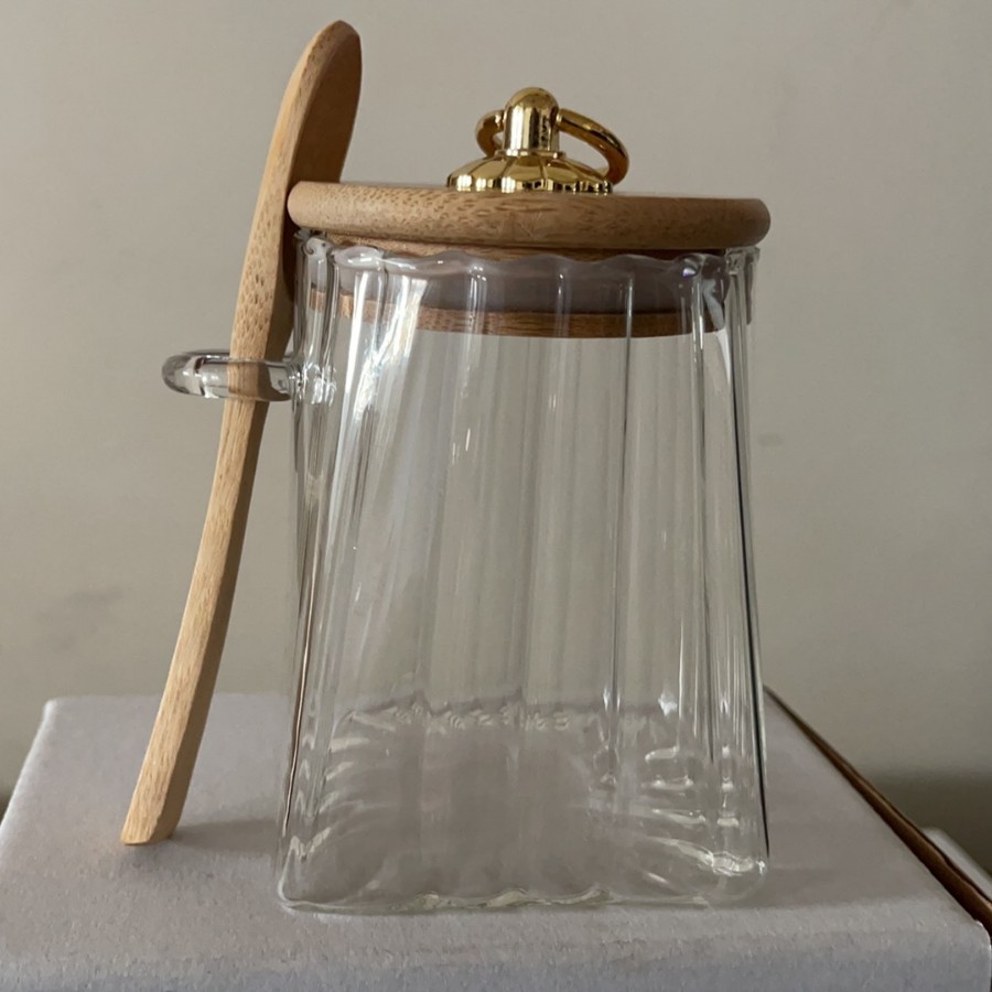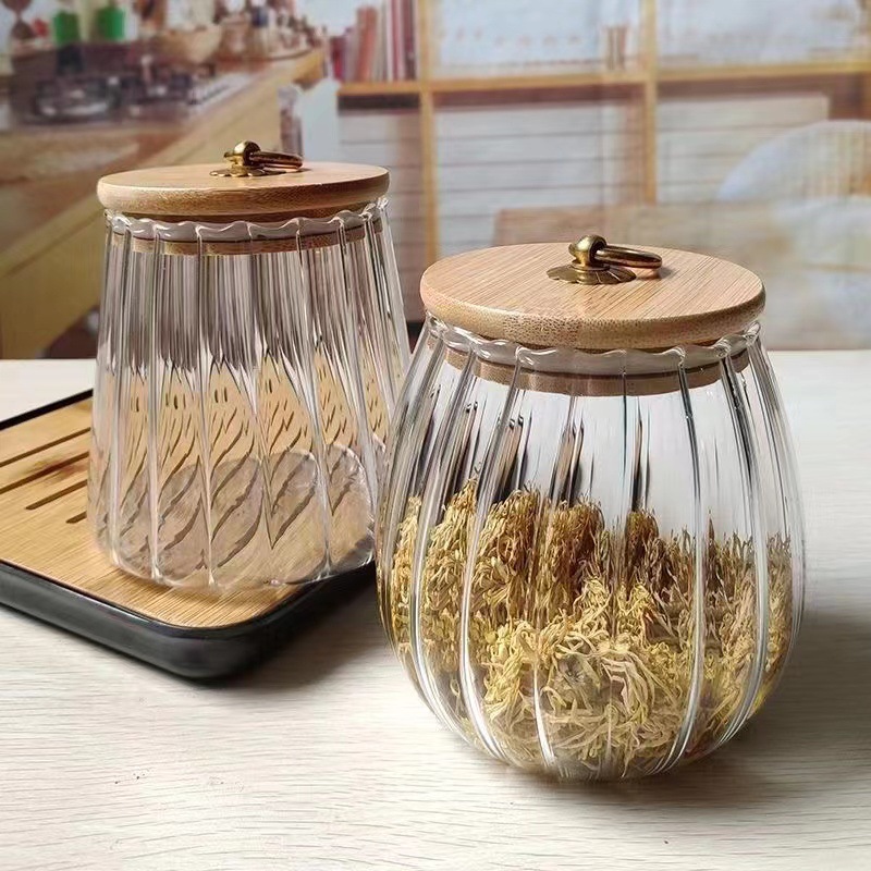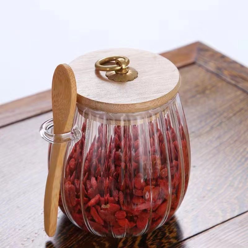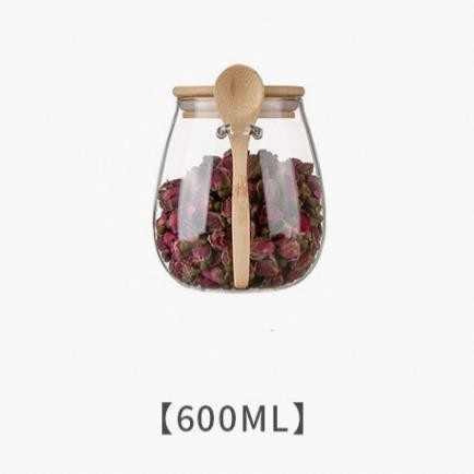 家用透明玻璃厨房杂粮密封罐子高硼硅玻璃带盖子带勺子收纳储物罐