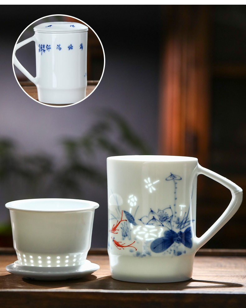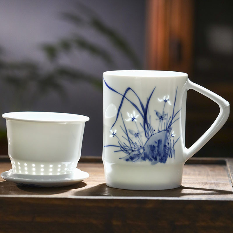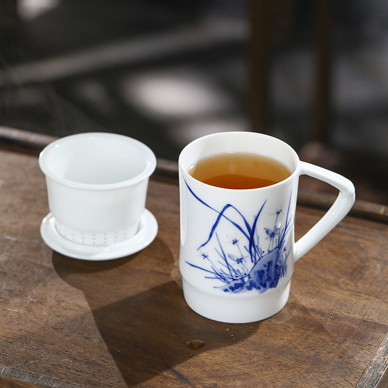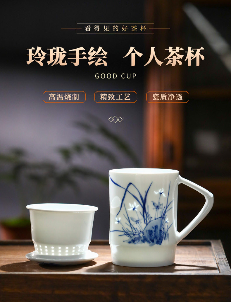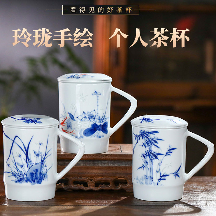 景德镇手绘玲珑便捷泡茶杯2024新款茶水分离陶瓷杯办公家用礼品杯