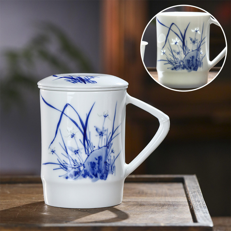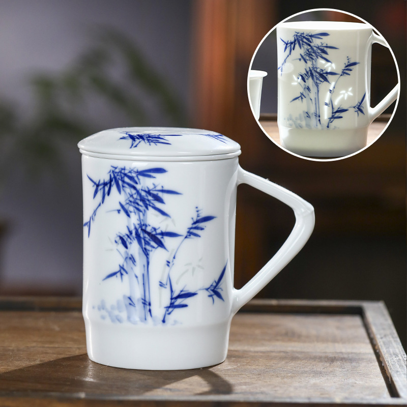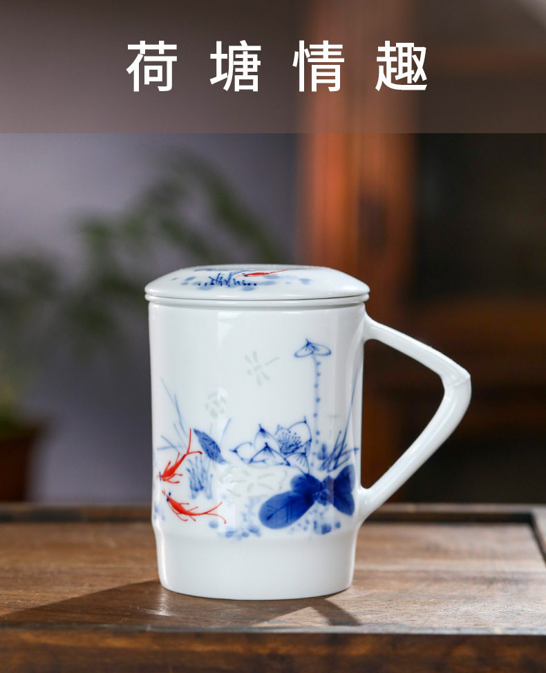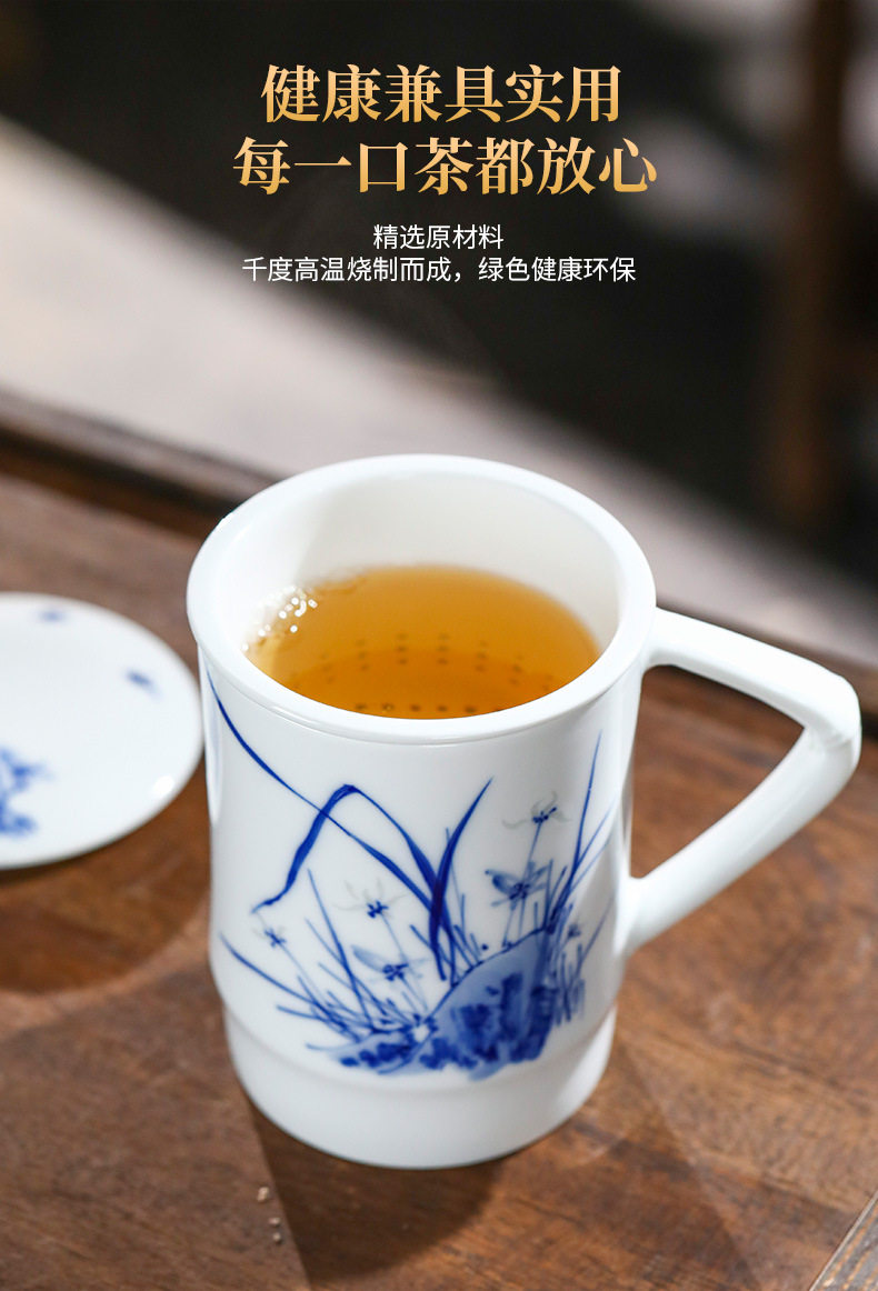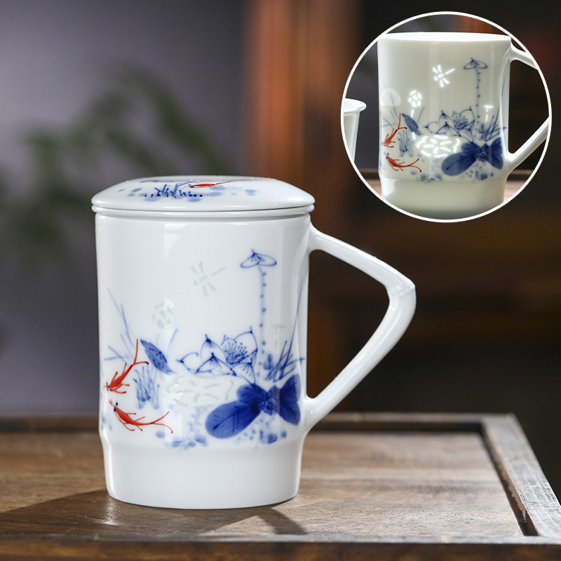 景德镇手绘玲珑便捷泡茶杯2024新款茶水分离陶瓷杯办公家用礼品杯