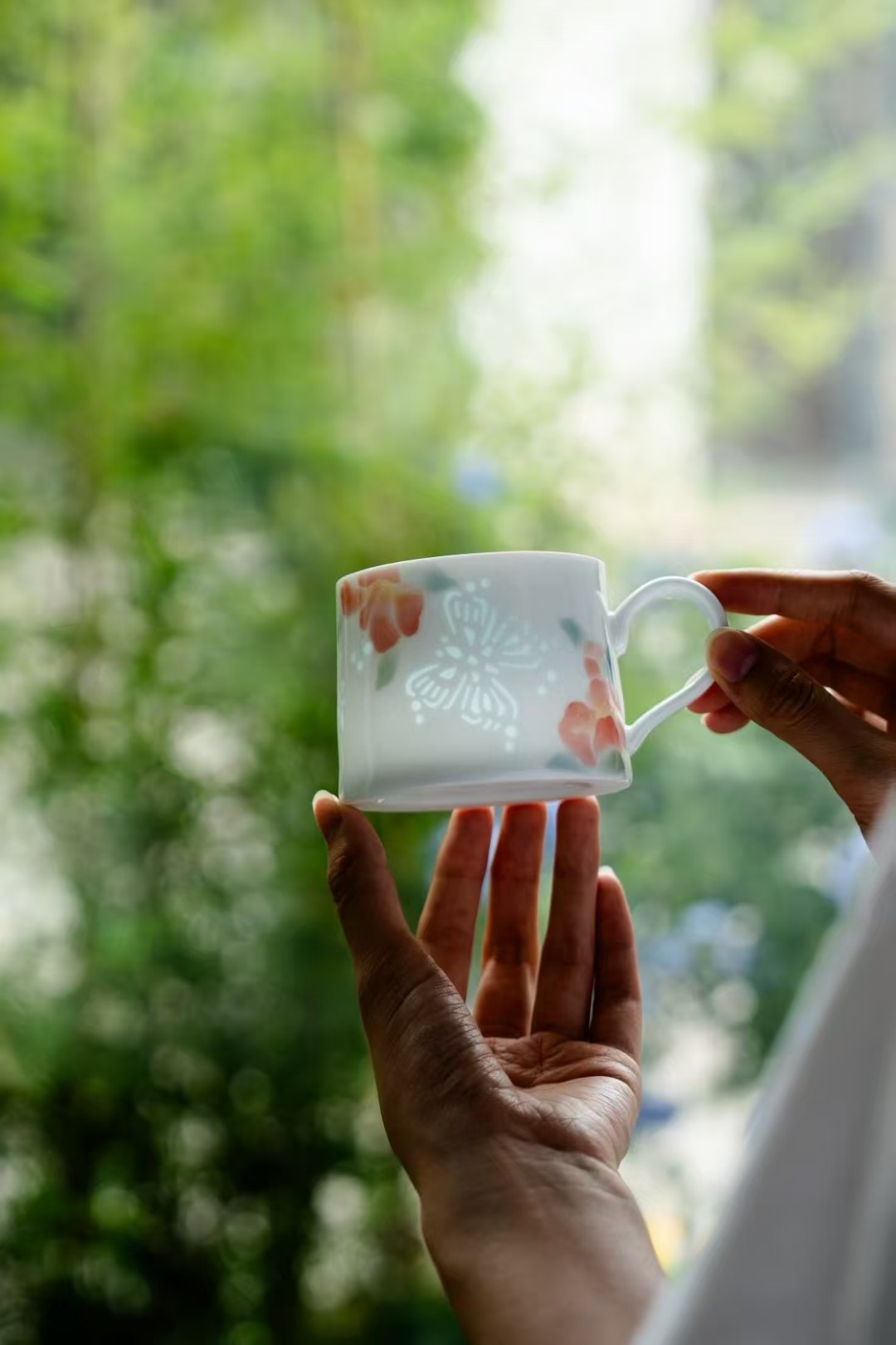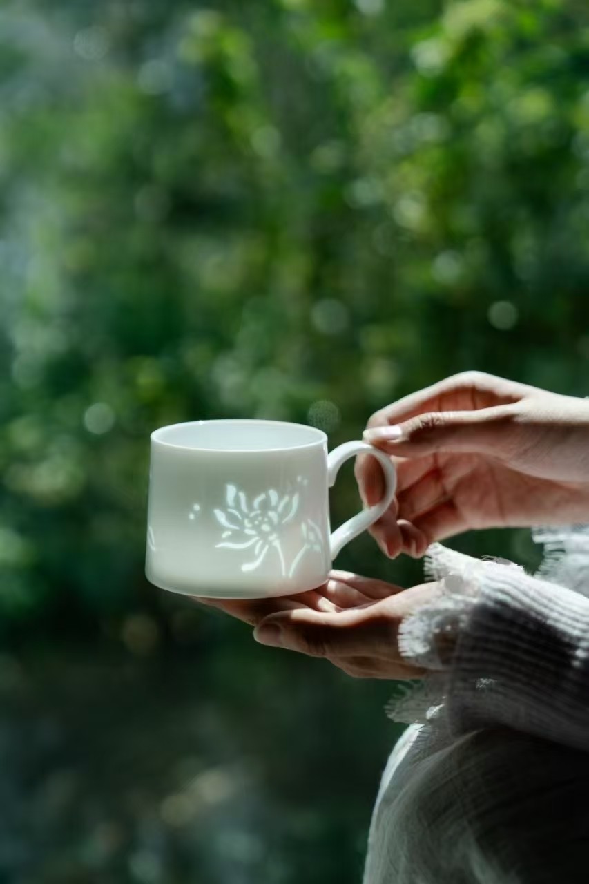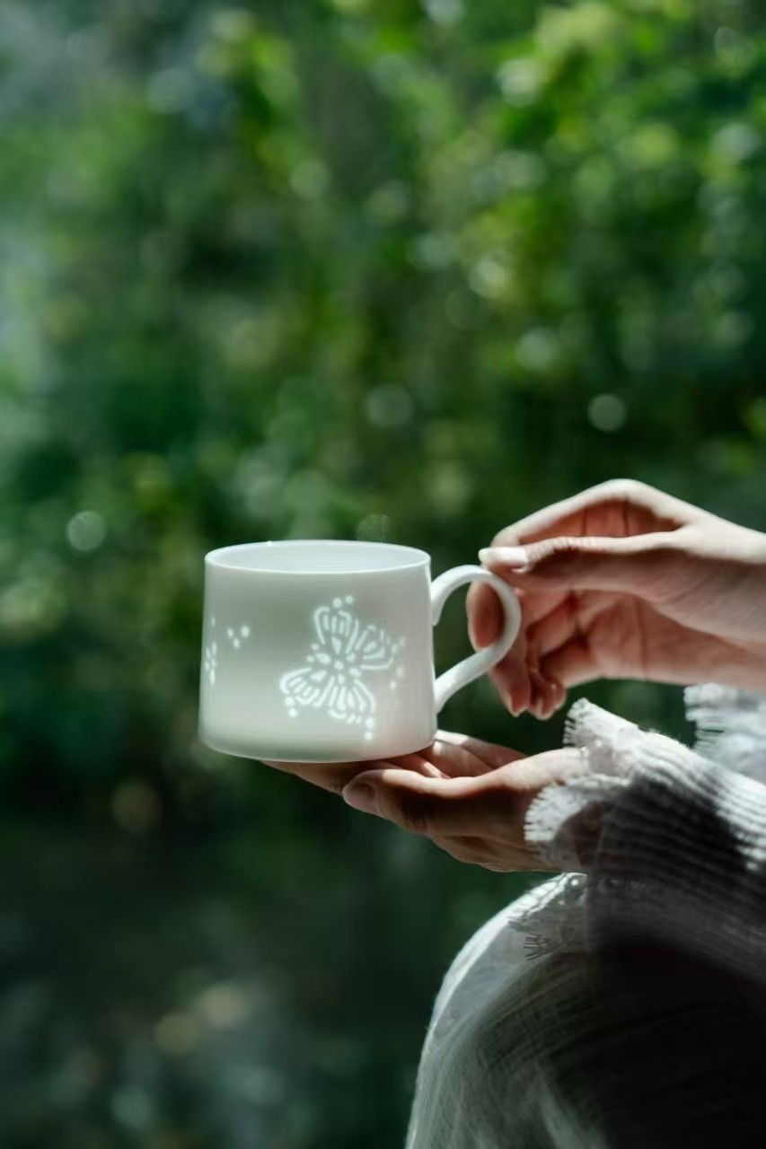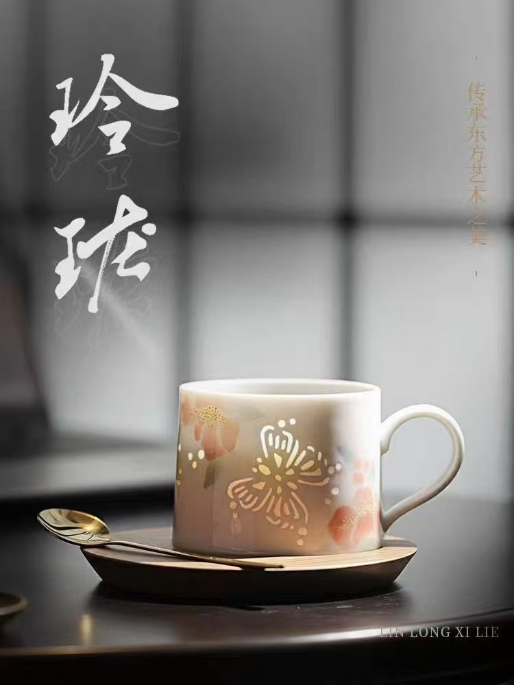 景德镇手绘玲珑咖啡杯小清新简约节日女士送礼物水杯茶杯礼盒轻奢