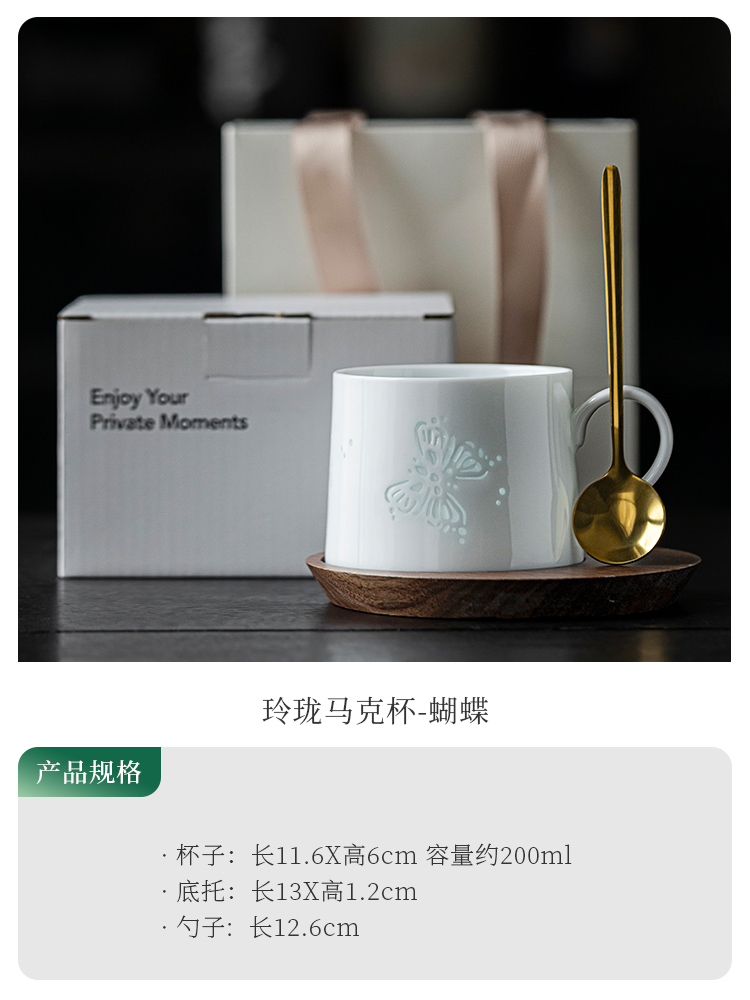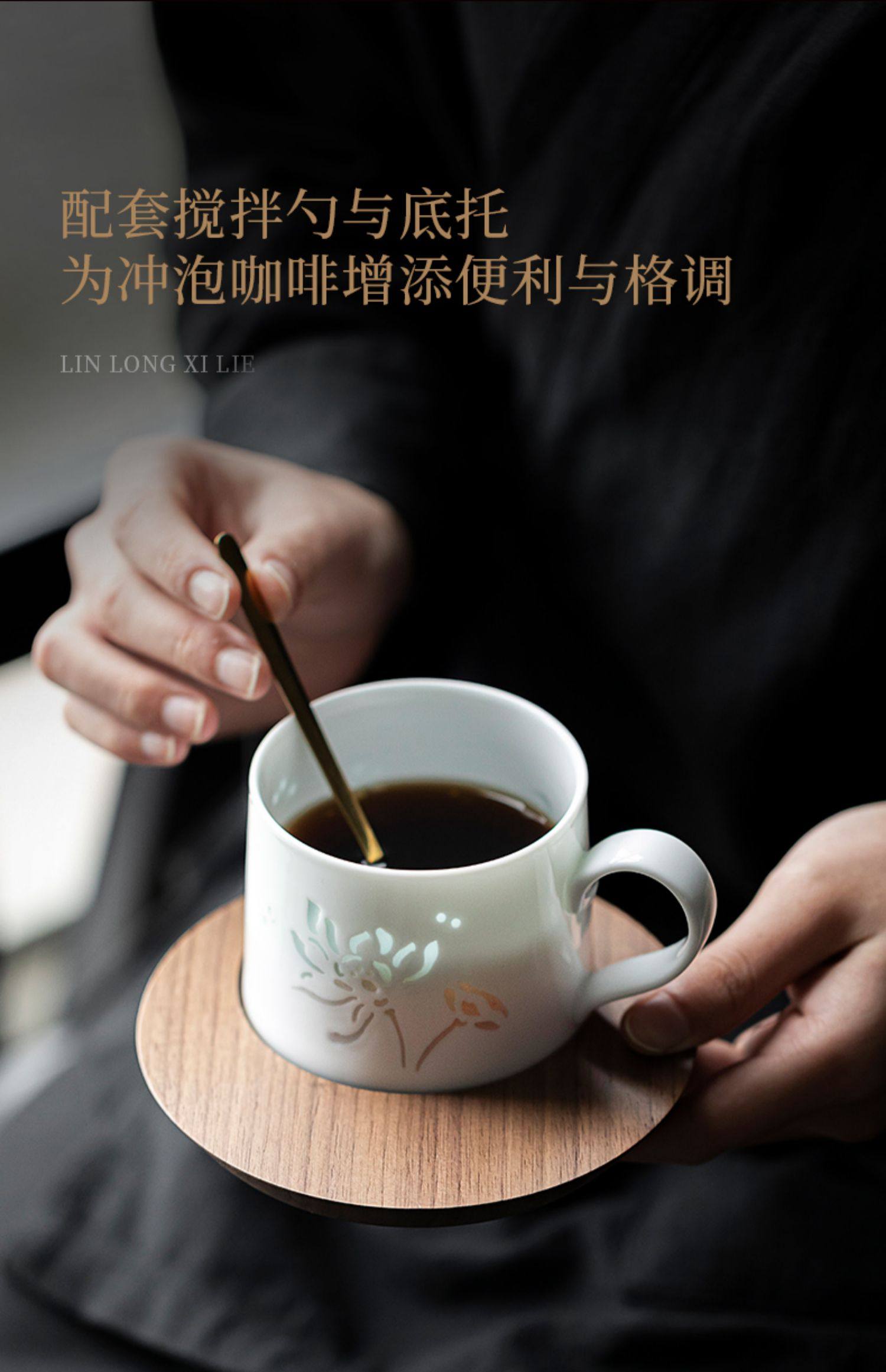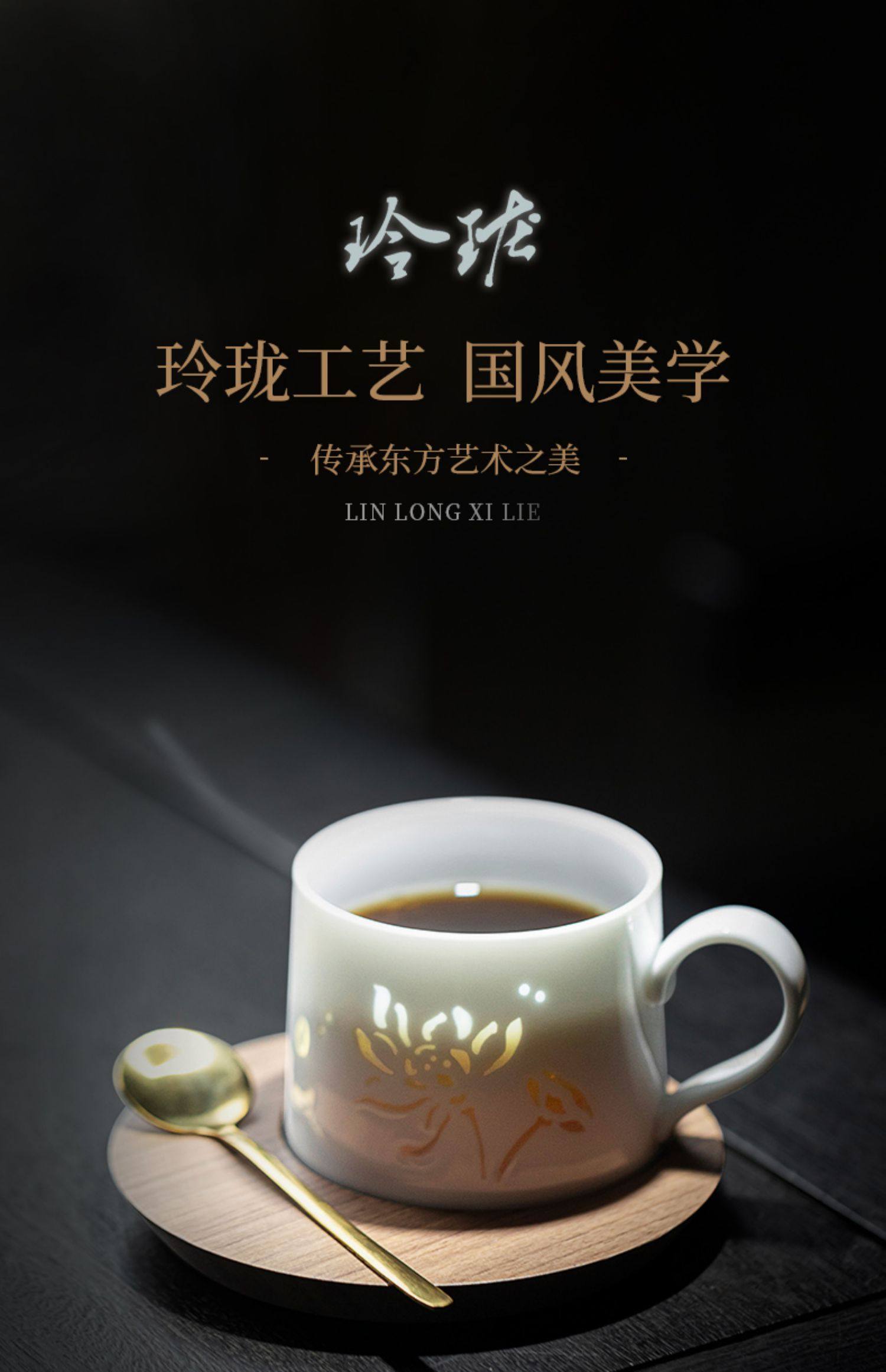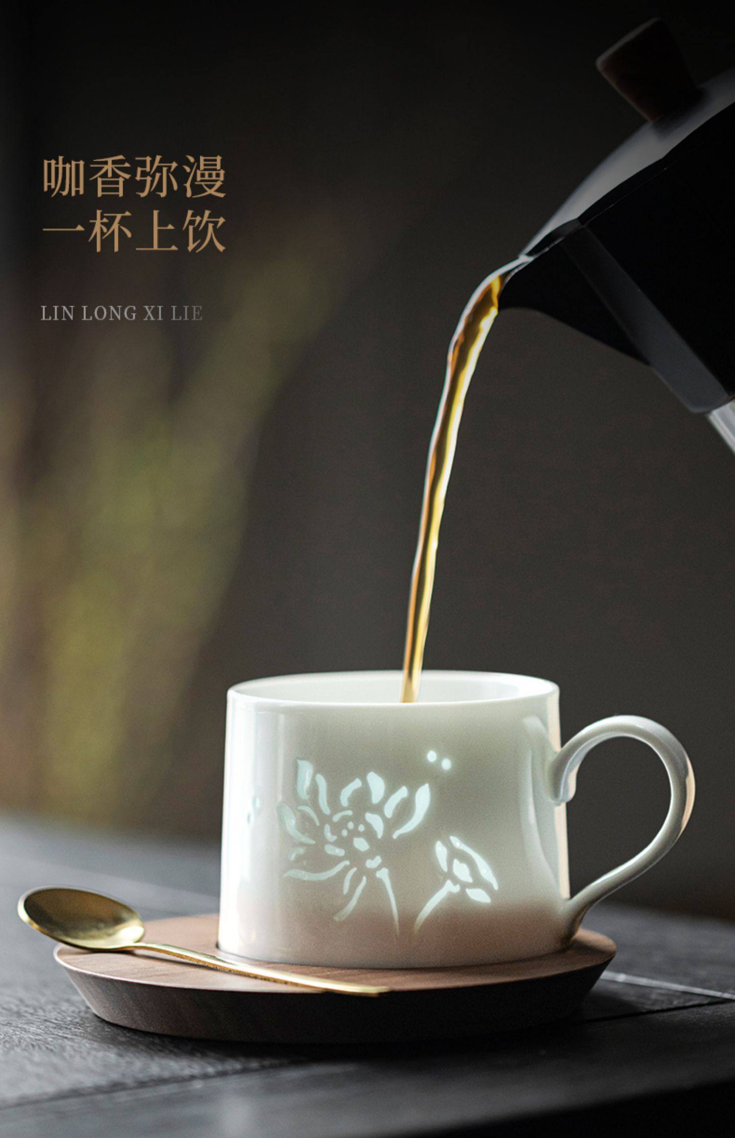 玲珑咖啡杯杯碟套装陶瓷马克杯子高档精致女士个人专用小众高级感