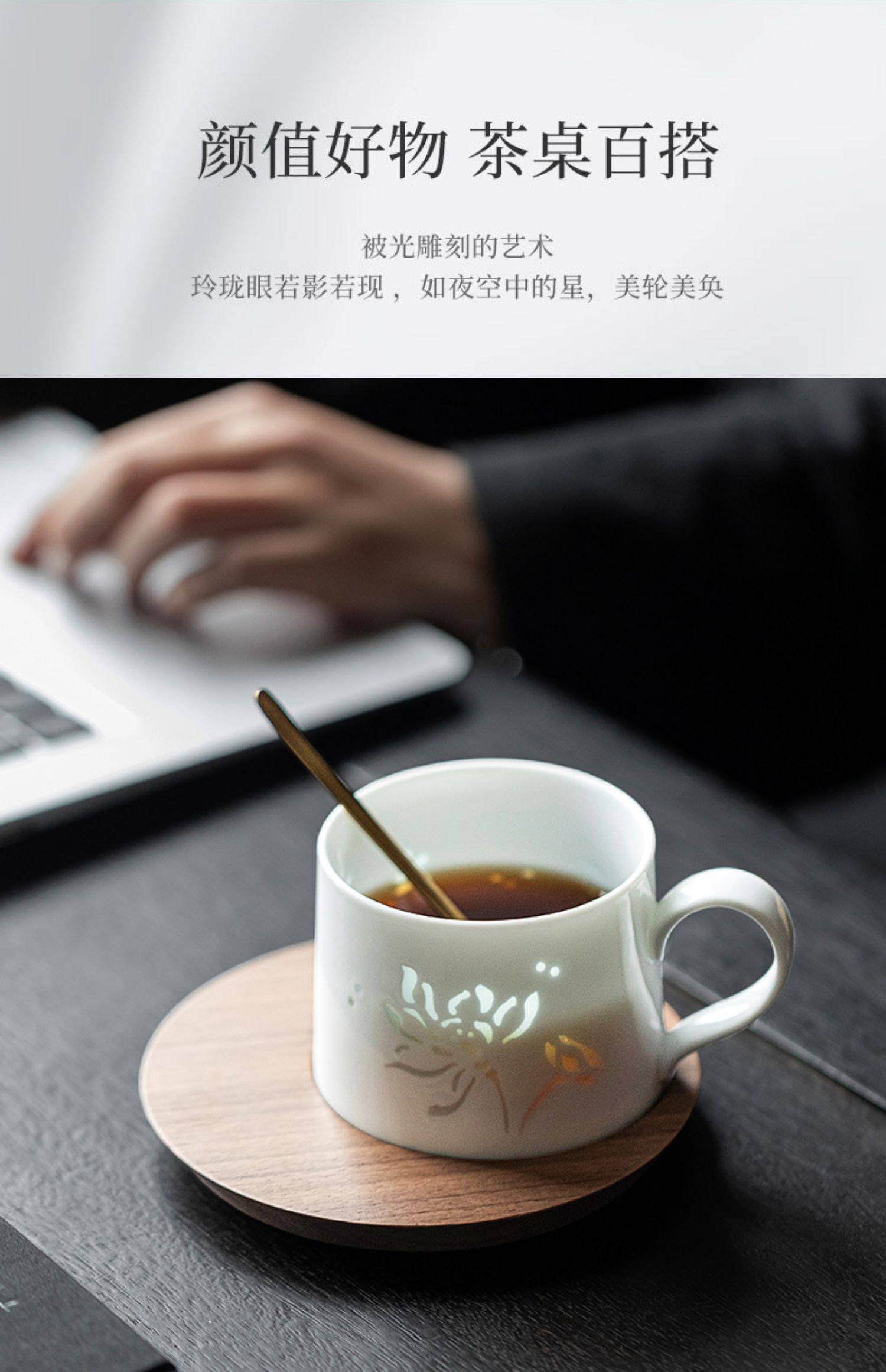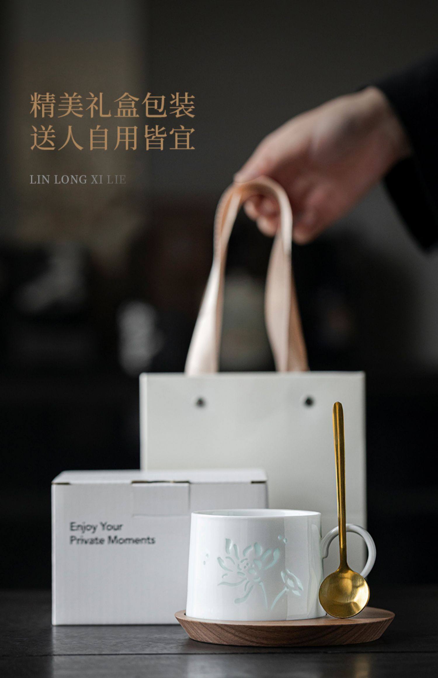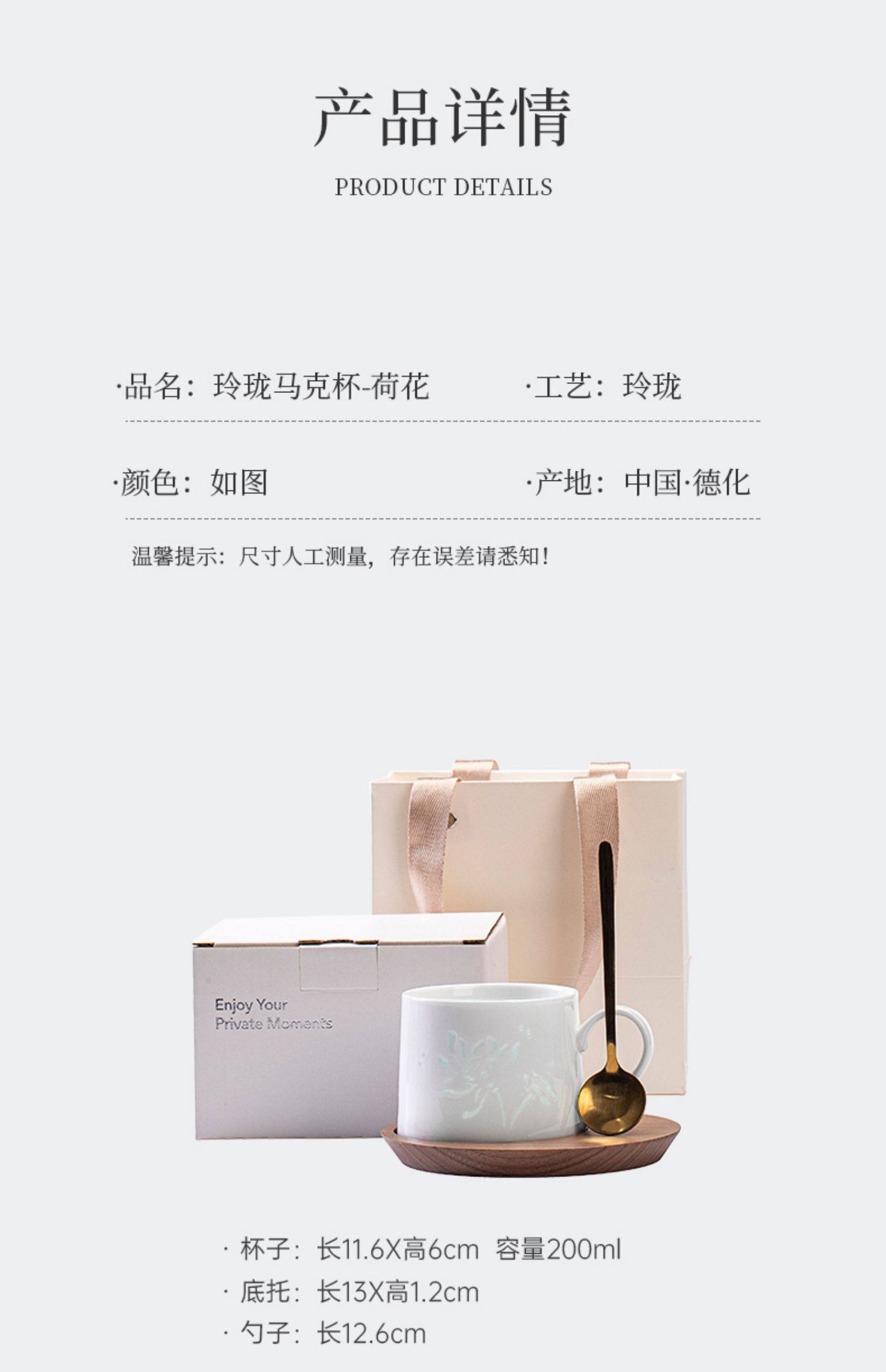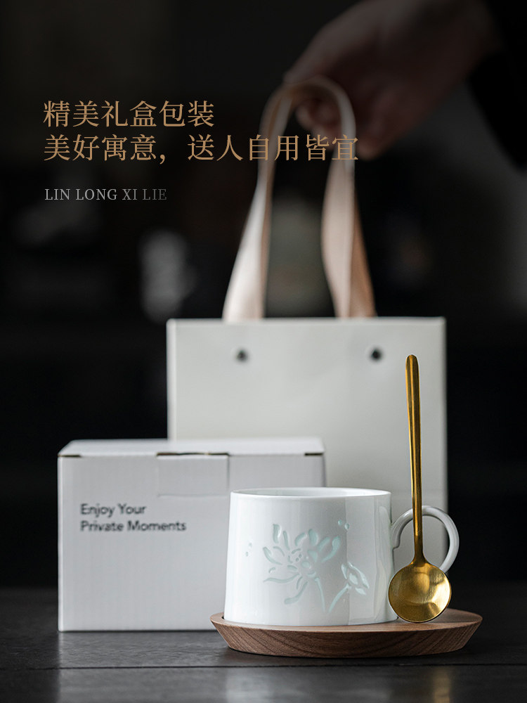 玲珑咖啡杯杯碟套装陶瓷马克杯子高档精致女士个人专用小众高级感