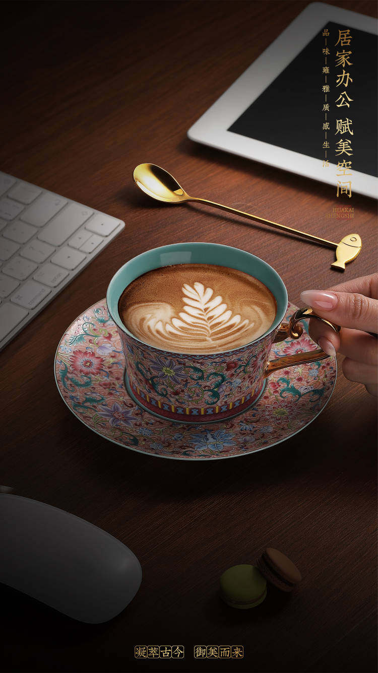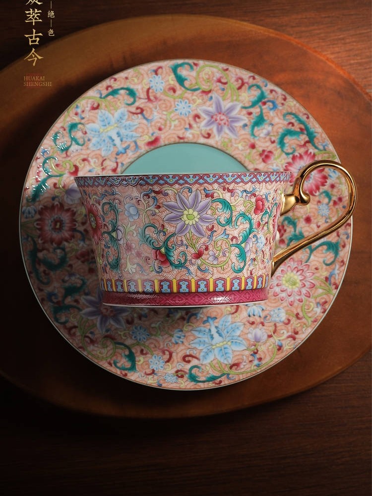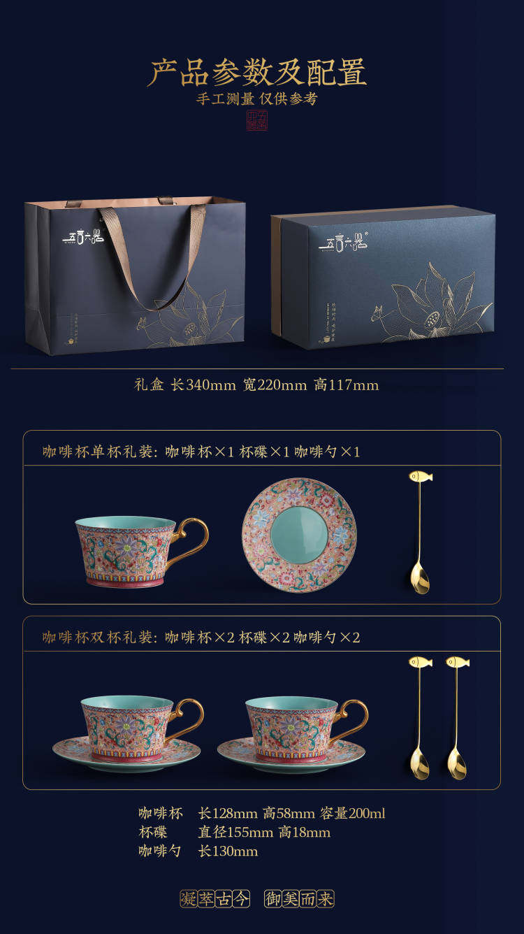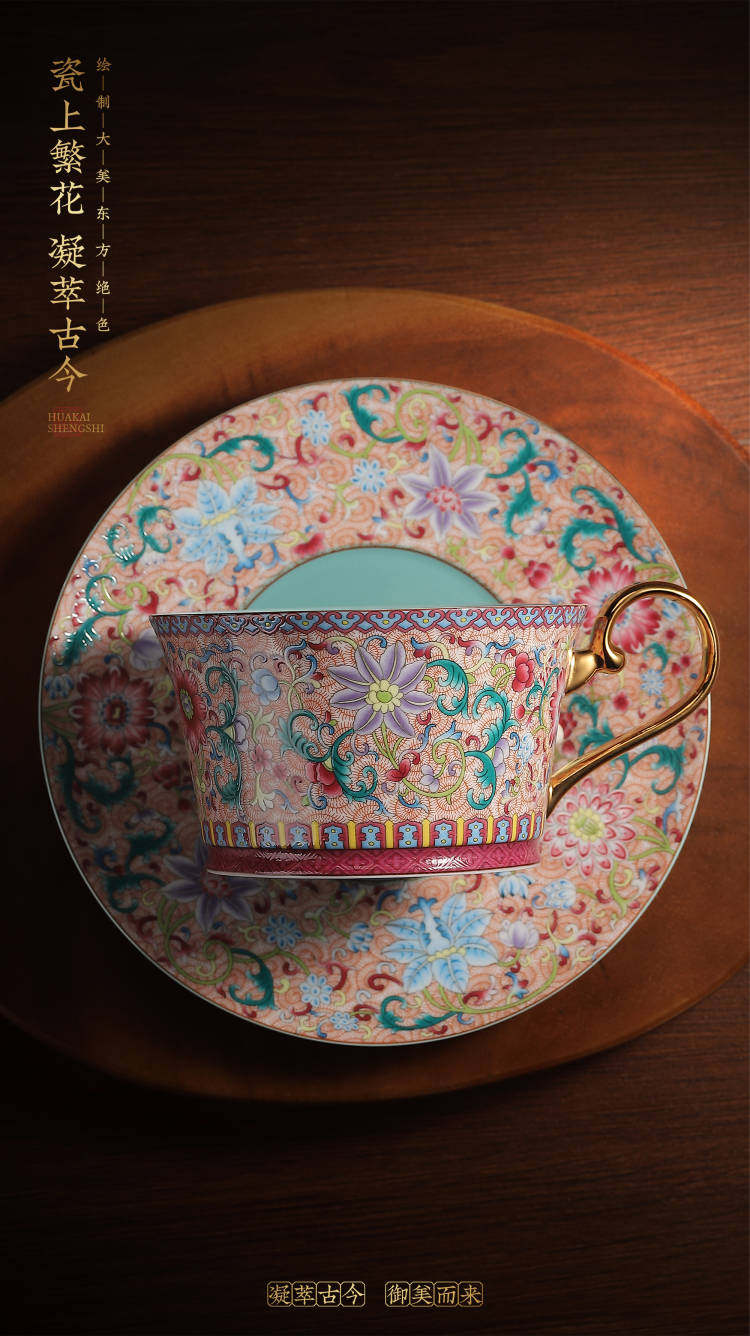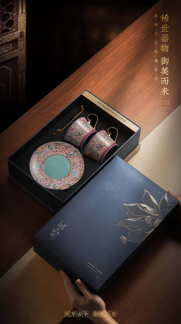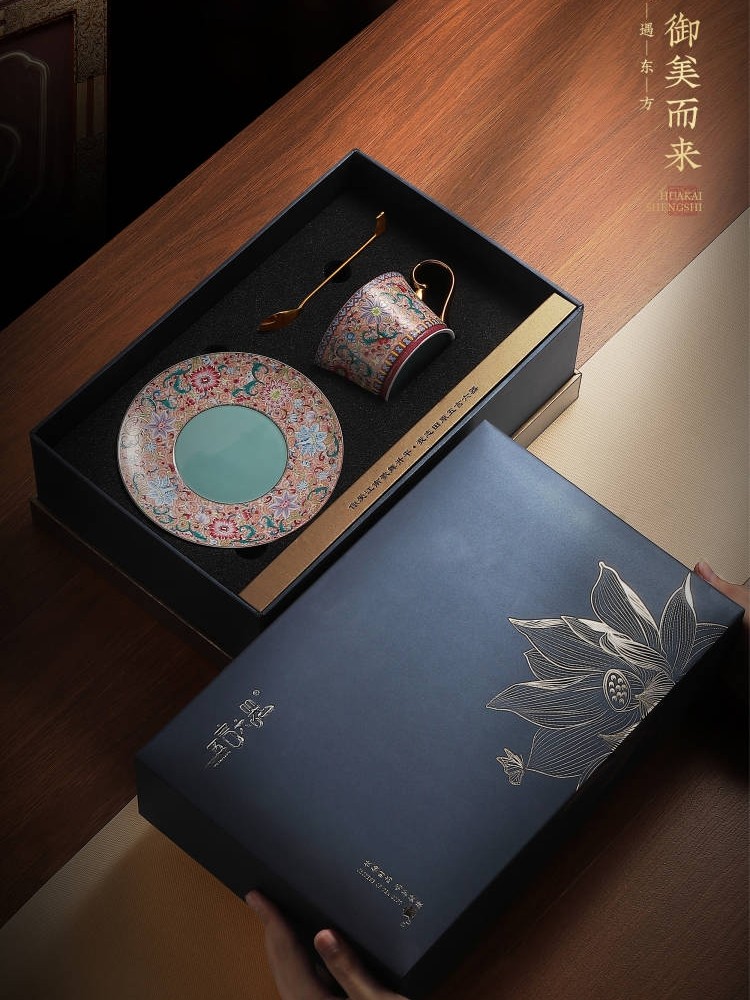 陶瓷景德镇手工珐琅彩咖啡杯套装 送礼 精美礼盒下午茶套装