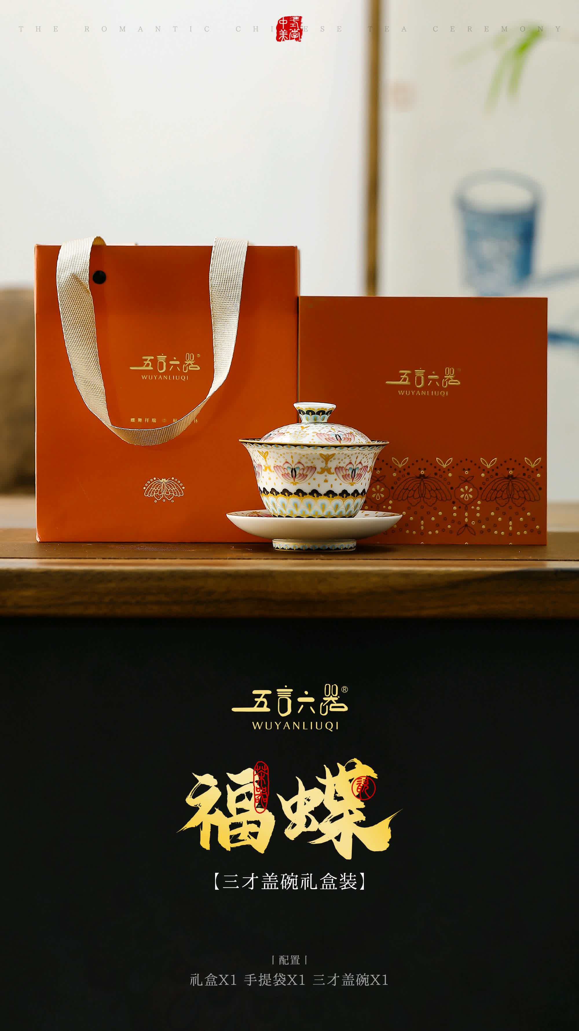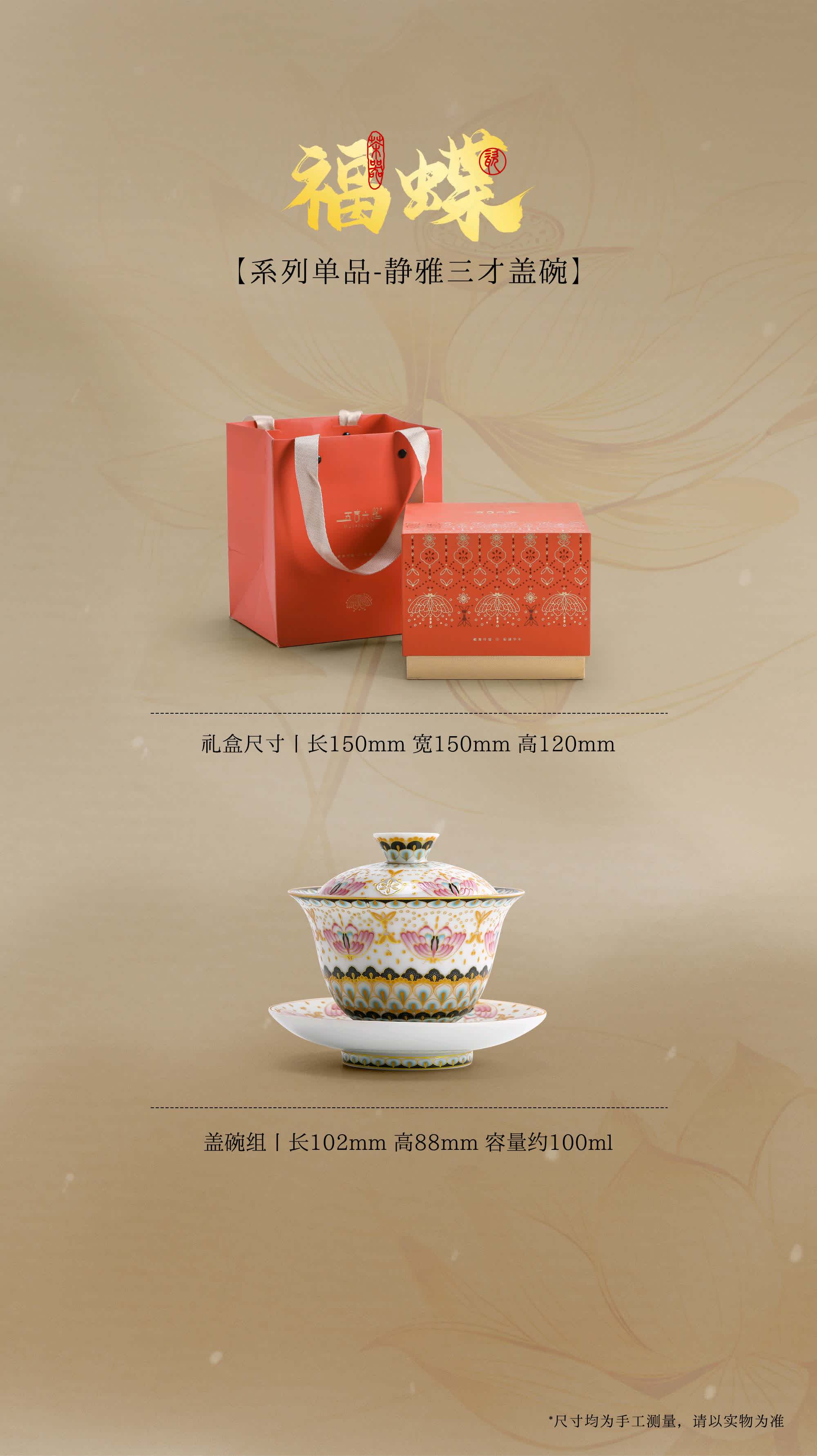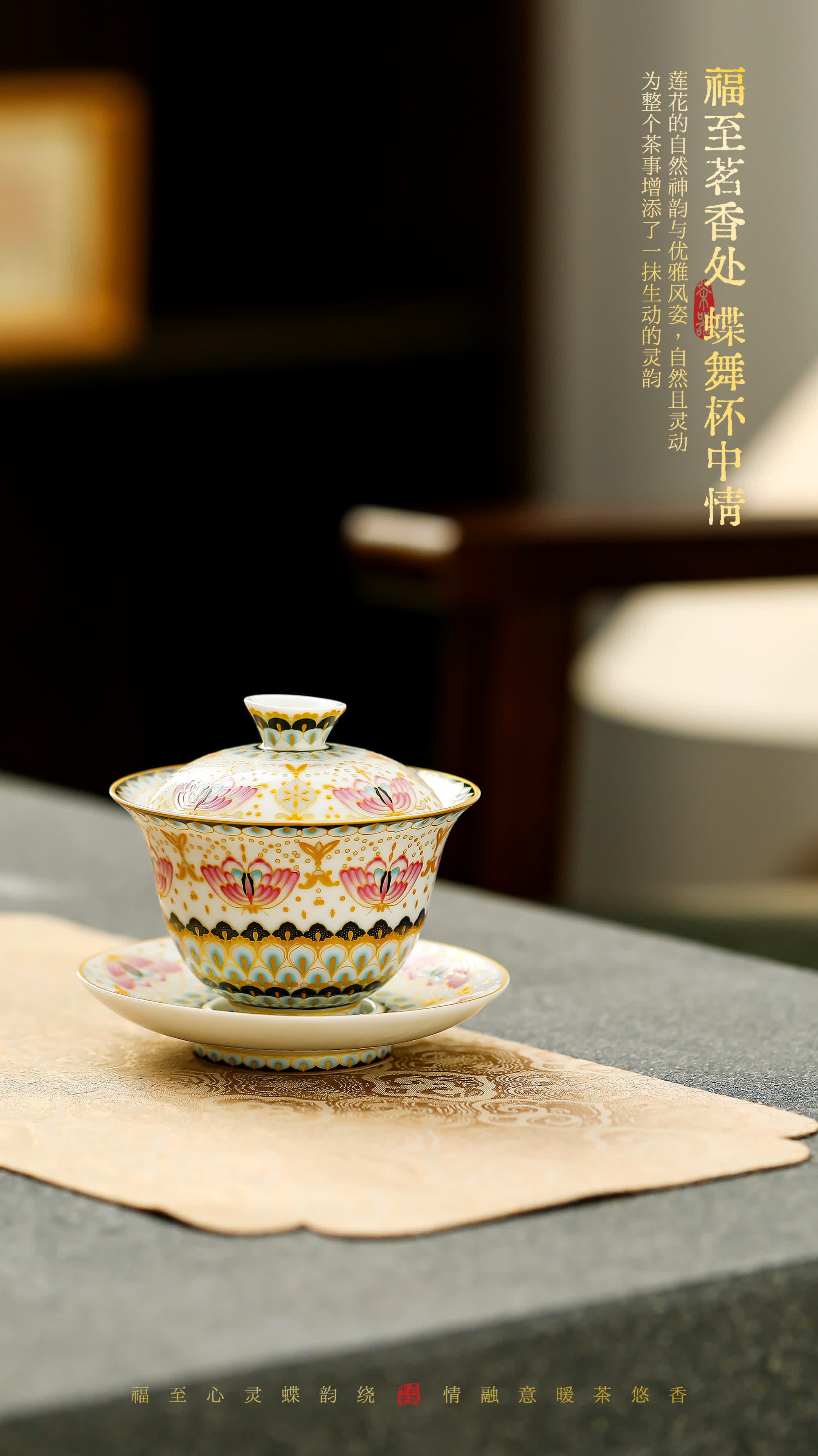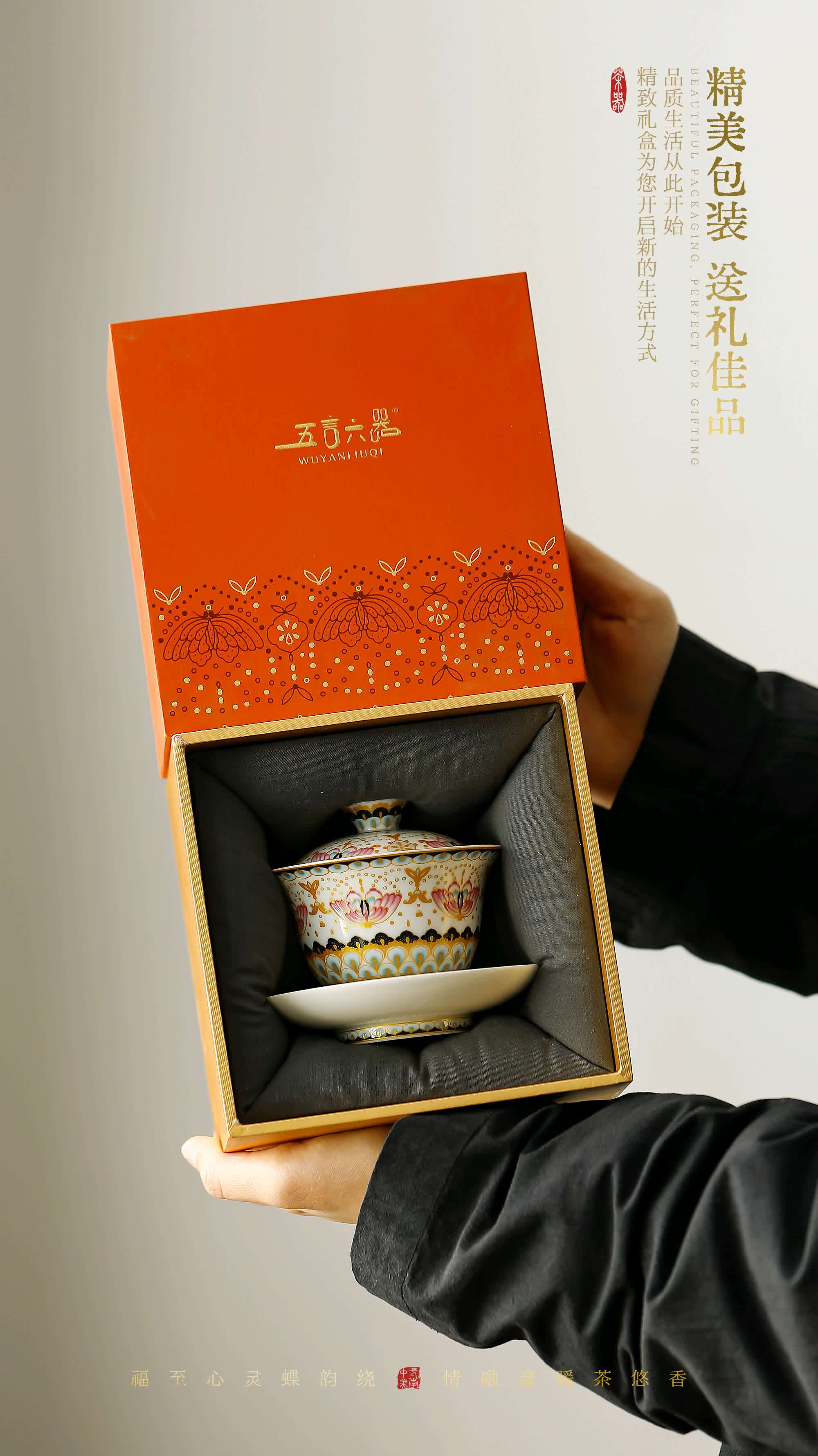 景德镇陶瓷原创系列手工珐琅彩三才盖碗精美礼盒送礼乔迁套装