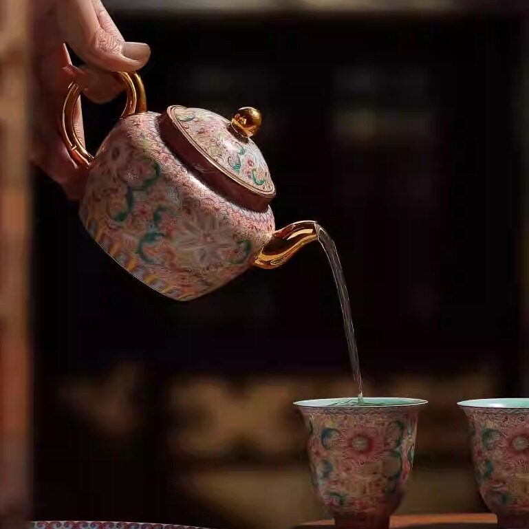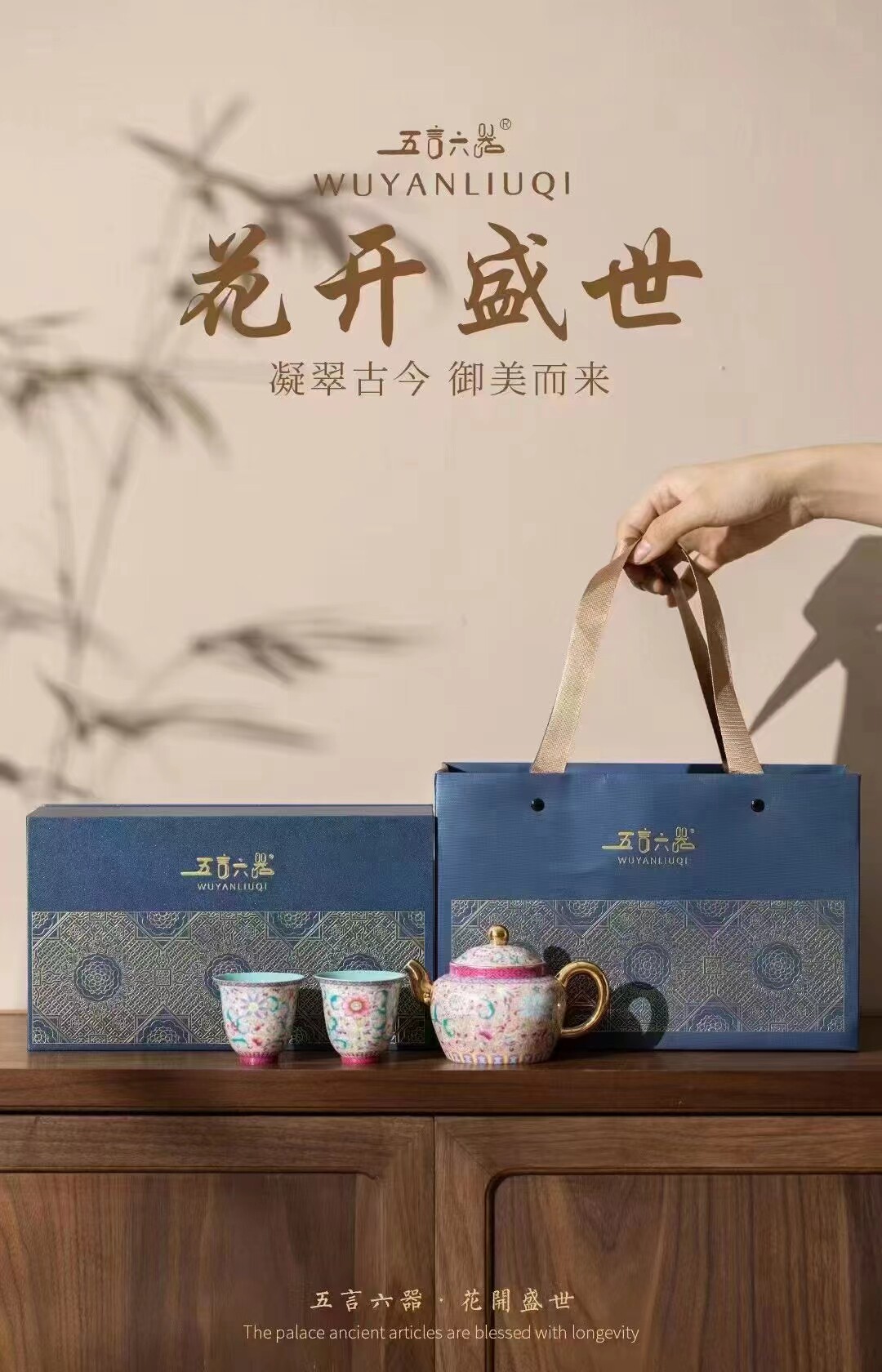 景德镇陶瓷原创彩绘手工花开盛世-一壶二杯 送礼精选 精美礼盒
