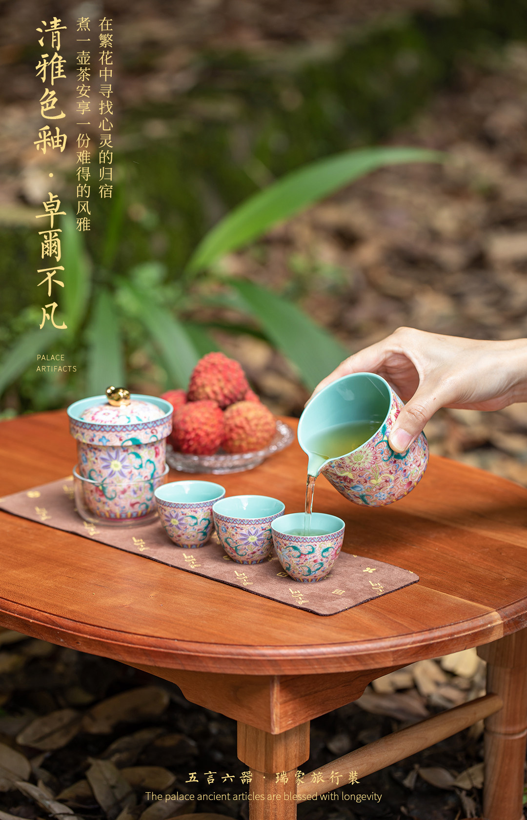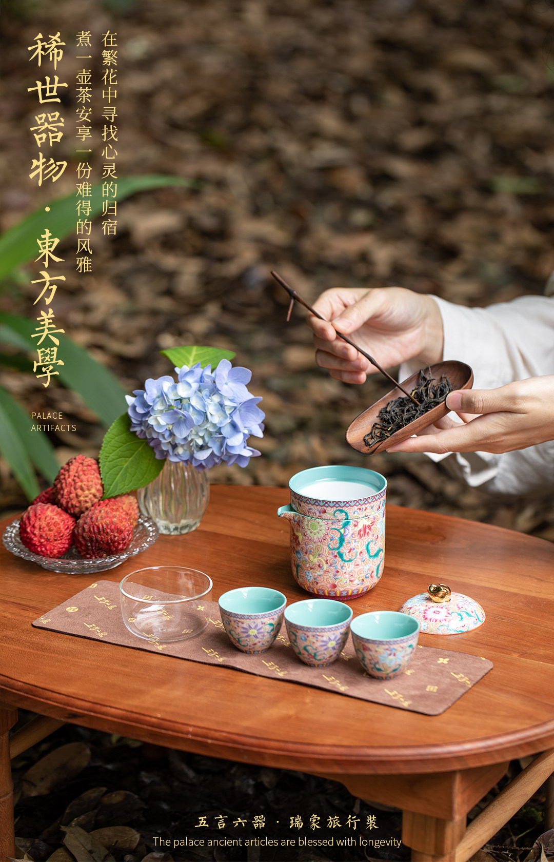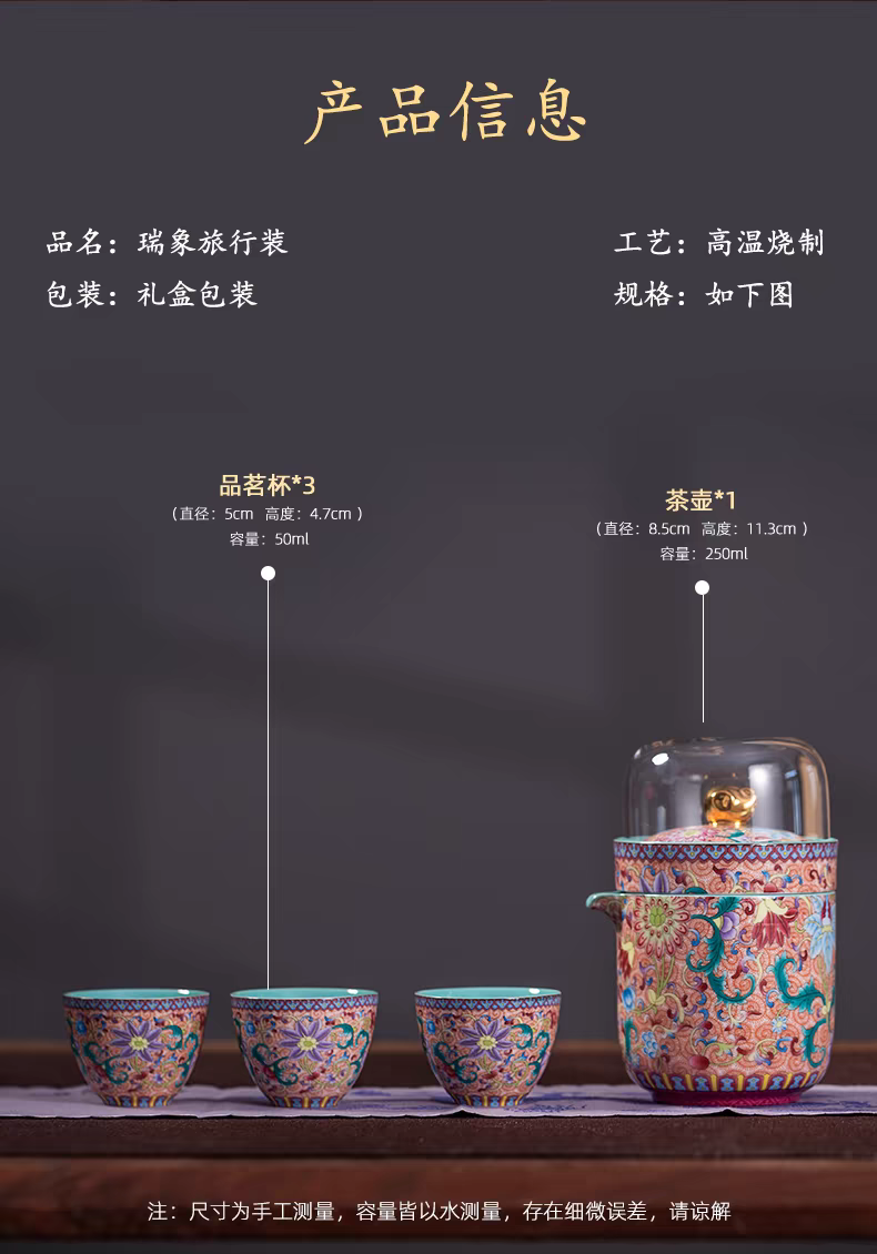 景德镇原创纯手工茶具套装花开盛世-瑞象旅行装 送礼精选精美礼盒