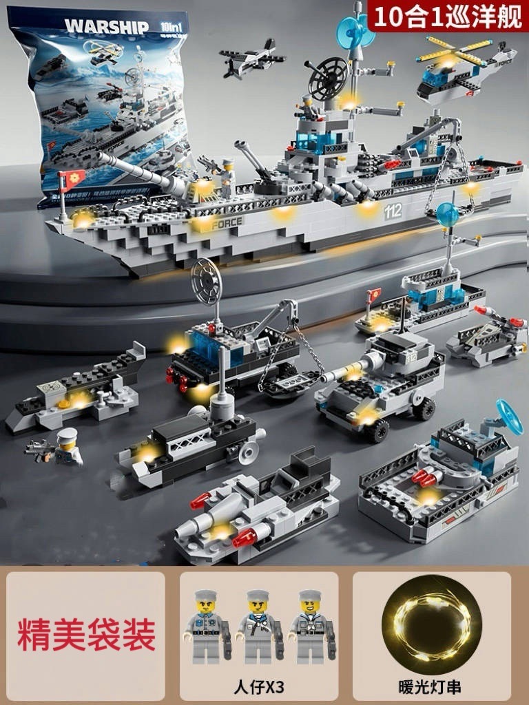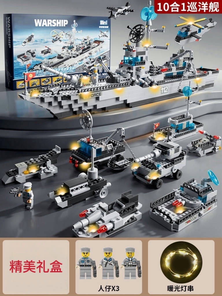 兼容乐高军事航空母舰驱逐舰小颗粒益智拼装儿童玩具积木礼盒批发