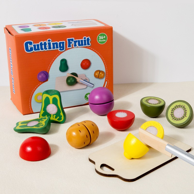 CPC 跨境木制儿童过家家仿真水果蔬菜切切乐早教益智玩具玩具