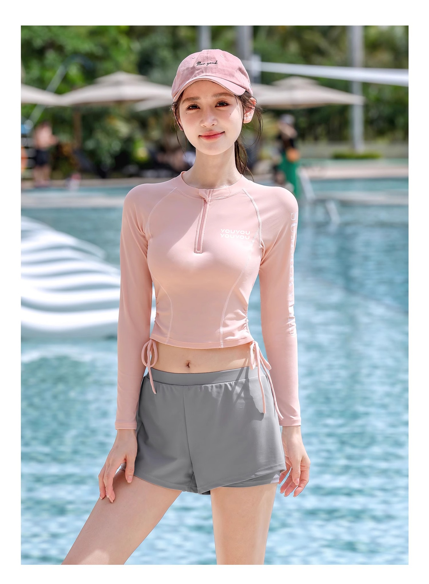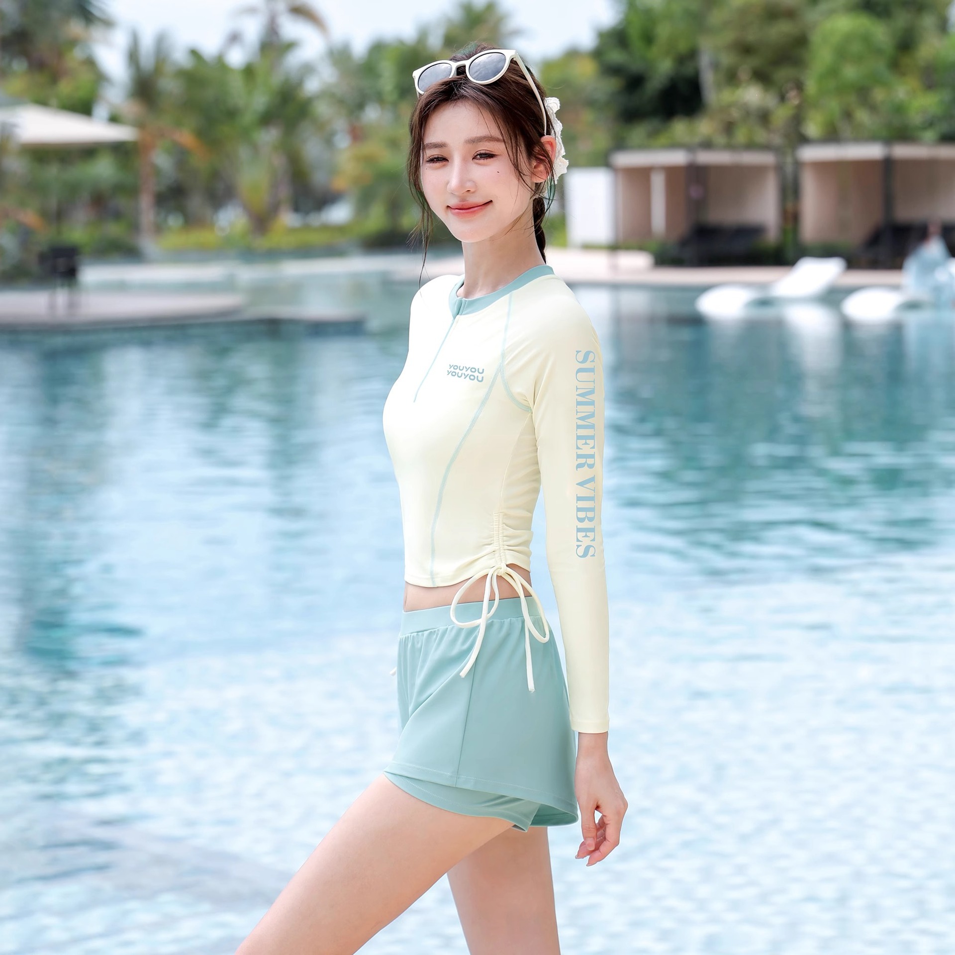 分体泳衣女2025新款爆款遮肚显瘦游泳馆专用高级感长袖防晒游泳装