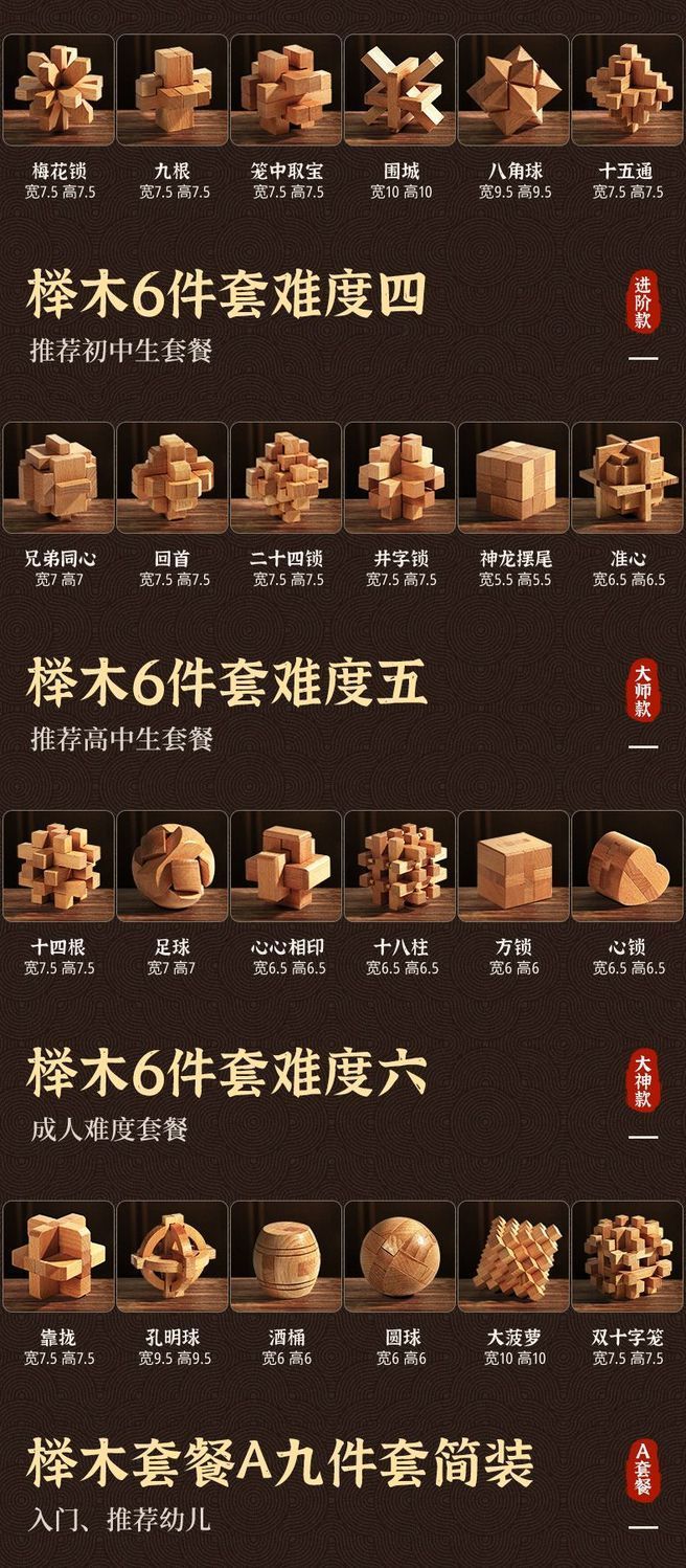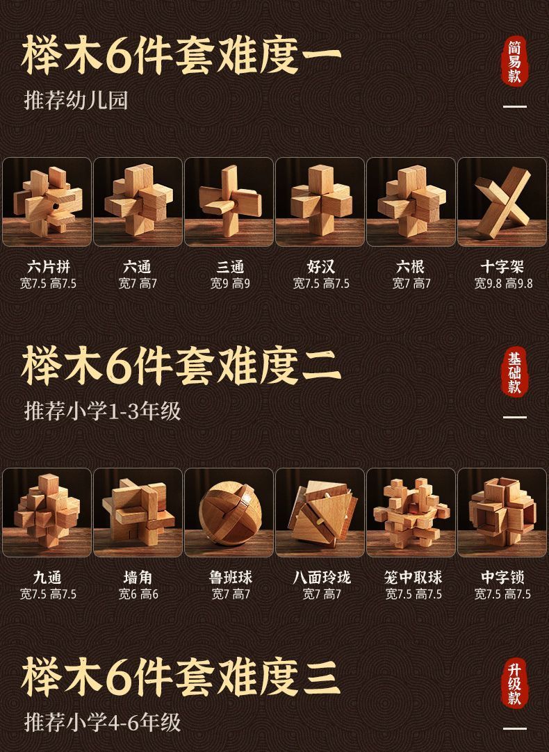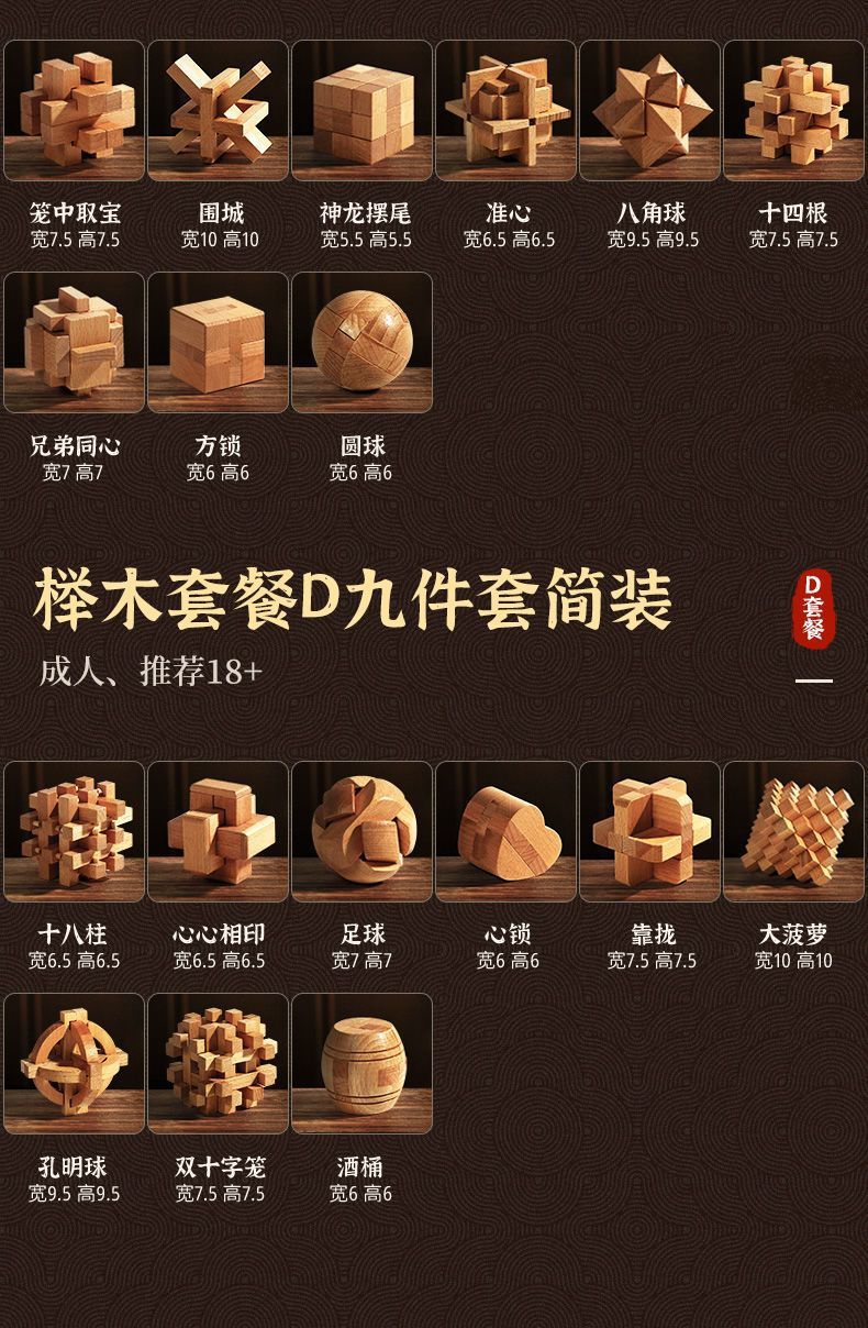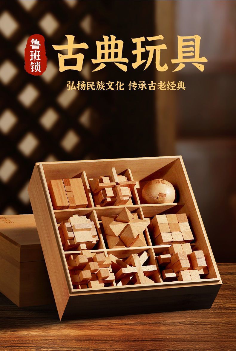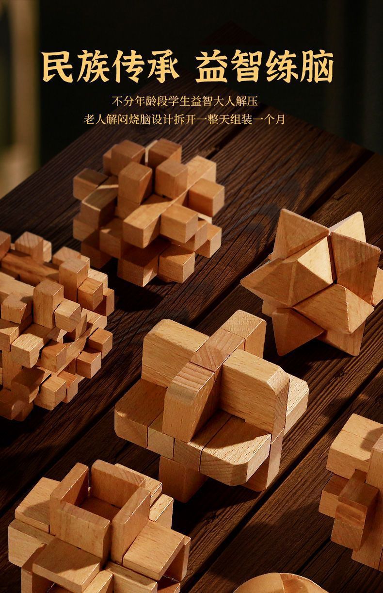 中国中式孔明锁鲁班锁全套开发智力解环套装儿童益智玩具生日礼物
