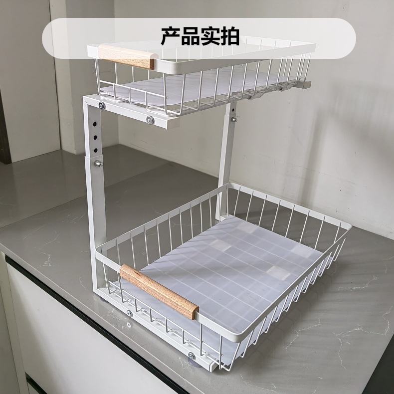 厨房水槽下置物架落地可调节橱柜下水槽拉篮家用台面调味用品收纳