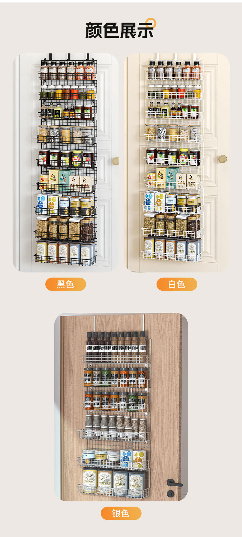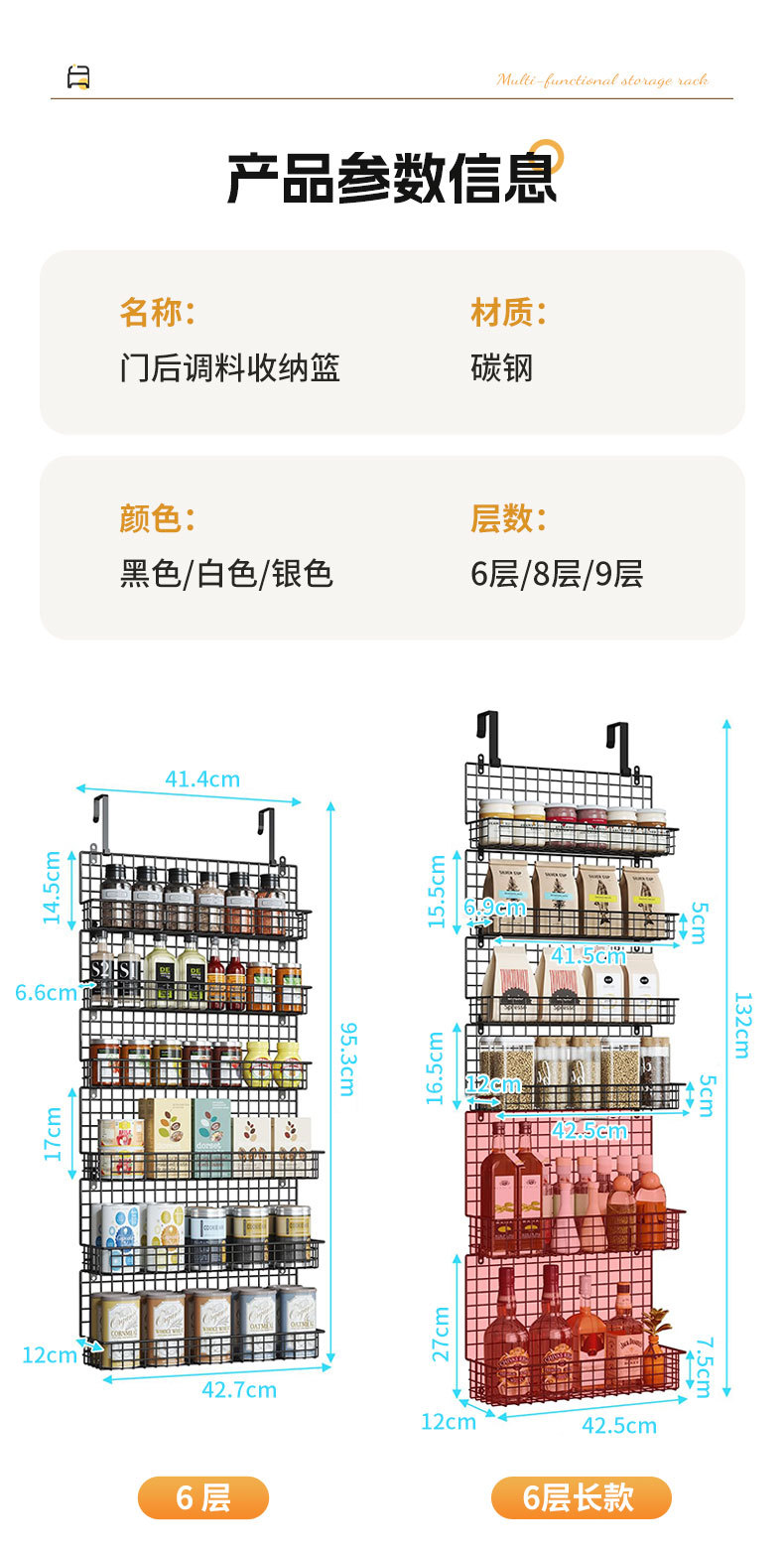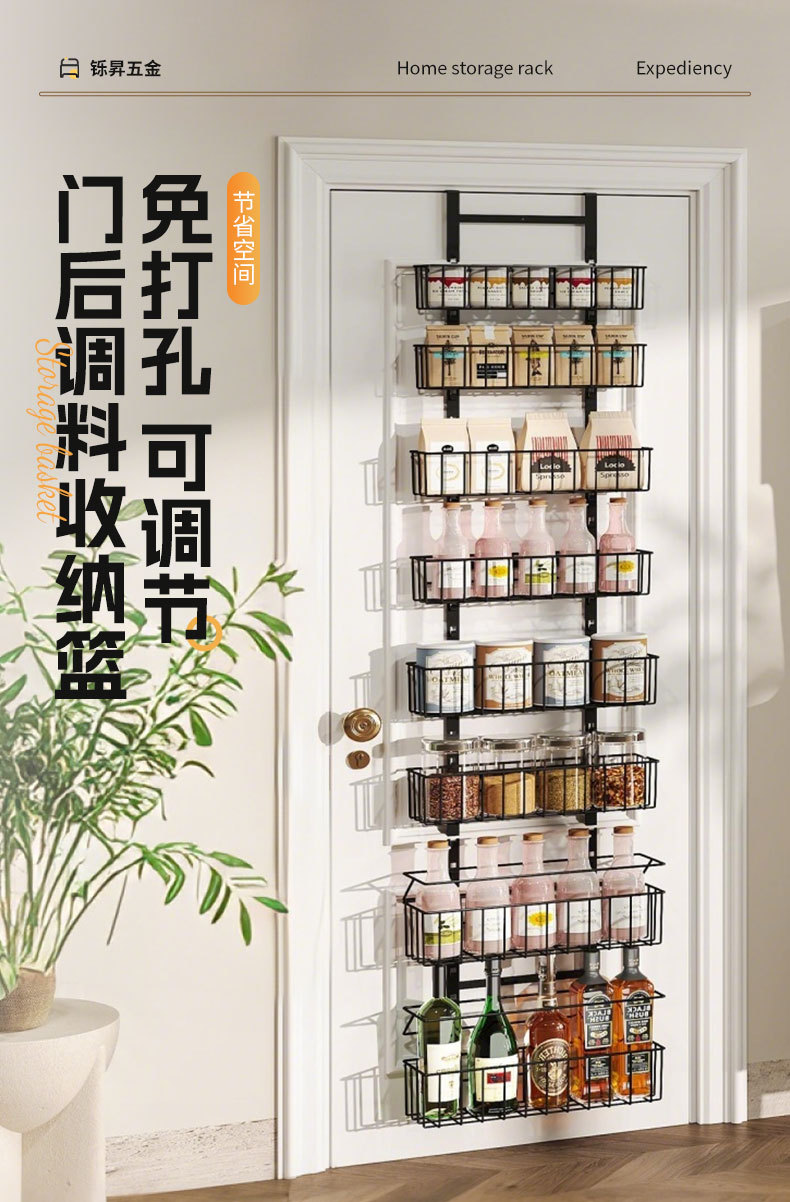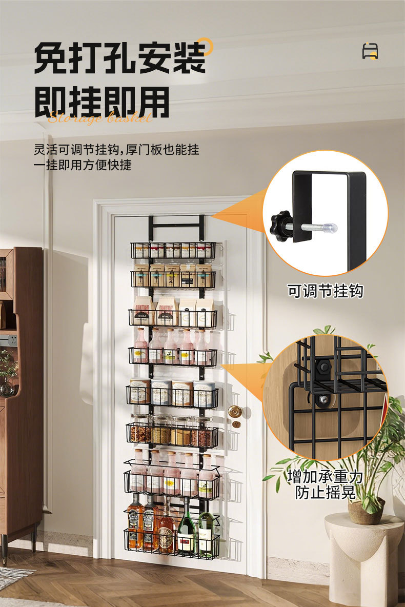 亚马逊厨房门后置物架壁挂卫生间多层储物架免打孔调料收纳挂篮